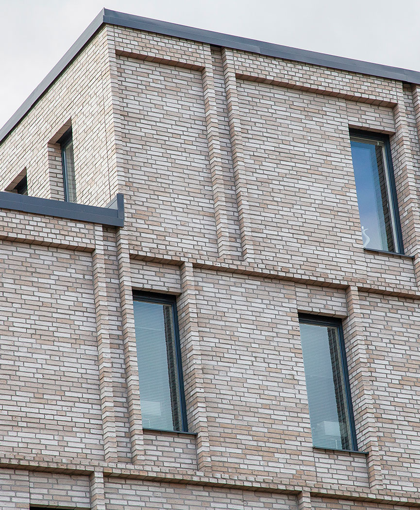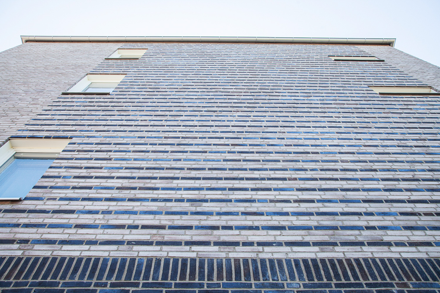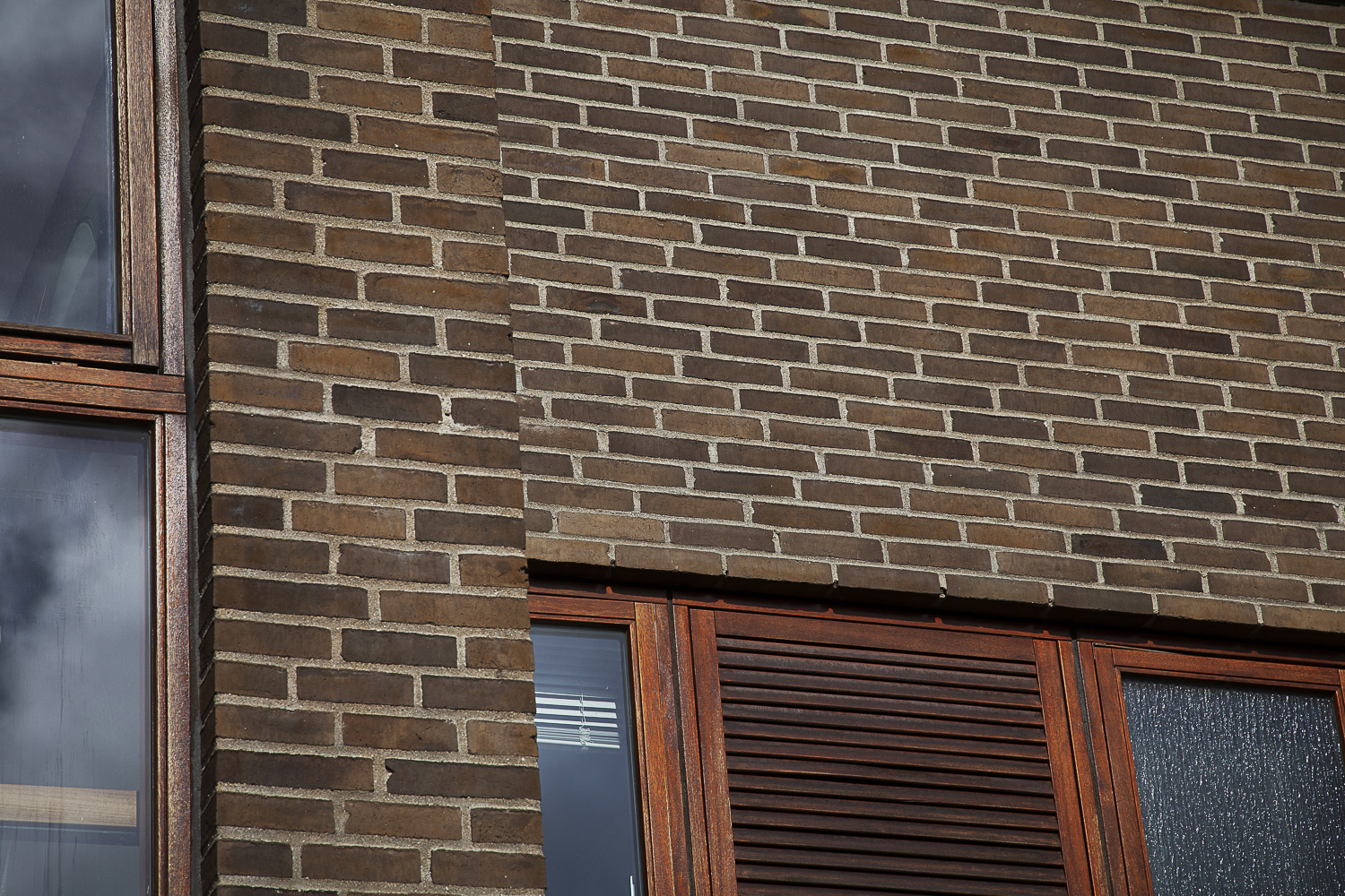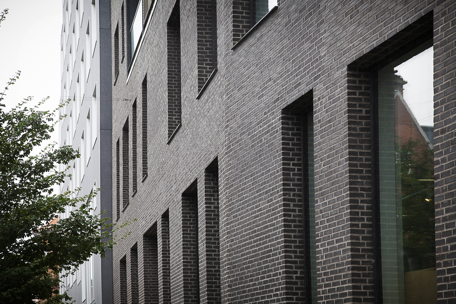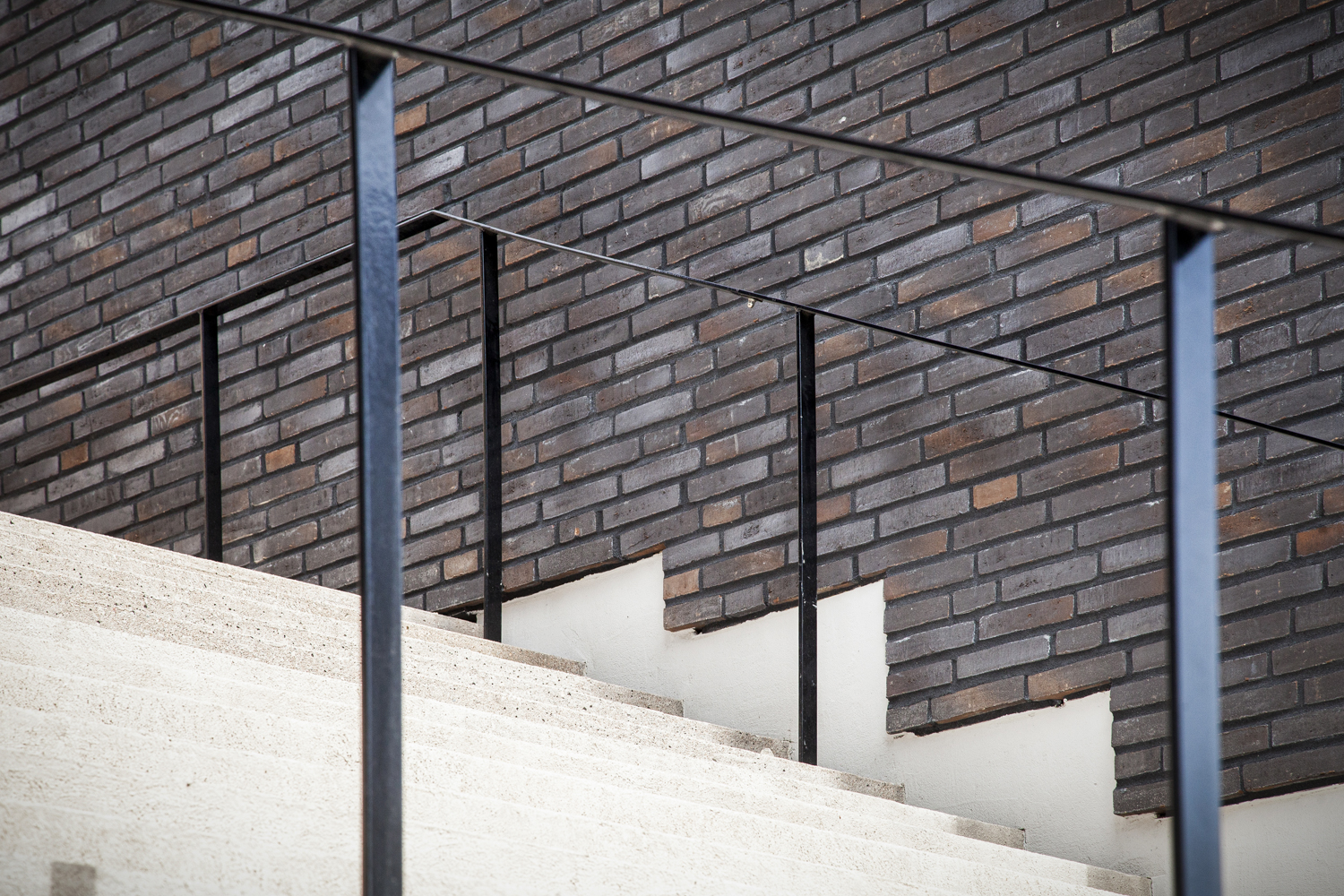 A modern campus building for the students where the special technique to apply the dark grey mortar gives an exciting expression. The glass roof accentuates the modernity.