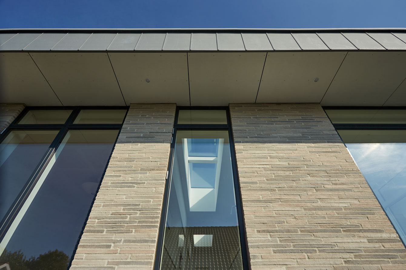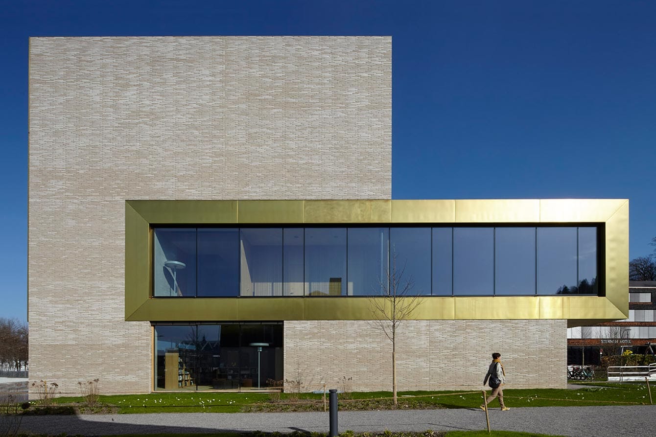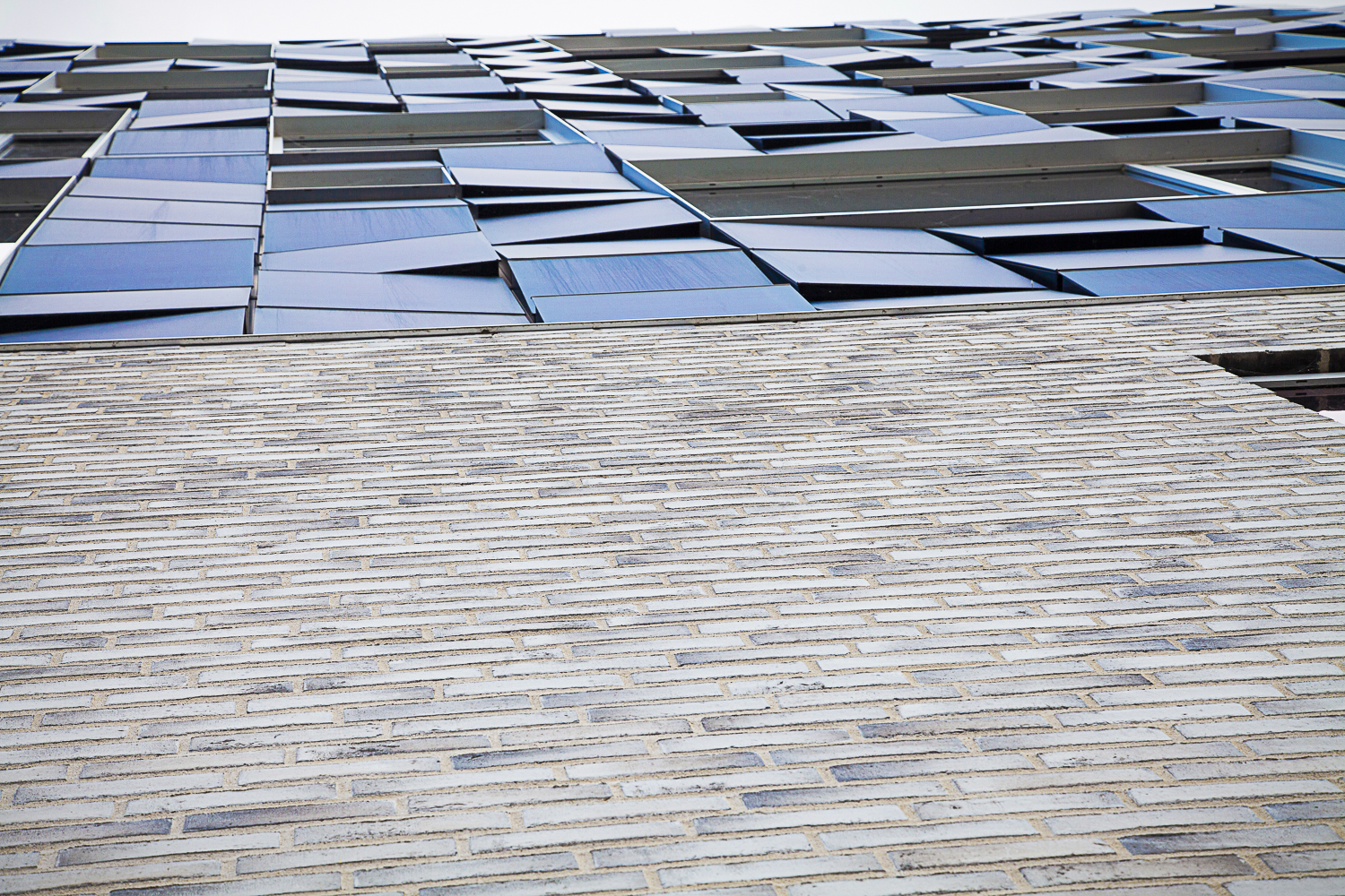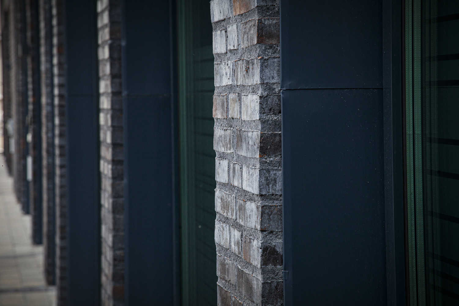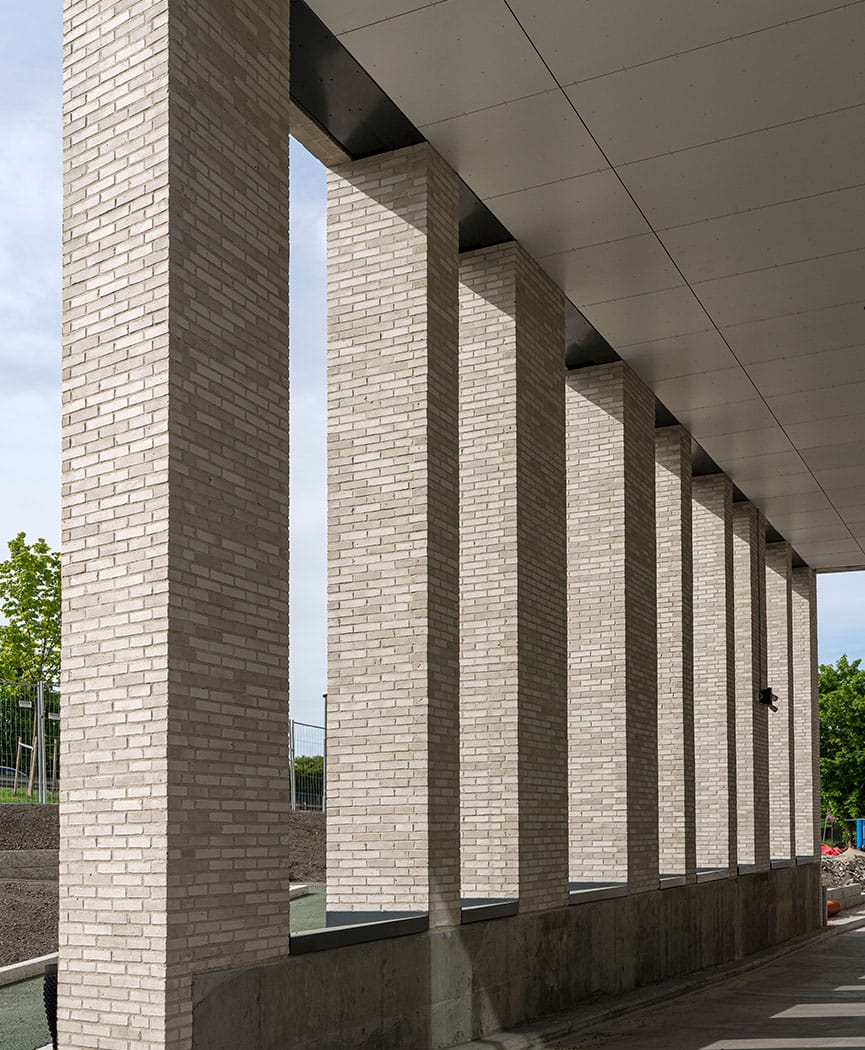 A modern campus building for the students where the special technique to apply the dark grey mortar gives an exciting expression. The glass roof accentuates the modernity.
