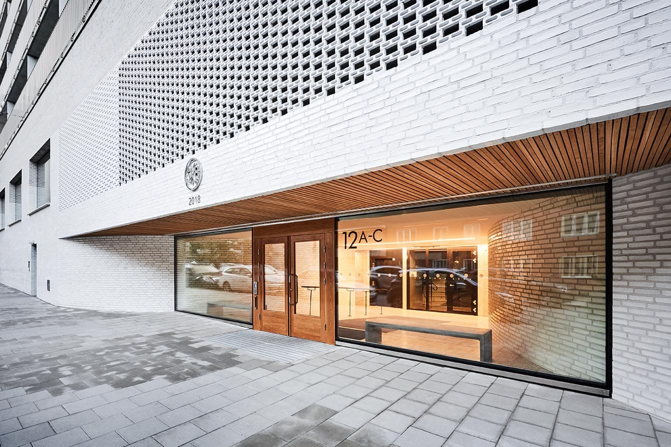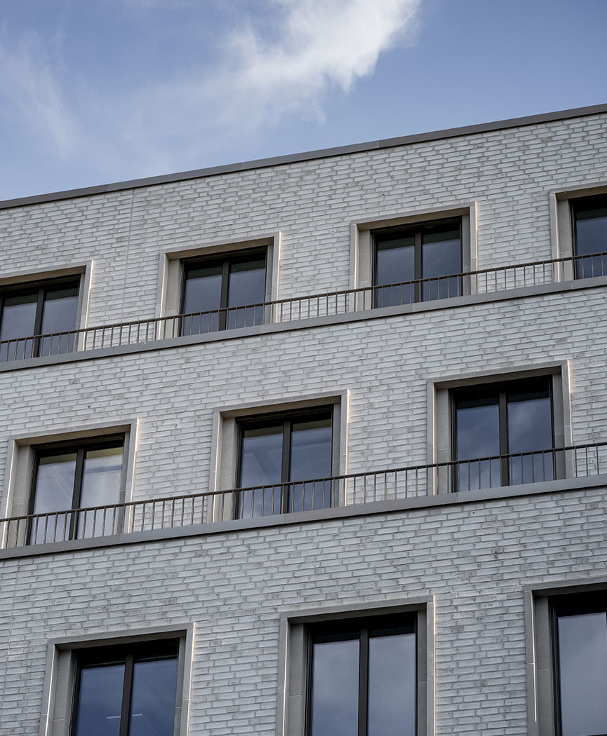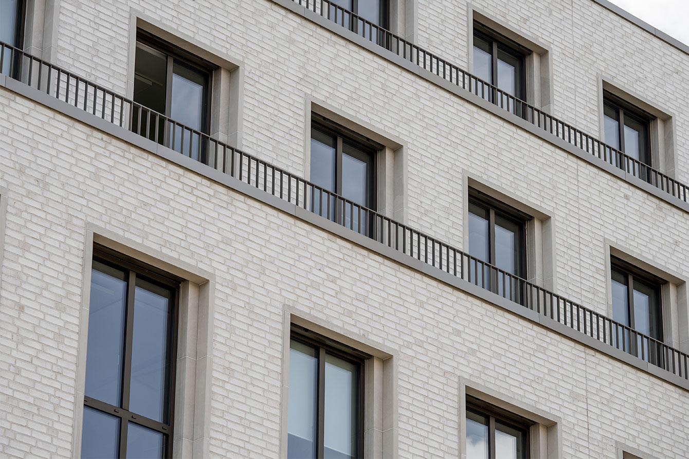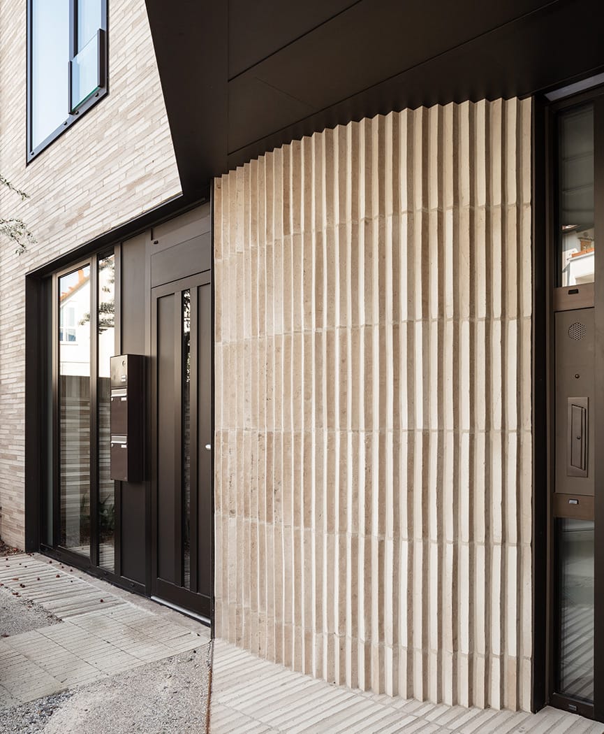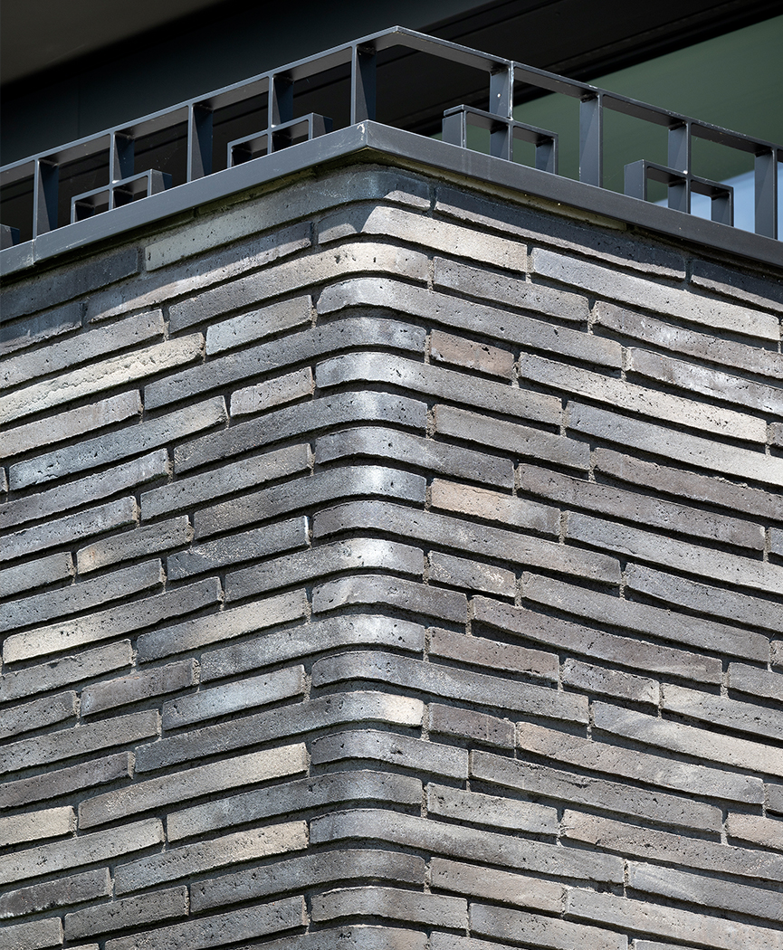 Residents and visitors of the building are welcomed by a stoic masonry with a generous canopy. The ground floor is clad in RT 153 – a detail that provides a robust and beautiful base for the prestigious and detailed building.