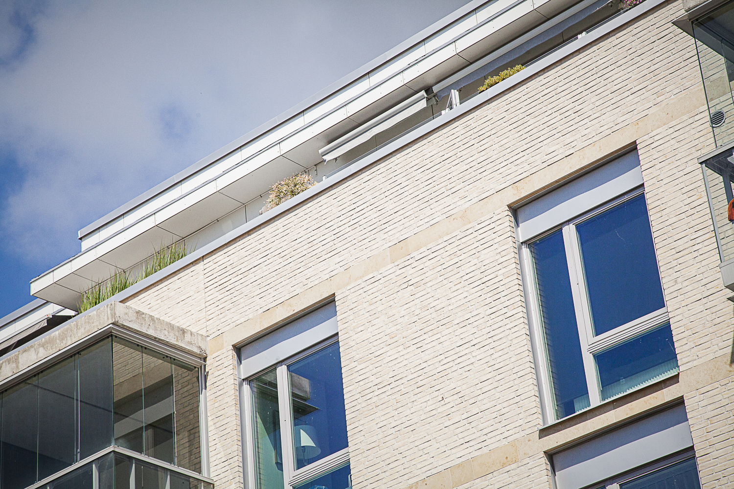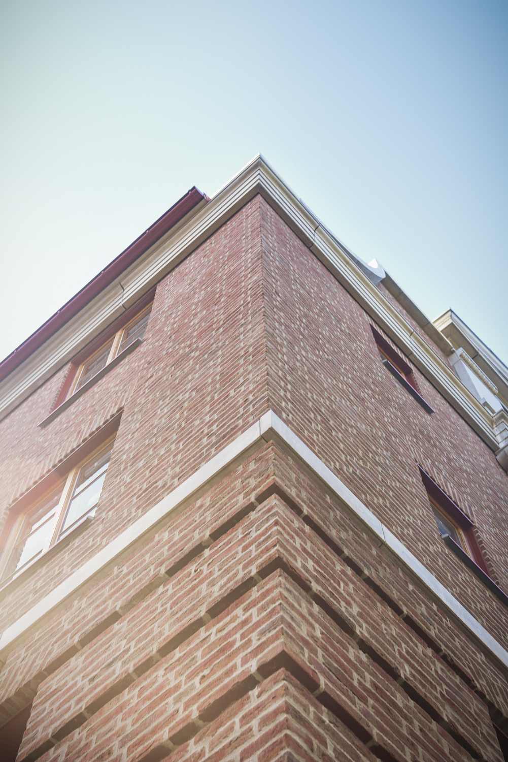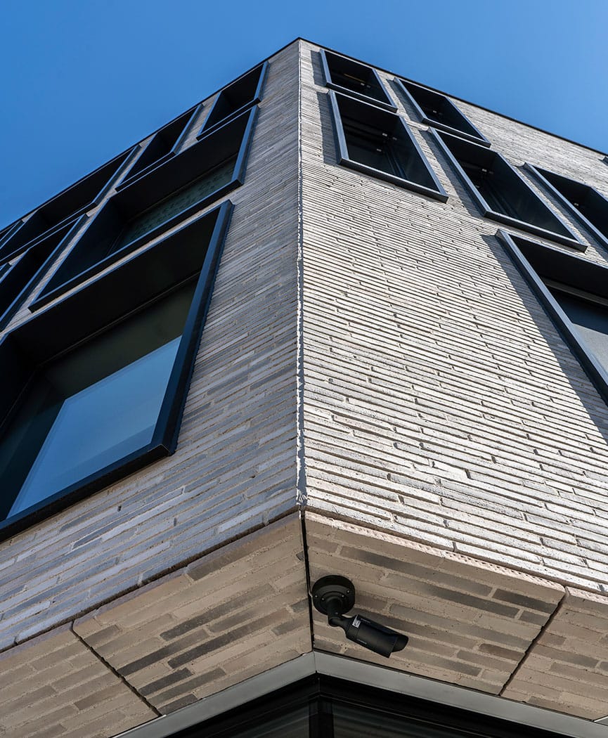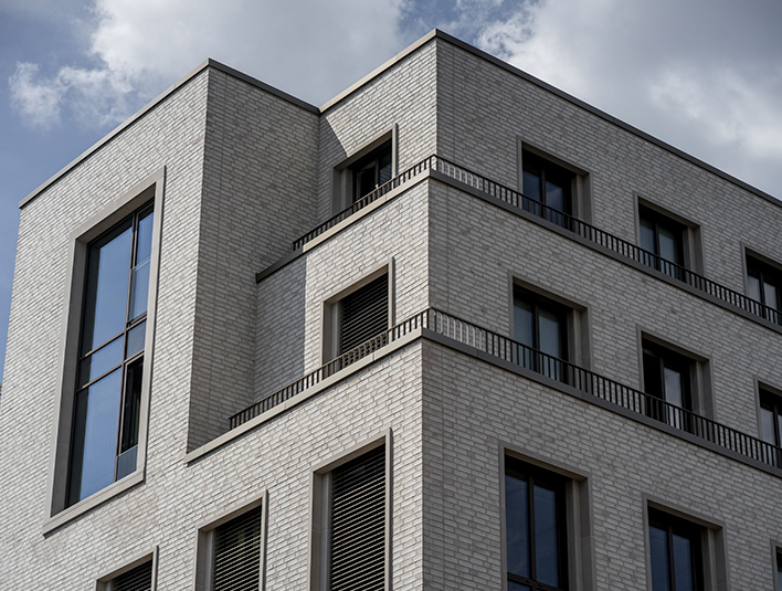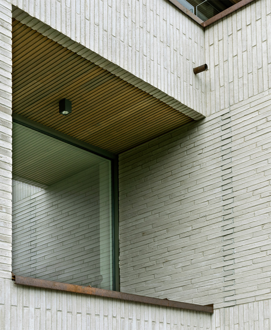 Residents and visitors of the building are welcomed by a stoic masonry with a generous canopy. The ground floor is clad in RT 153 – a detail that provides a robust and beautiful base for the prestigious and detailed building.