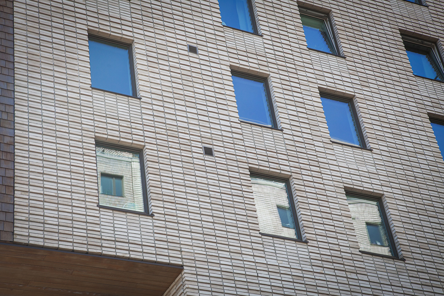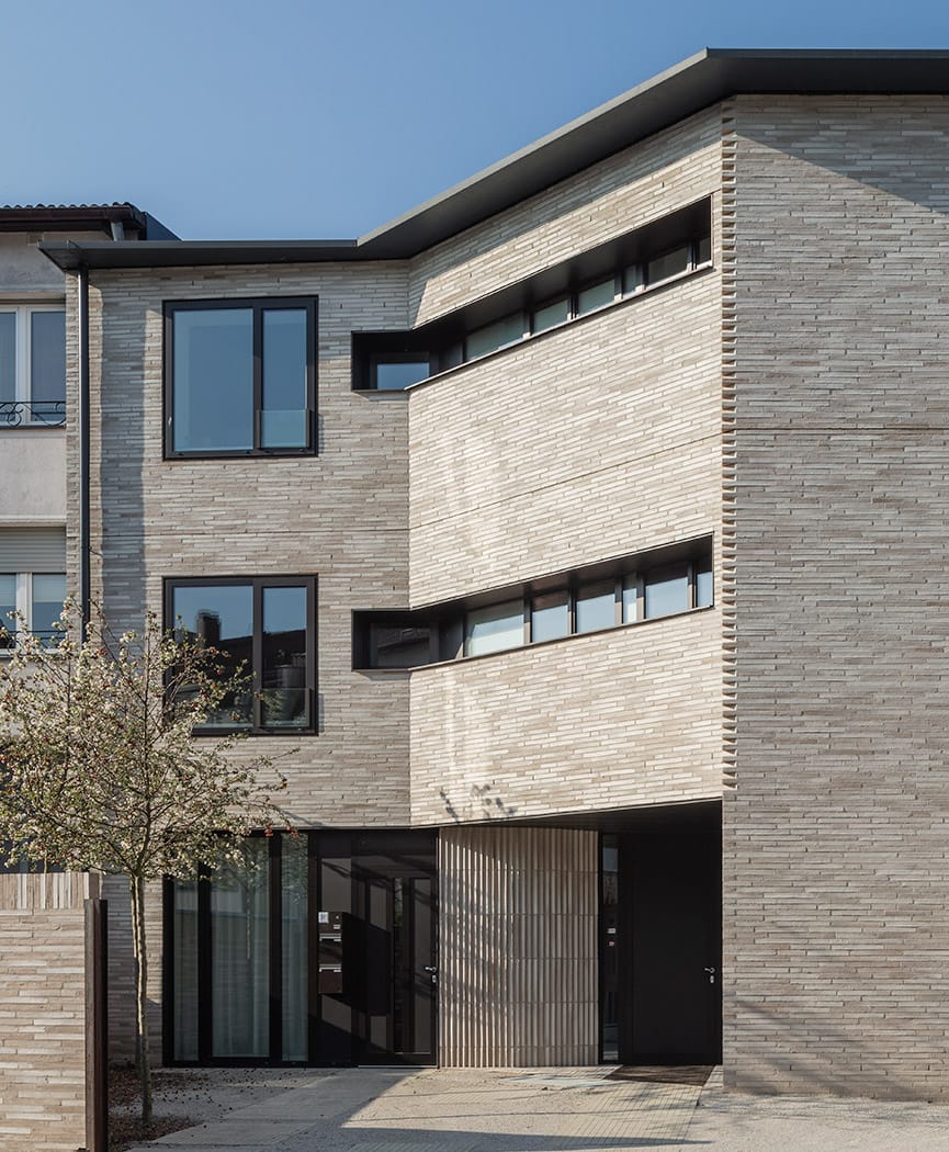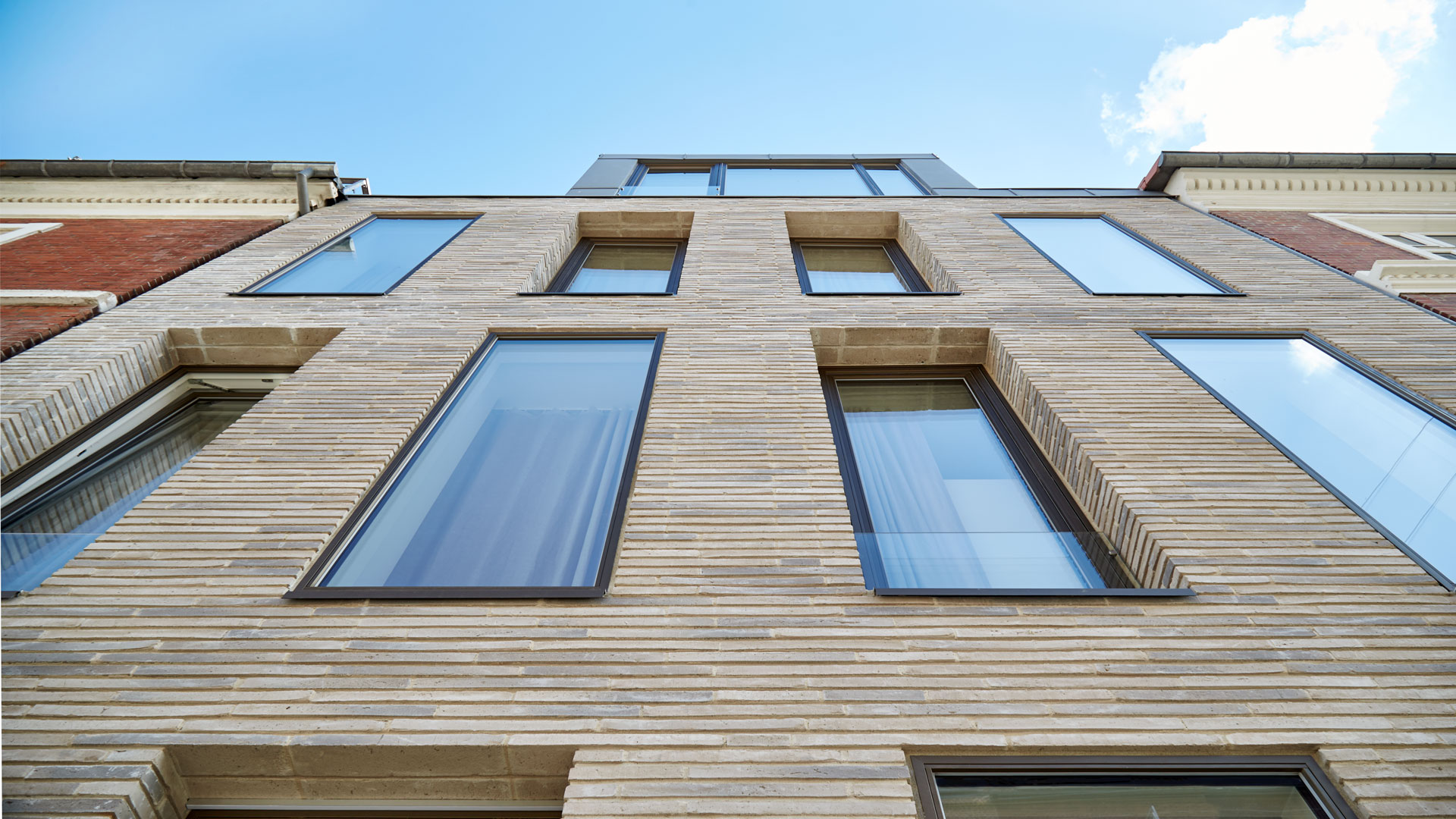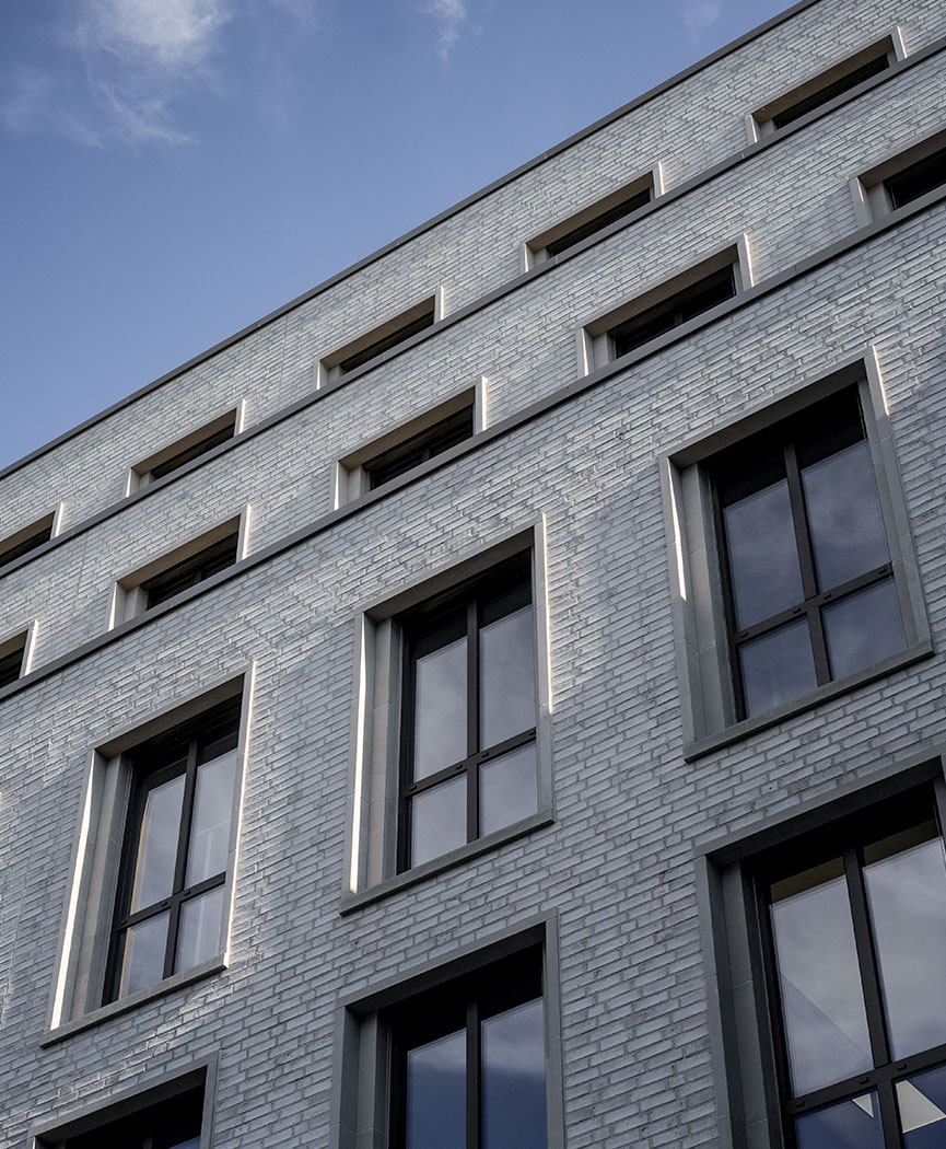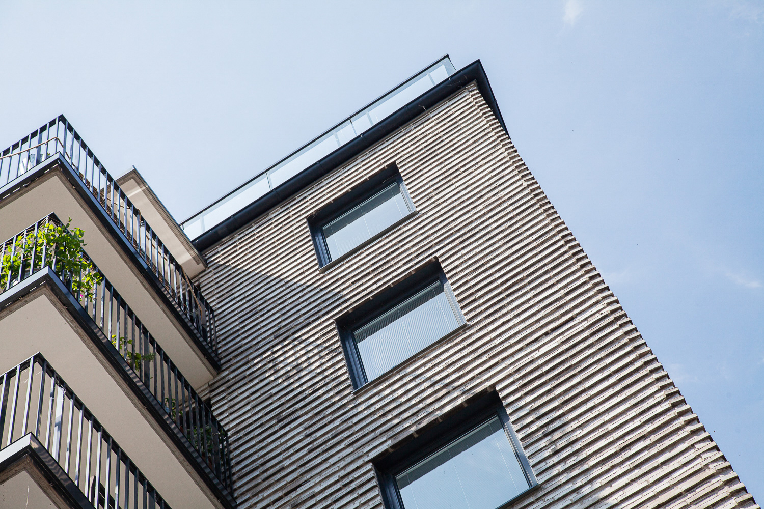 Residents and visitors of the building are welcomed by a stoic masonry with a generous canopy. The ground floor is clad in RT 153 – a detail that provides a robust and beautiful base for the prestigious and detailed building.