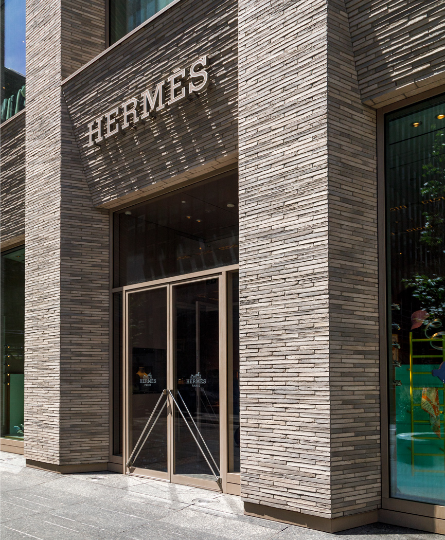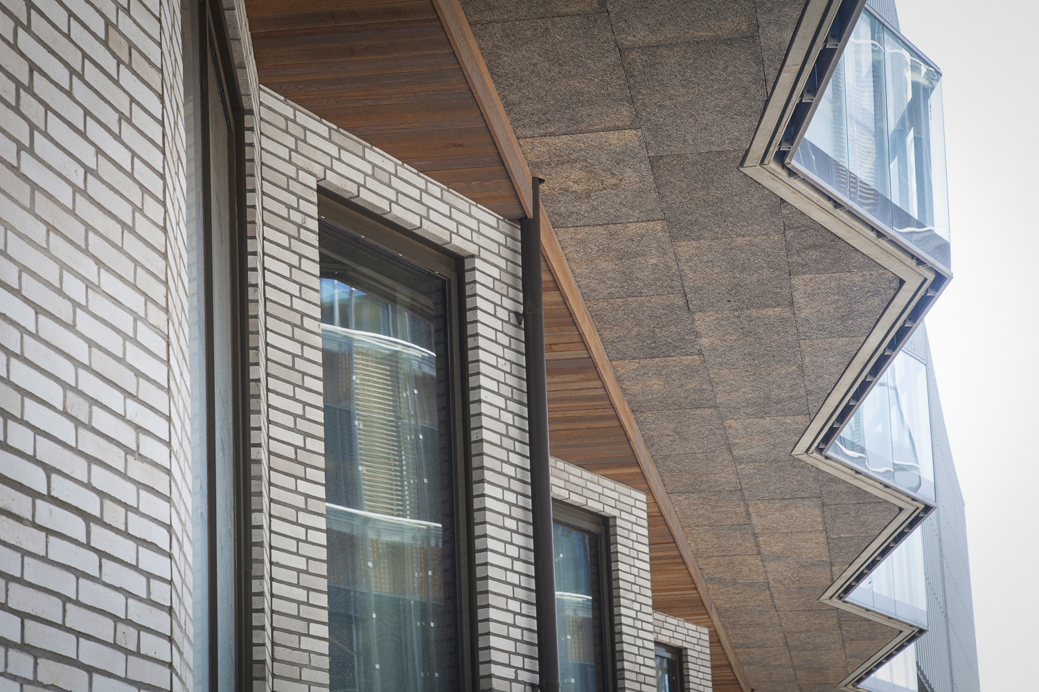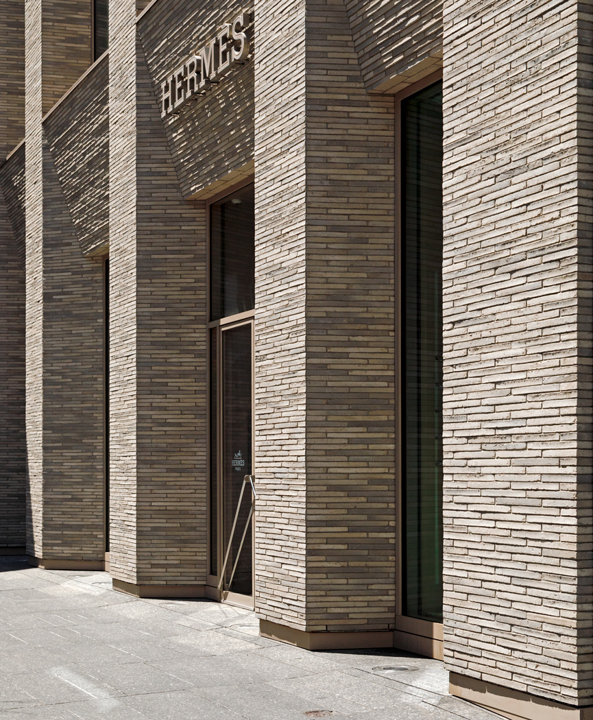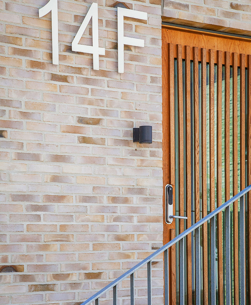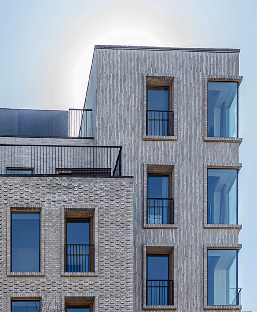 Residents and visitors of the building are welcomed by a stoic masonry with a generous canopy. The ground floor is clad in RT 153 – a detail that provides a robust and beautiful base for the prestigious and detailed building.