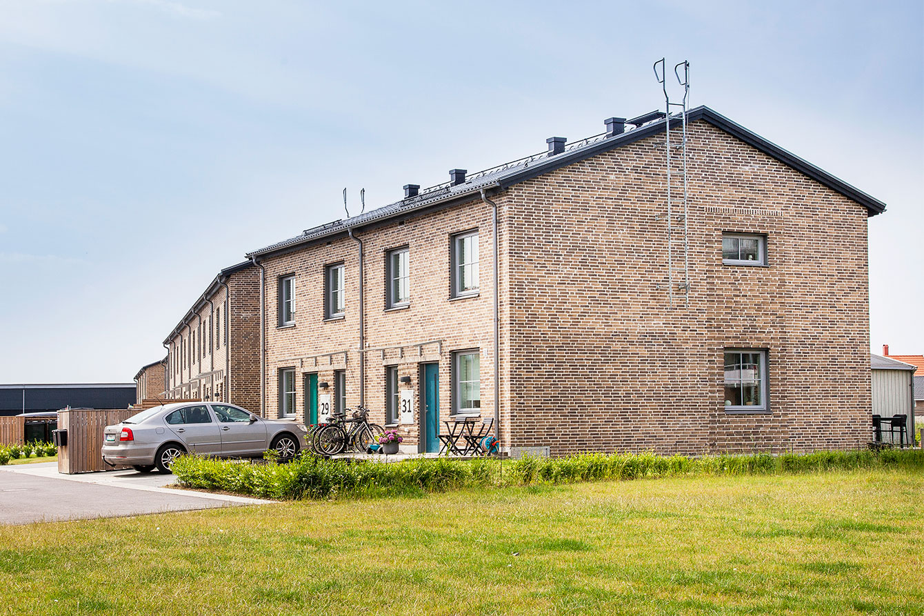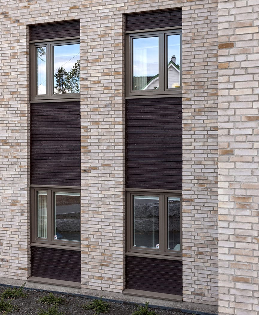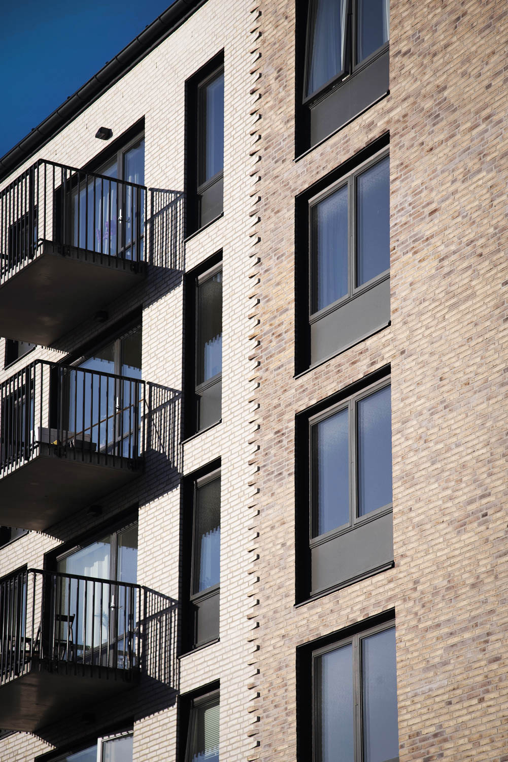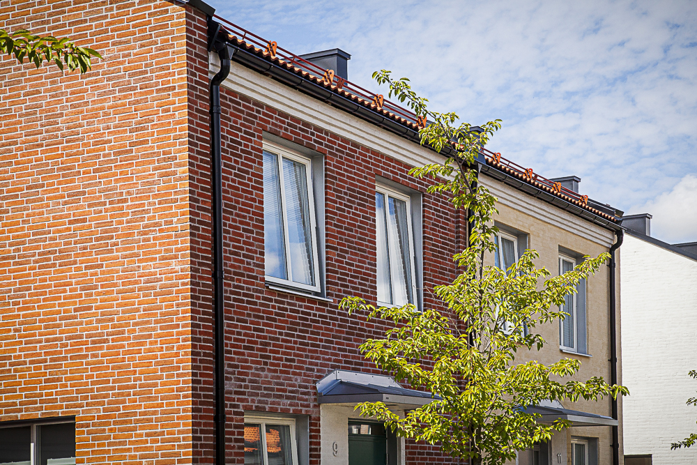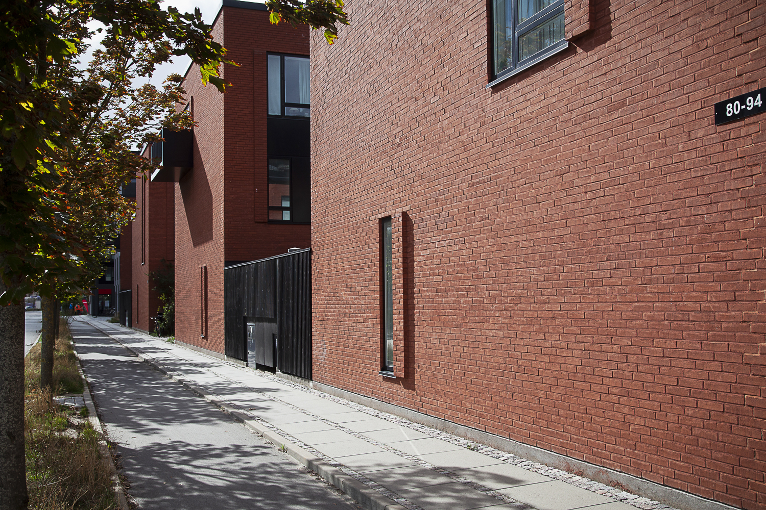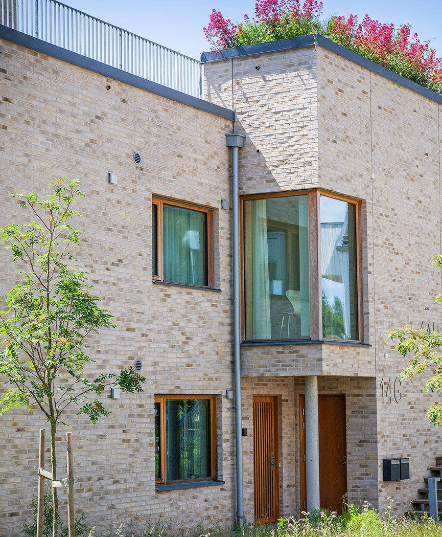 Choosing brick as a facade material has many advantages. We think that a brick facade gives a feeling that the houses are solid and lavish and that in turn gives a social sustainability. You want to both live in and preserve a solid building for future generations. In our Scandinavian climate, with its colour scale, which during large parts of the year goes in grey, brick is also a good choice of facade material as it with its colour scales blends well into the landscape and counteracts the "grey ash". This is very difficult to create with other facade materials such as concrete or sheet metal. Brick also becomes more beautiful over the years with its patina and lively expression, which it can take a hundred years to achieve.