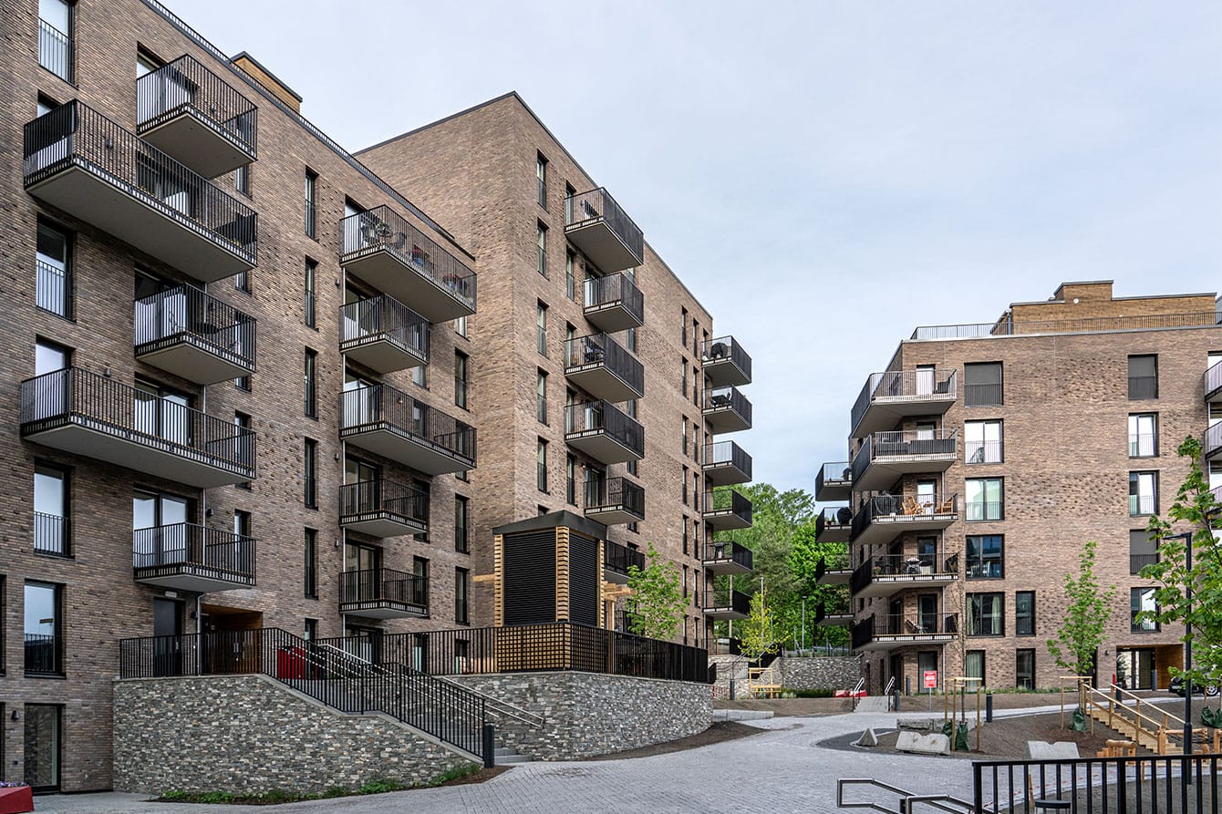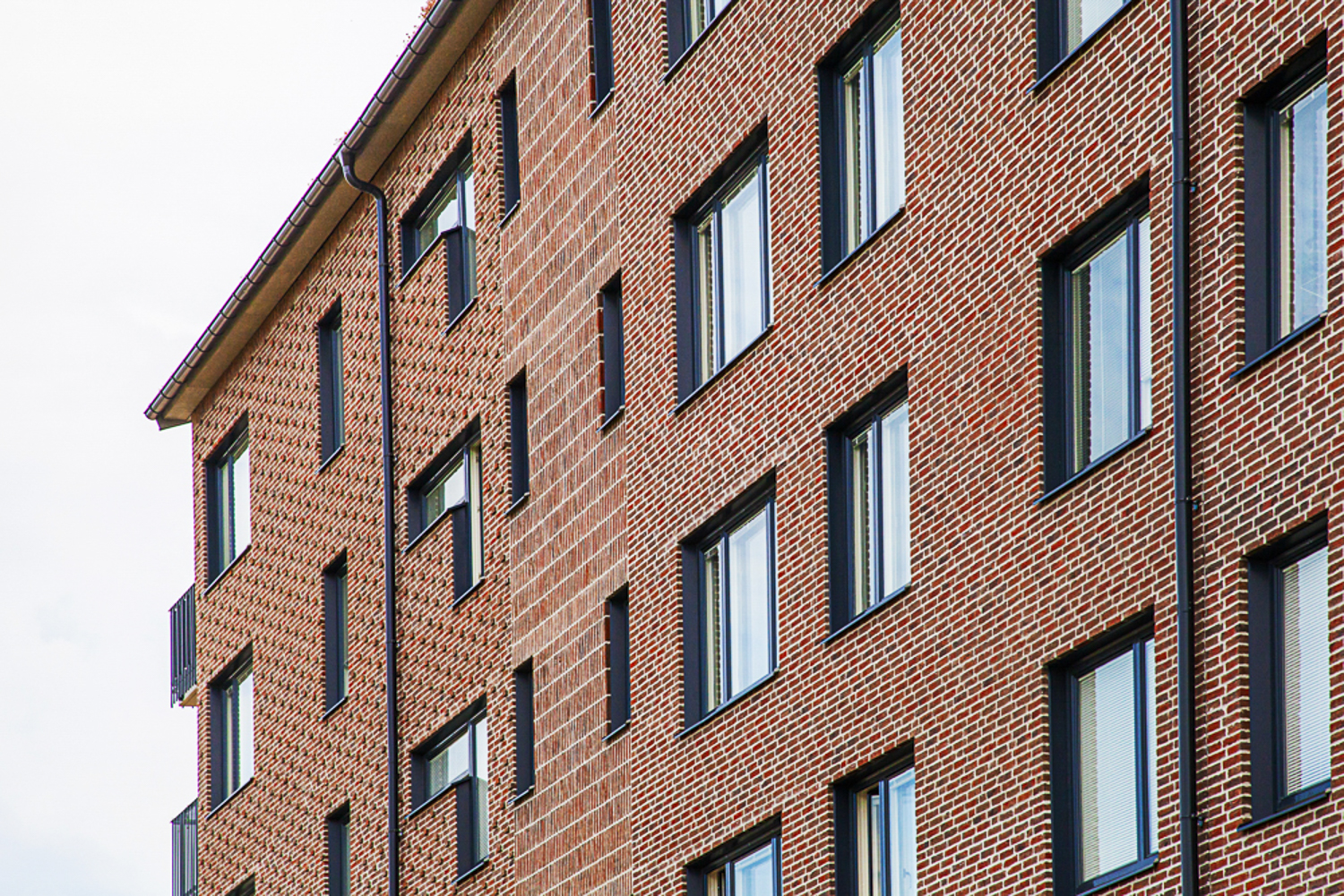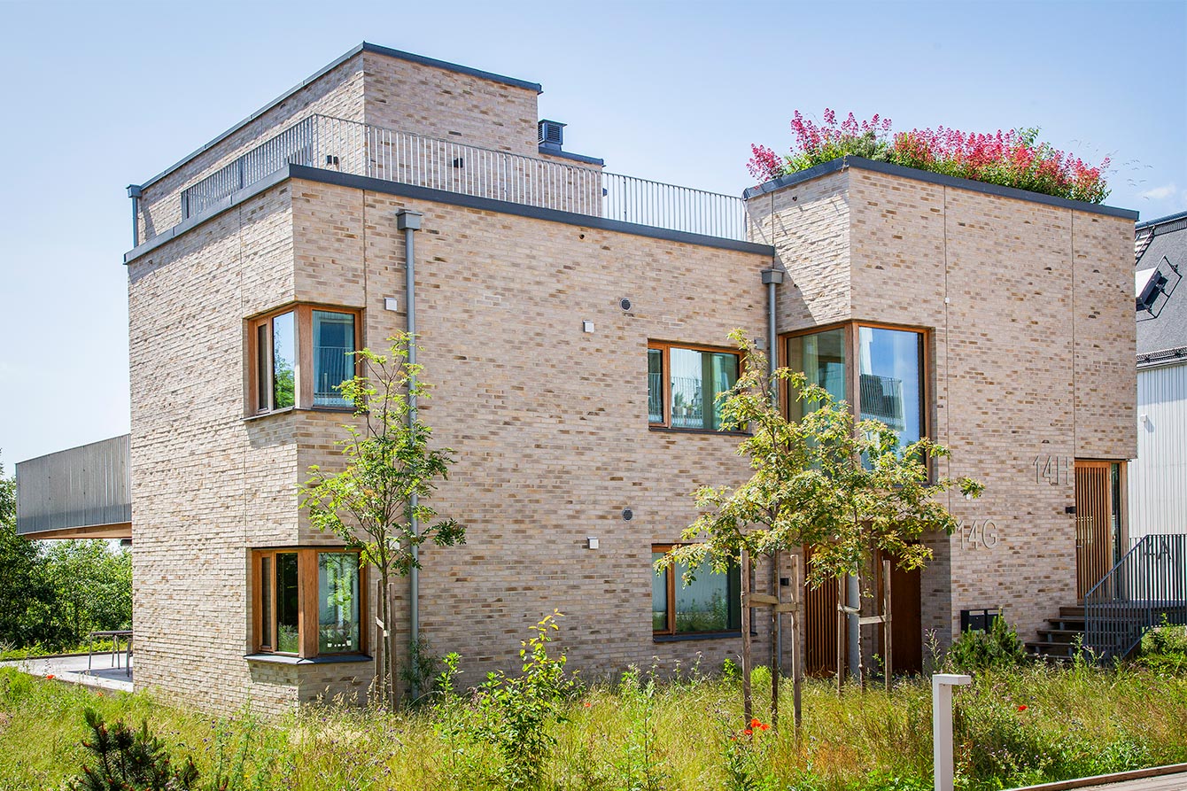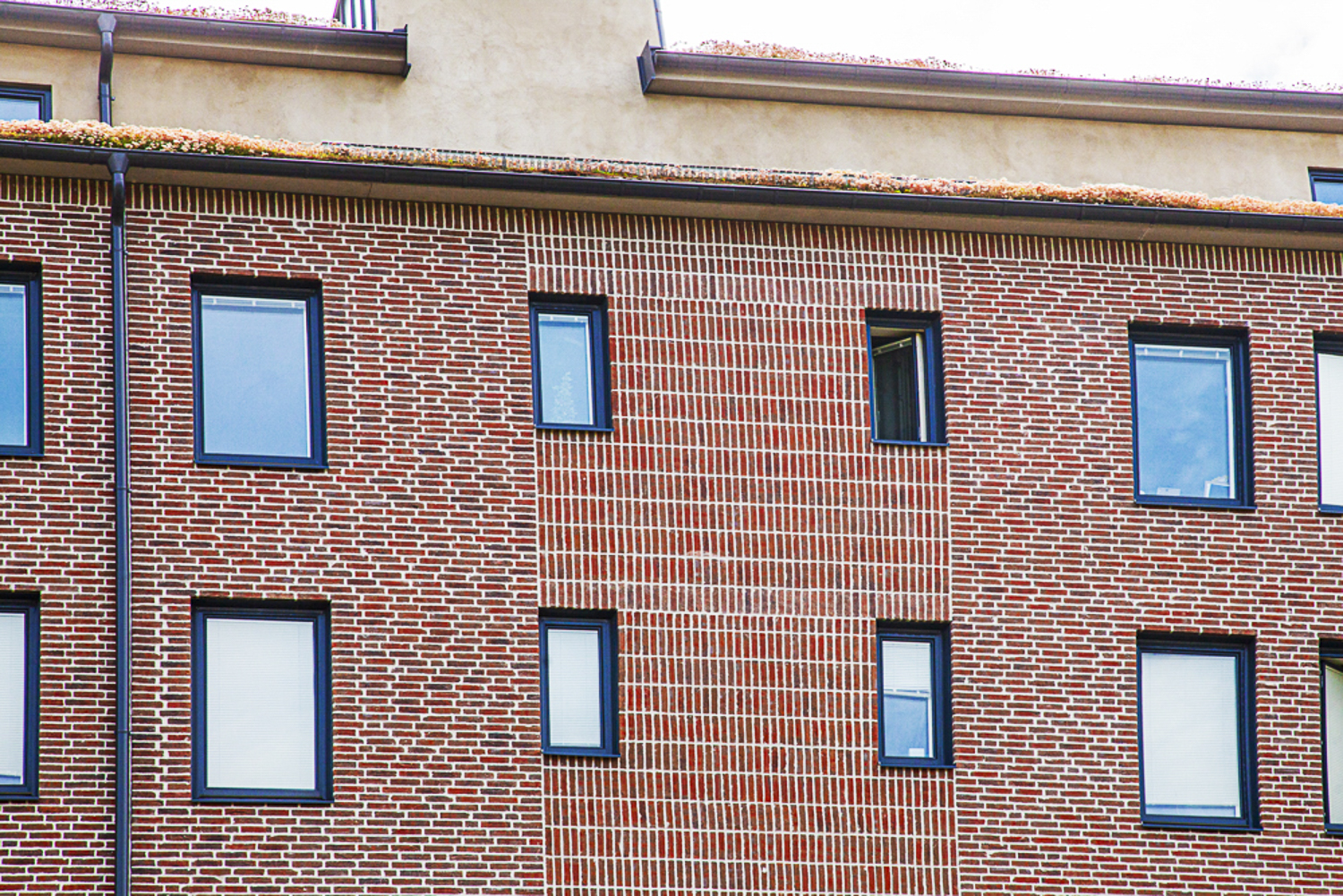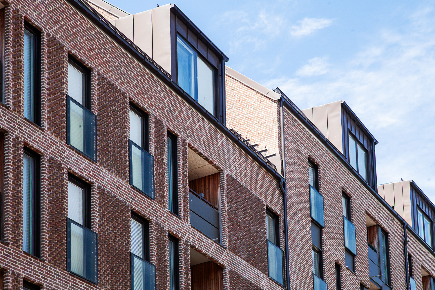 Choosing brick as a facade material has many advantages. We think that a brick facade gives a feeling that the houses are solid and lavish and that in turn gives a social sustainability. You want to both live in and preserve a solid building for future generations. In our Scandinavian climate, with its colour scale, which during large parts of the year goes in grey, brick is also a good choice of facade material as it with its colour scales blends well into the landscape and counteracts the "grey ash". This is very difficult to create with other facade materials such as concrete or sheet metal. Brick also becomes more beautiful over the years with its patina and lively expression, which it can take a hundred years to achieve.