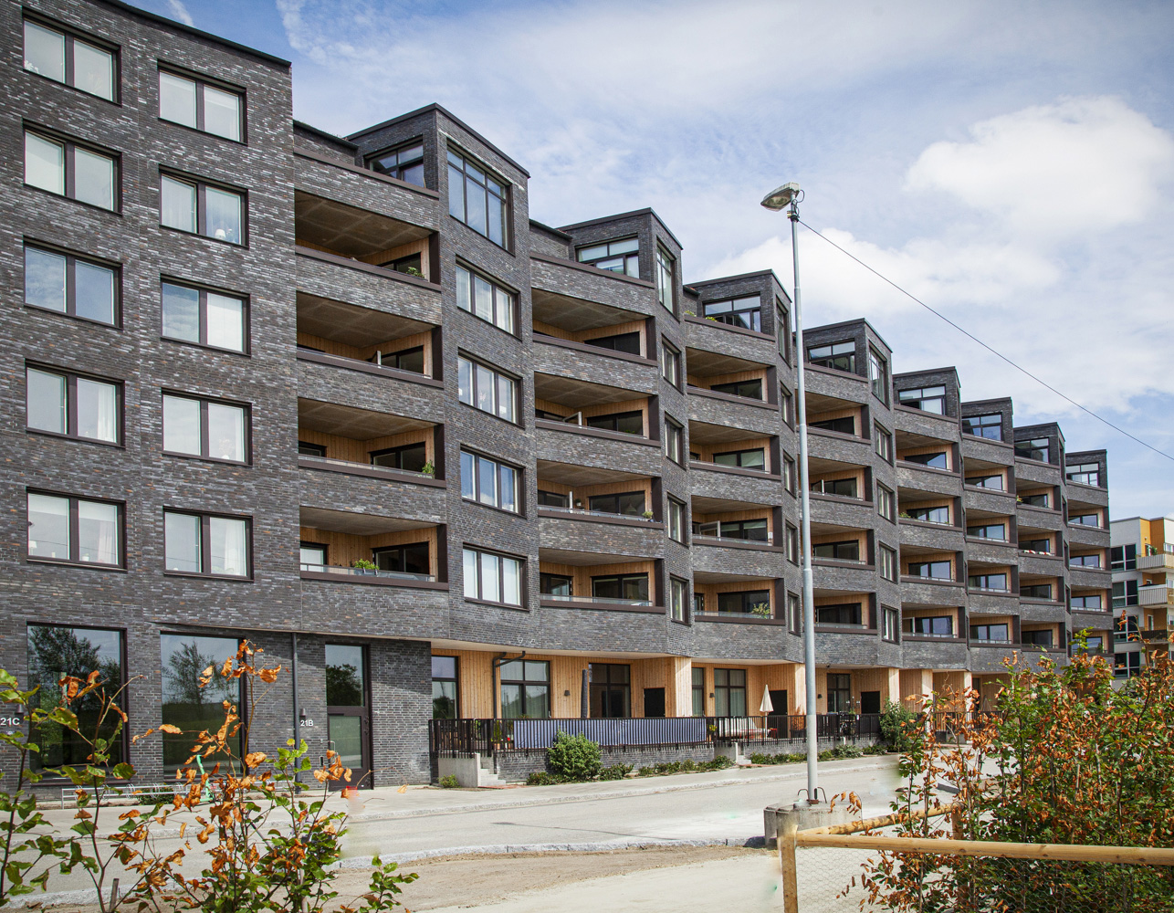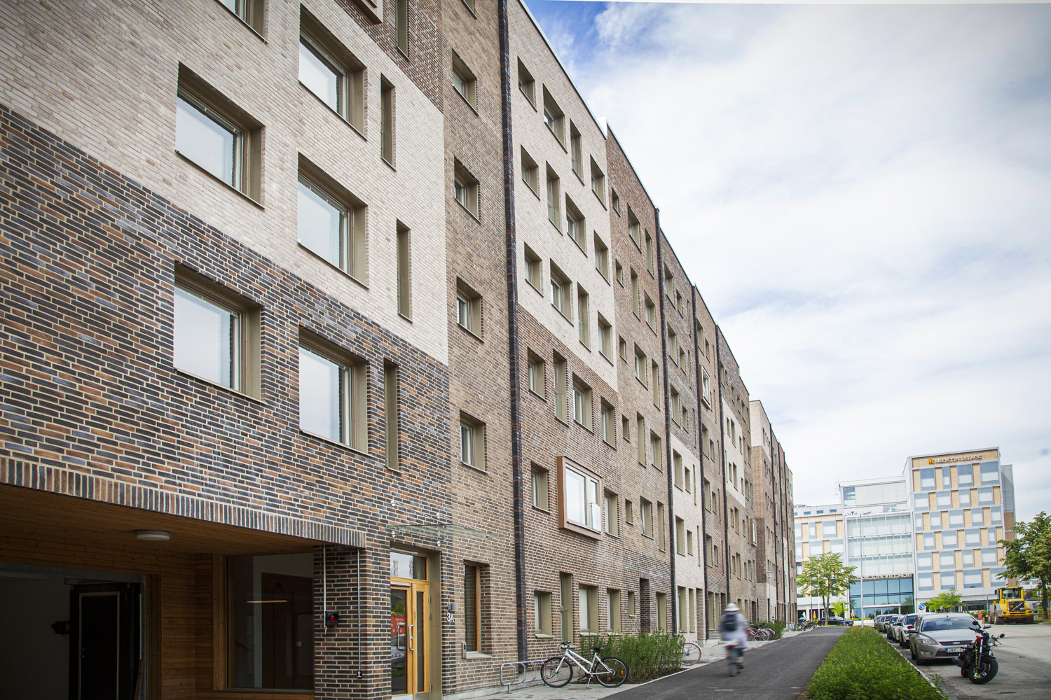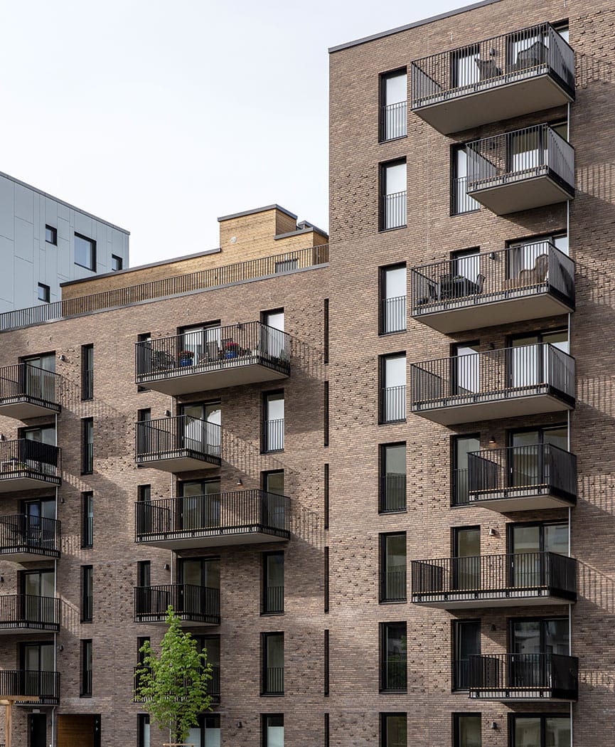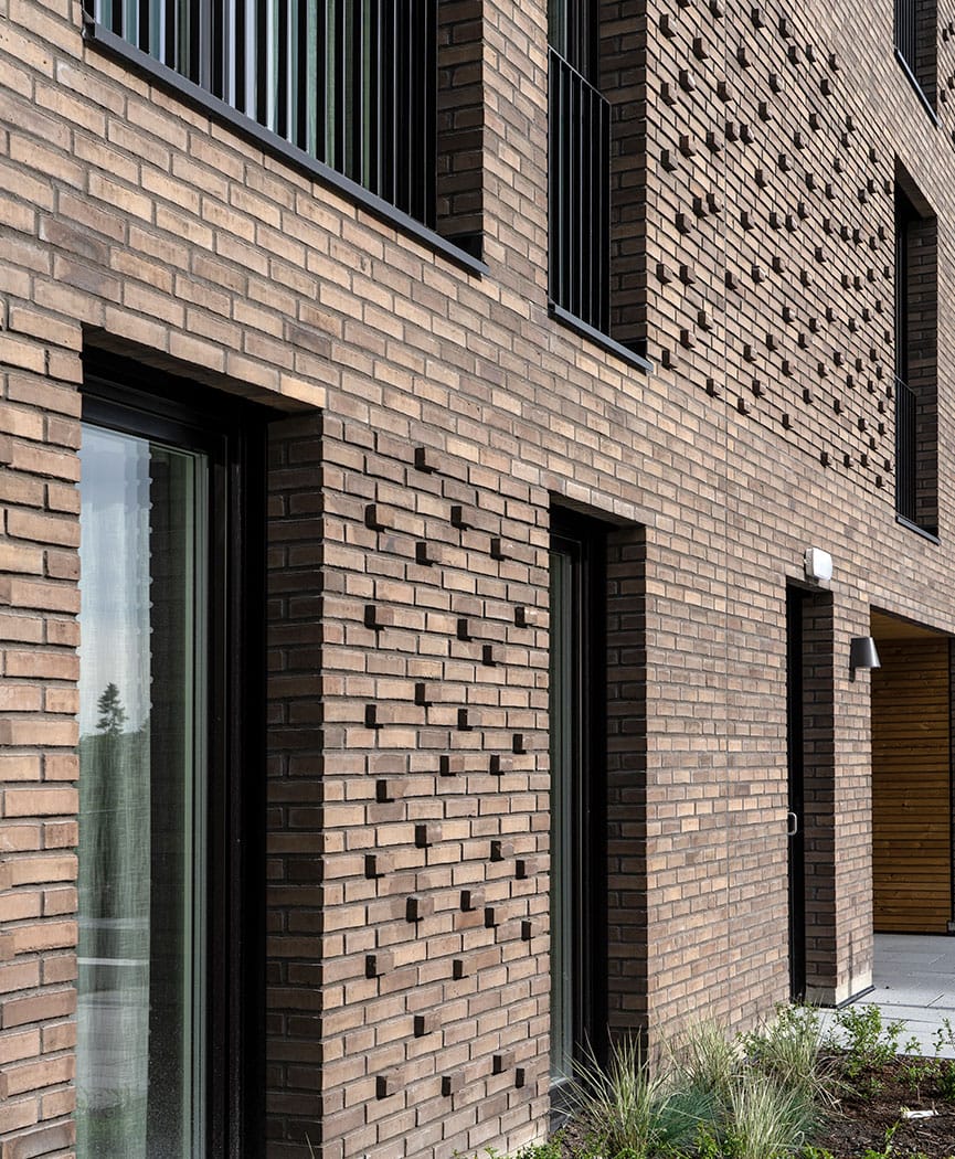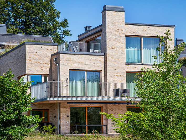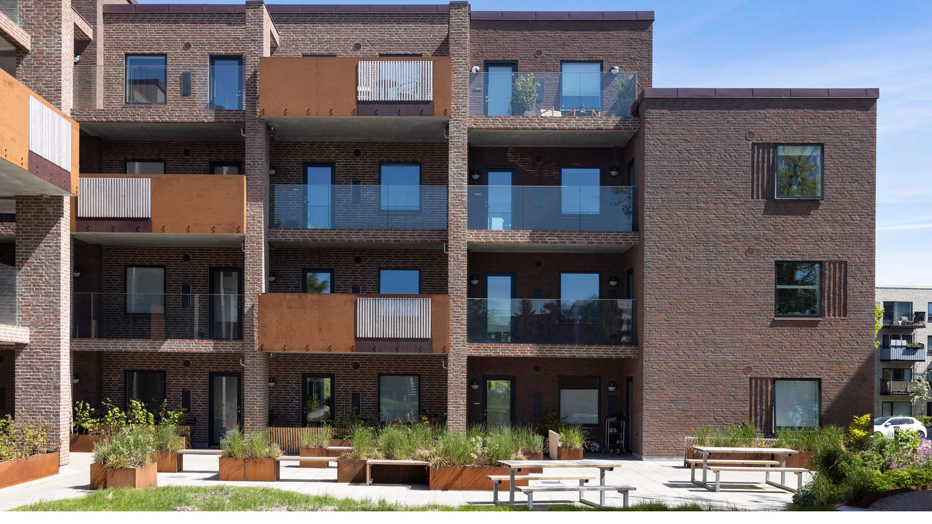 Choosing brick as a facade material has many advantages. We think that a brick facade gives a feeling that the houses are solid and lavish and that in turn gives a social sustainability. You want to both live in and preserve a solid building for future generations. In our Scandinavian climate, with its colour scale, which during large parts of the year goes in grey, brick is also a good choice of facade material as it with its colour scales blends well into the landscape and counteracts the "grey ash". This is very difficult to create with other facade materials such as concrete or sheet metal. Brick also becomes more beautiful over the years with its patina and lively expression, which it can take a hundred years to achieve.