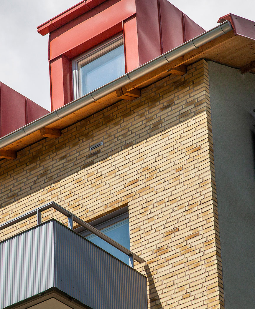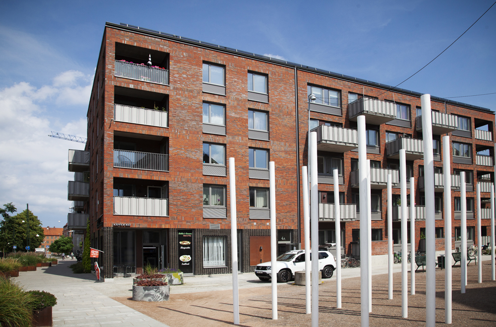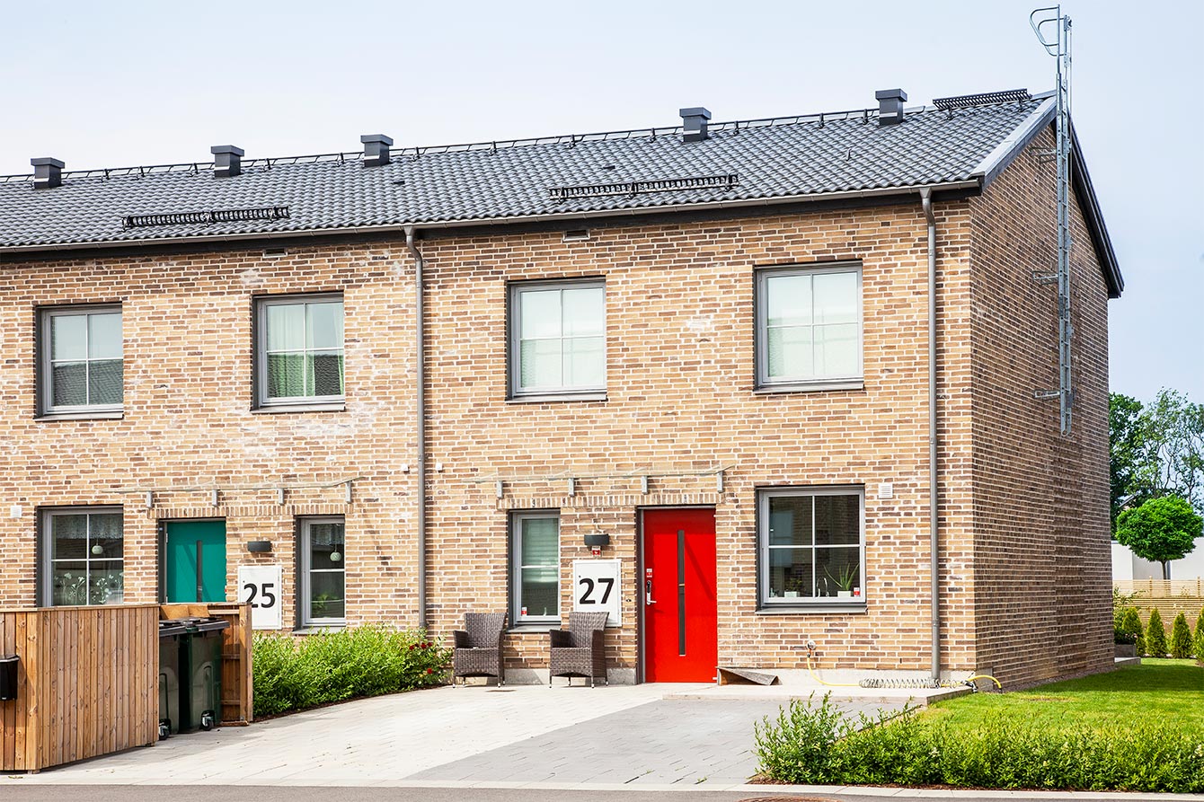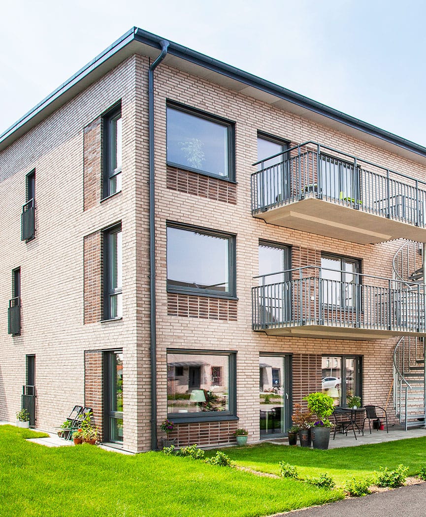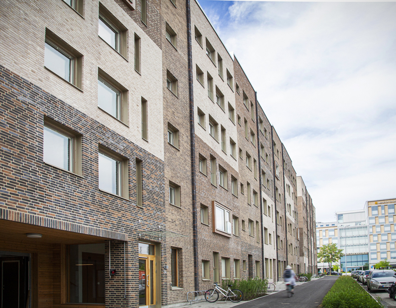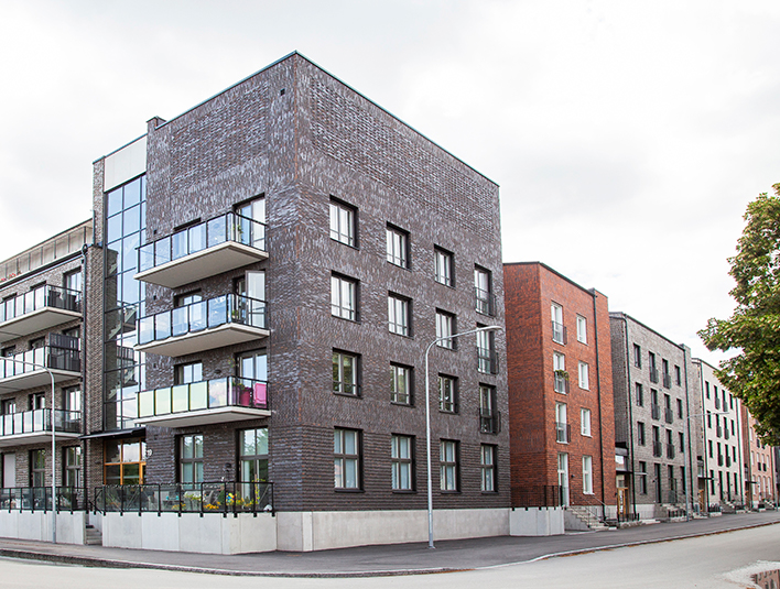Choosing brick as a facade material has many advantages. We think that a brick facade gives a feeling that the houses are solid and lavish and that in turn gives a social sustainability. You want to both live in and preserve a solid building for future generations. In our Scandinavian climate, with its colour scale, which during large parts of the year goes in grey, brick is also a good choice of facade material as it with its colour scales blends well into the landscape and counteracts the "grey ash". This is very difficult to create with other facade materials such as concrete or sheet metal. Brick also becomes more beautiful over the years with its patina and lively expression, which it can take a hundred years to achieve.