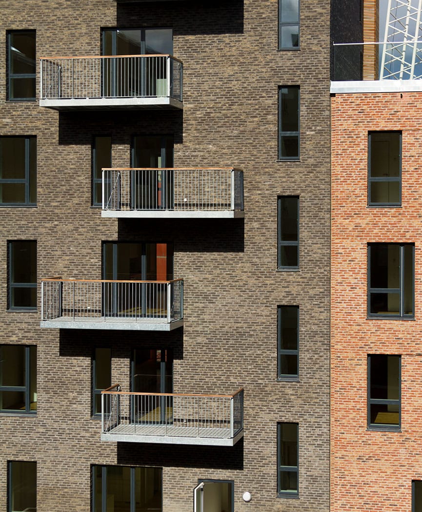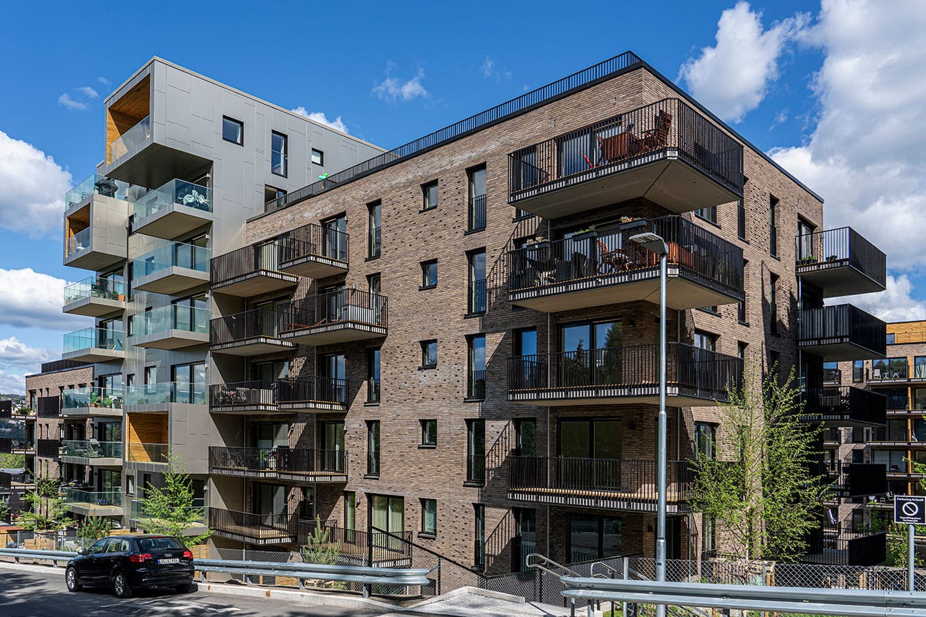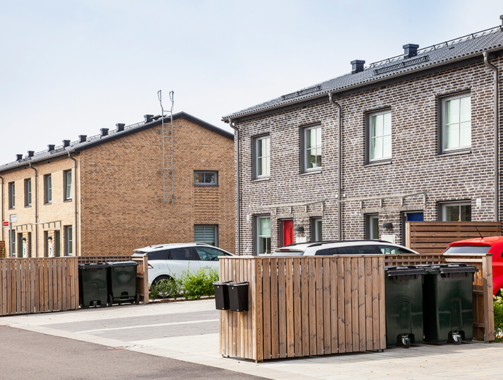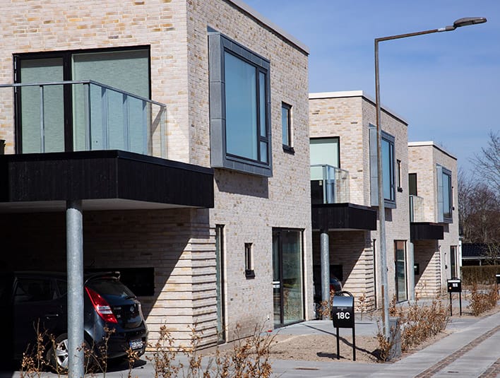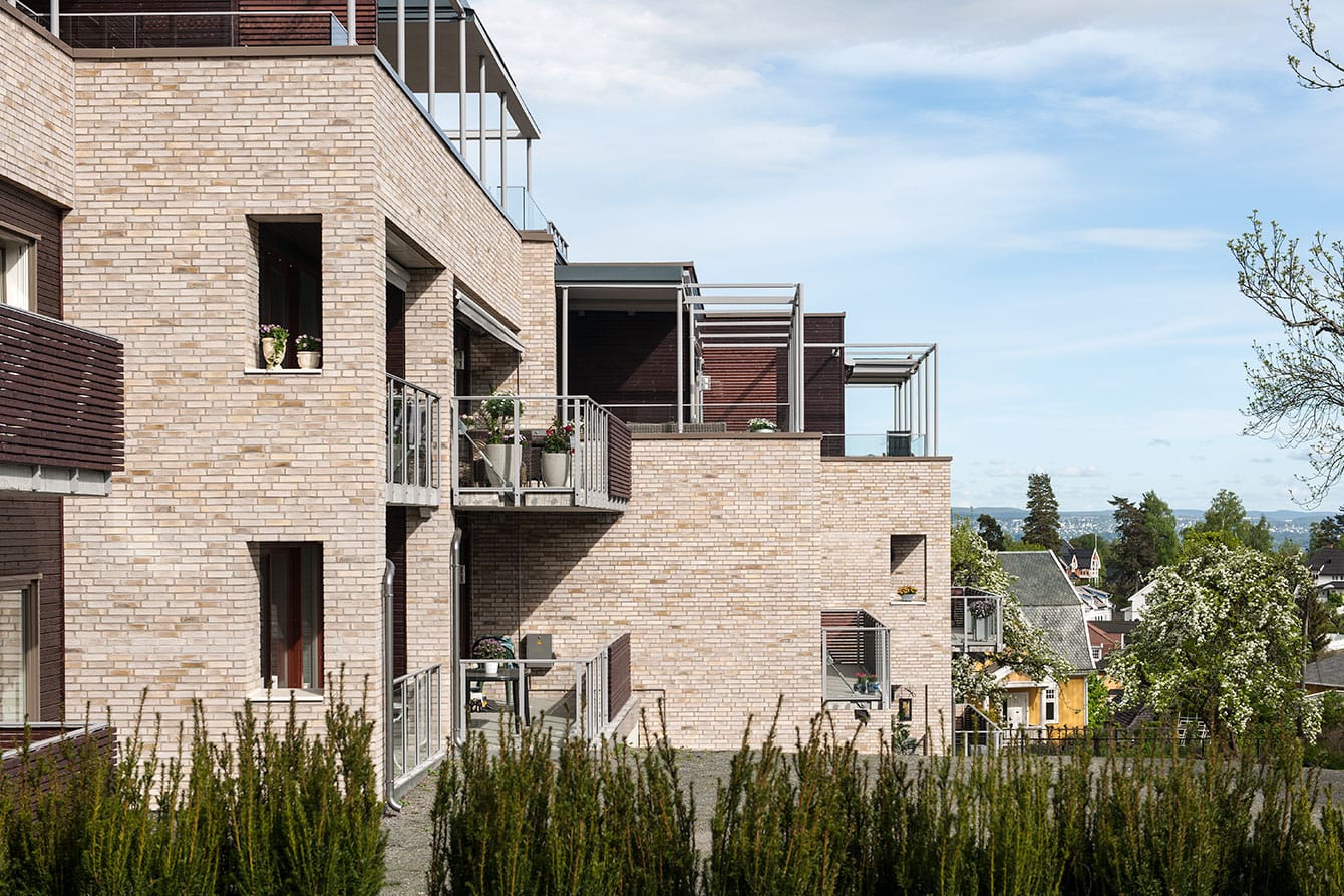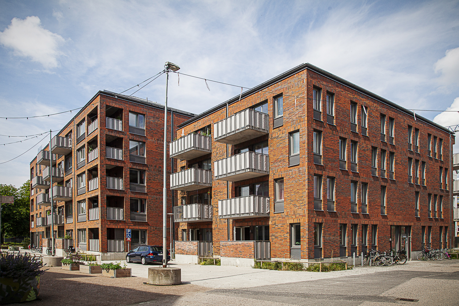 Choosing brick as a facade material has many advantages. We think that a brick facade gives a feeling that the houses are solid and lavish and that in turn gives a social sustainability. You want to both live in and preserve a solid building for future generations. In our Scandinavian climate, with its colour scale, which during large parts of the year goes in grey, brick is also a good choice of facade material as it with its colour scales blends well into the landscape and counteracts the "grey ash". This is very difficult to create with other facade materials such as concrete or sheet metal. Brick also becomes more beautiful over the years with its patina and lively expression, which it can take a hundred years to achieve.