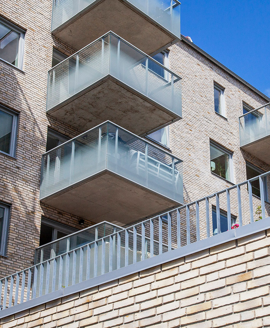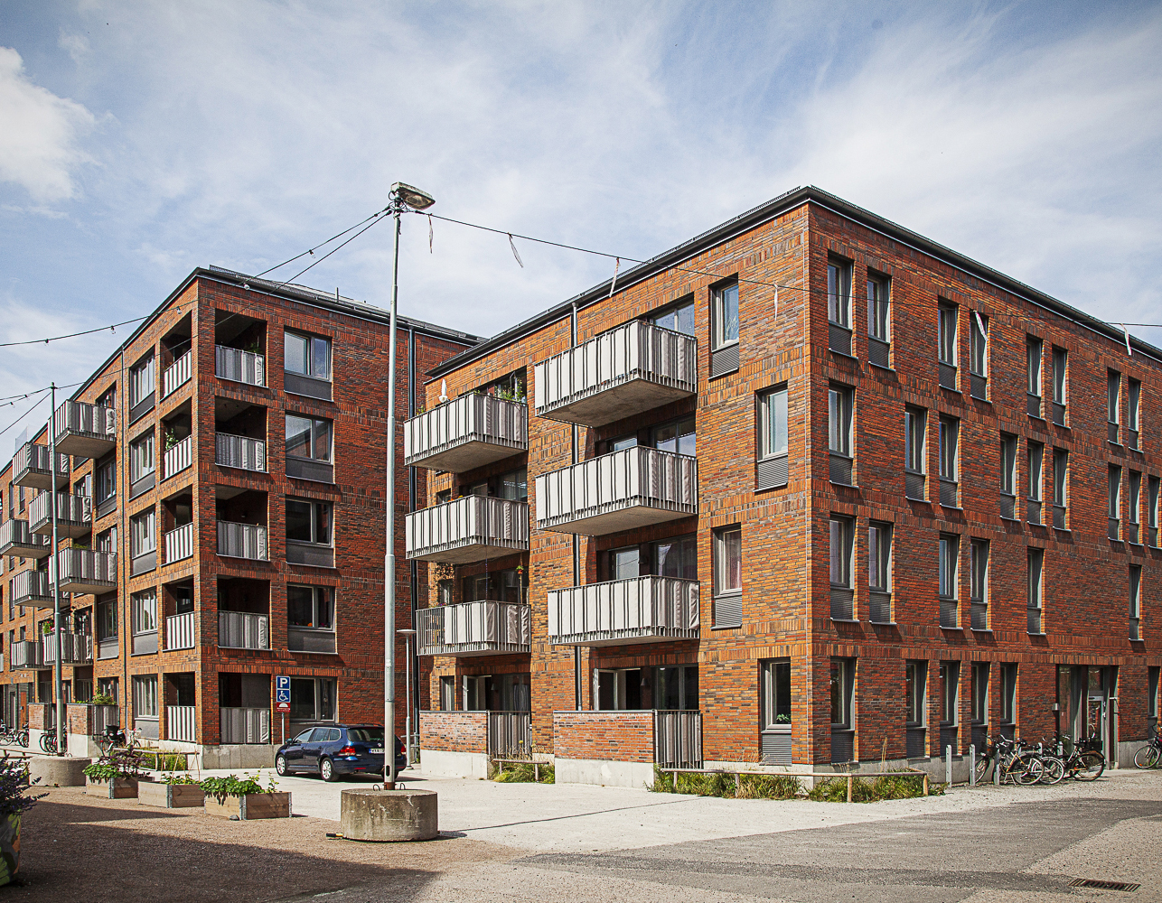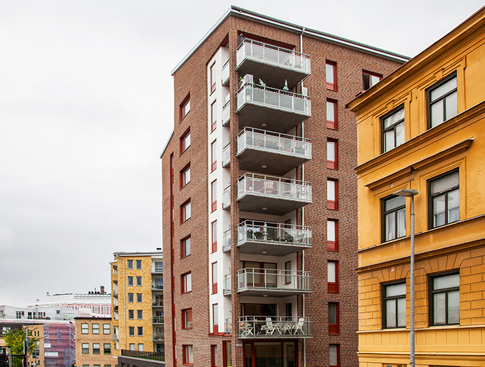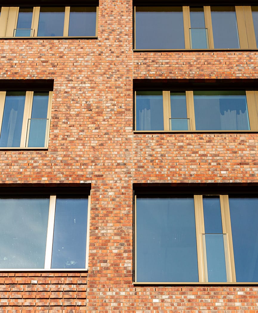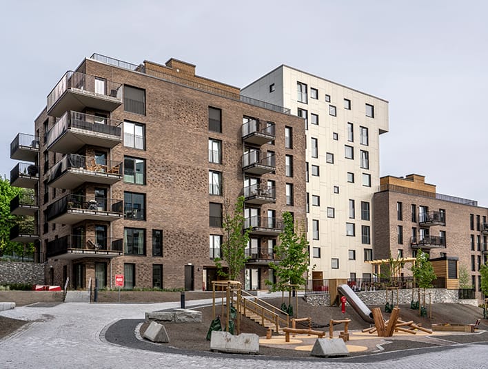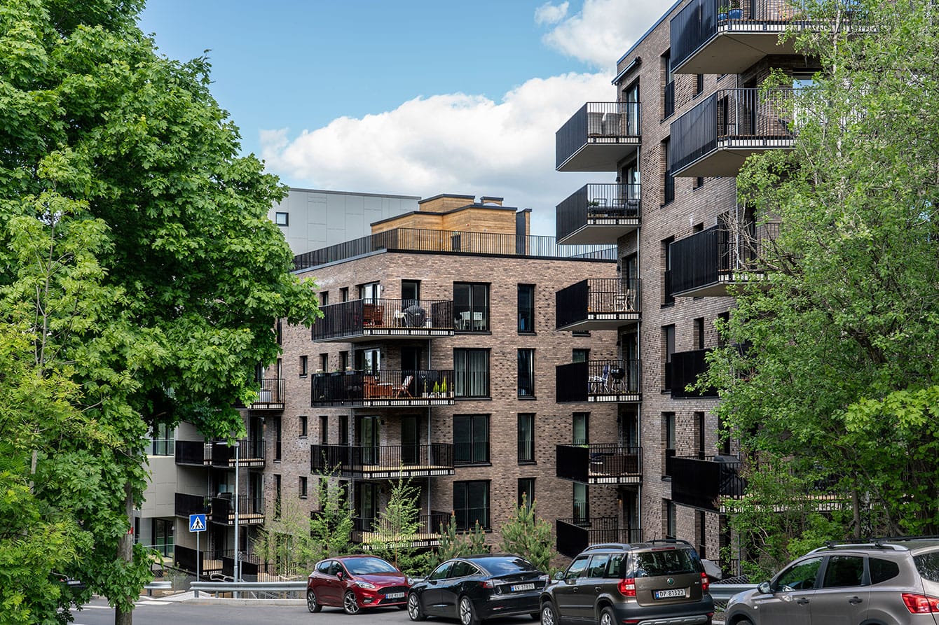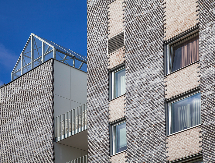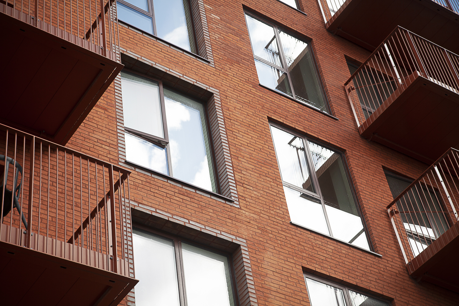 Choosing brick as a facade material has many advantages. We think that a brick facade gives a feeling that the houses are solid and lavish and that in turn gives a social sustainability. You want to both live in and preserve a solid building for future generations. In our Scandinavian climate, with its colour scale, which during large parts of the year goes in grey, brick is also a good choice of facade material as it with its colour scales blends well into the landscape and counteracts the "grey ash". This is very difficult to create with other facade materials such as concrete or sheet metal. Brick also becomes more beautiful over the years with its patina and lively expression, which it can take a hundred years to achieve.