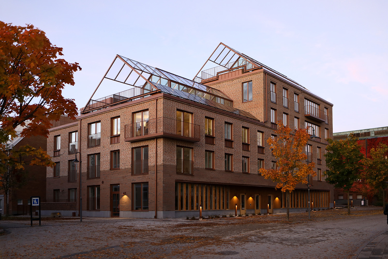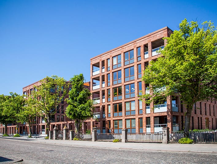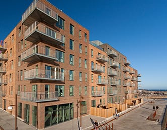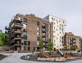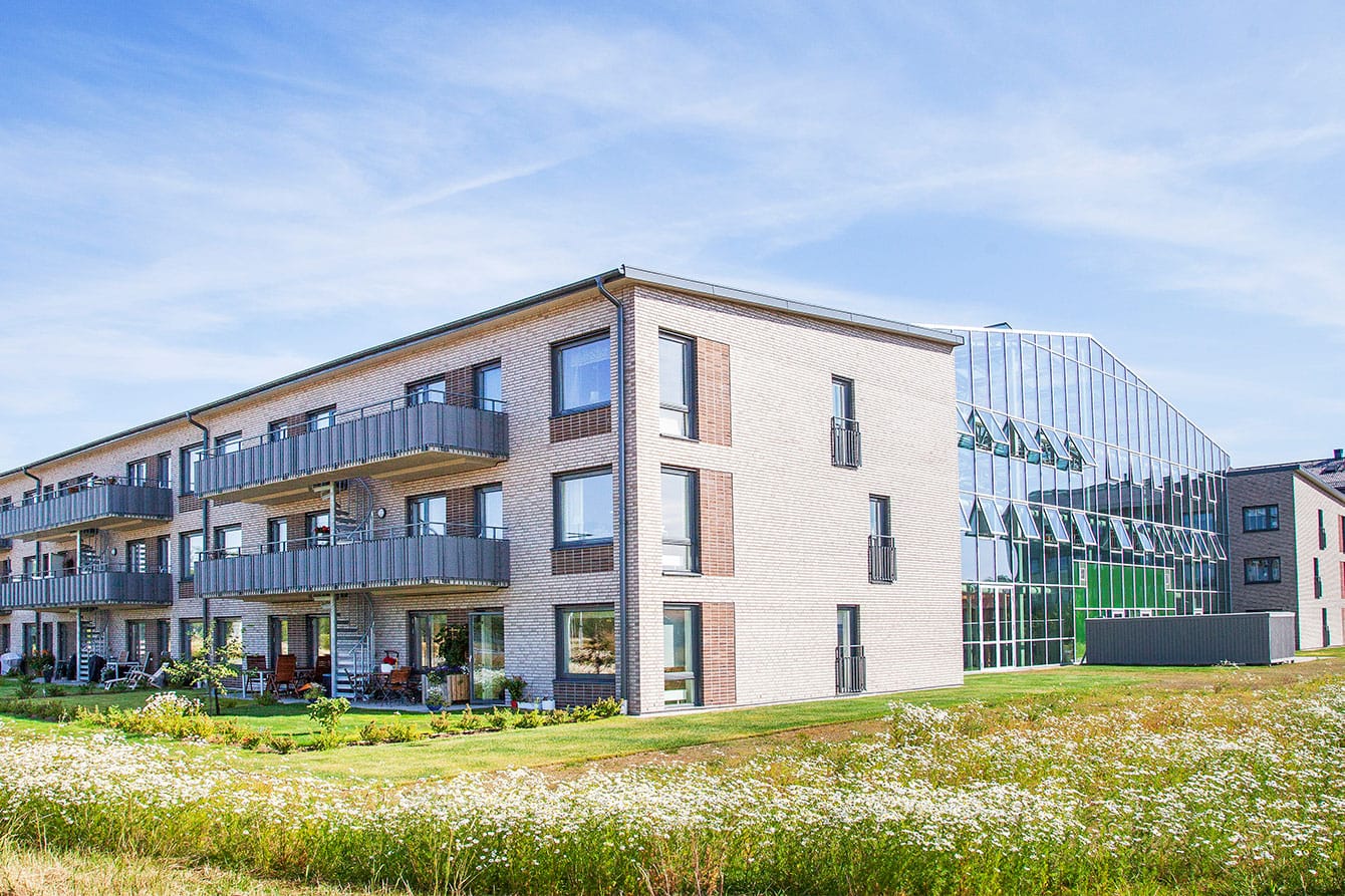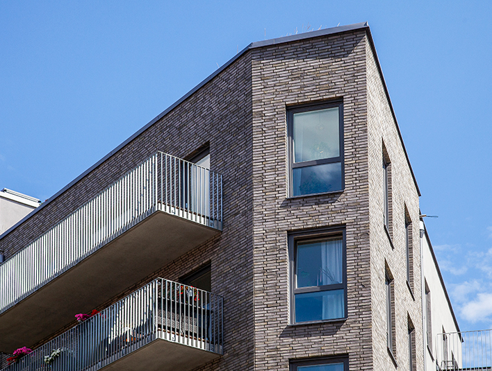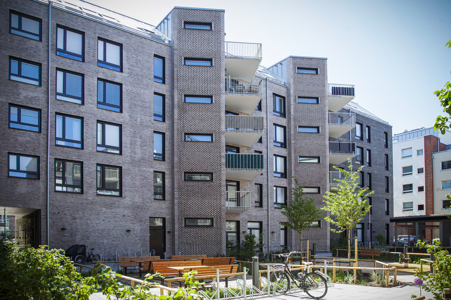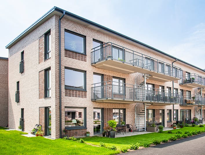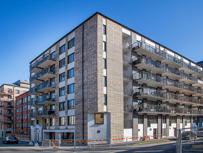 Choosing brick as a facade material has many advantages. We think that a brick facade gives a feeling that the houses are solid and lavish and that in turn gives a social sustainability. You want to both live in and preserve a solid building for future generations. In our Scandinavian climate, with its colour scale, which during large parts of the year goes in grey, brick is also a good choice of facade material as it with its colour scales blends well into the landscape and counteracts the "grey ash". This is very difficult to create with other facade materials such as concrete or sheet metal. Brick also becomes more beautiful over the years with its patina and lively expression, which it can take a hundred years to achieve.