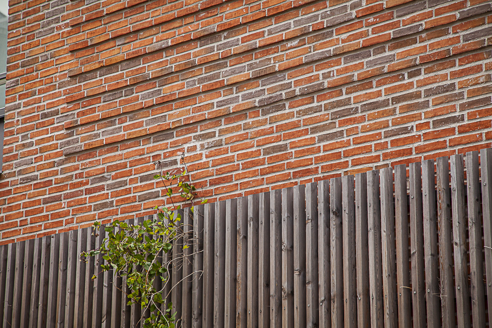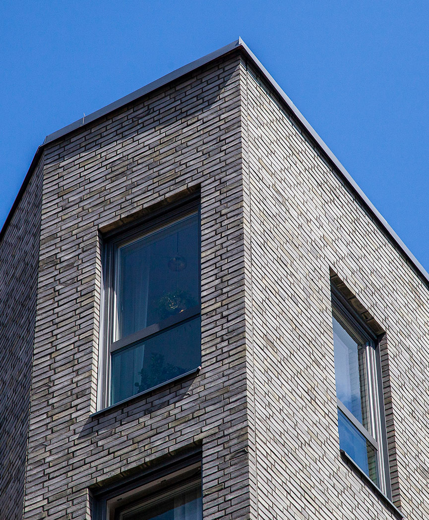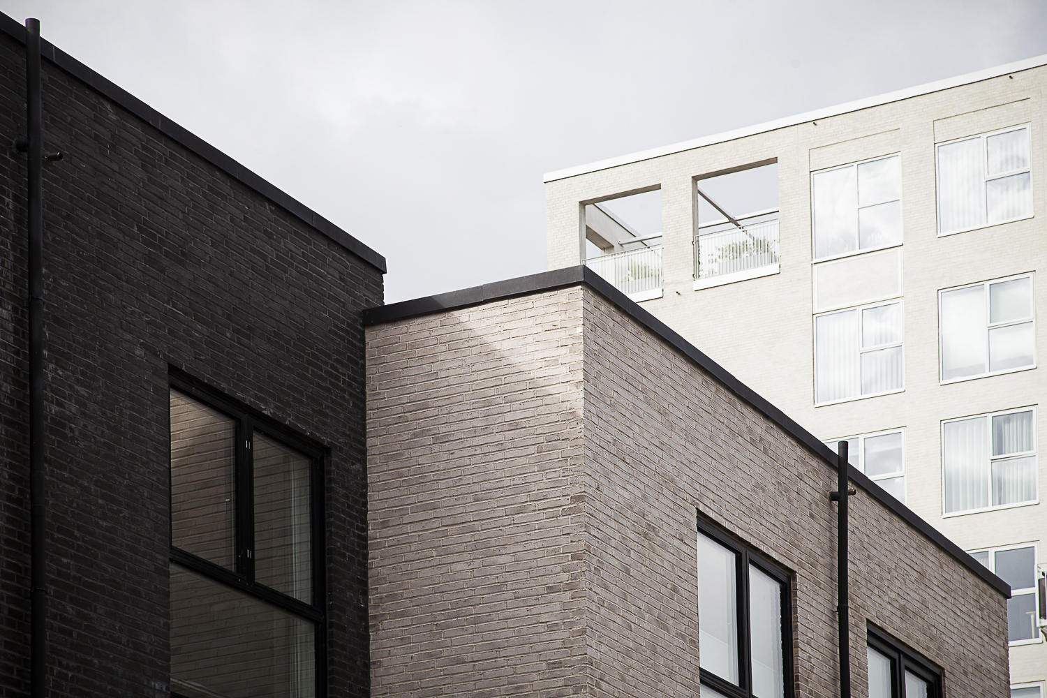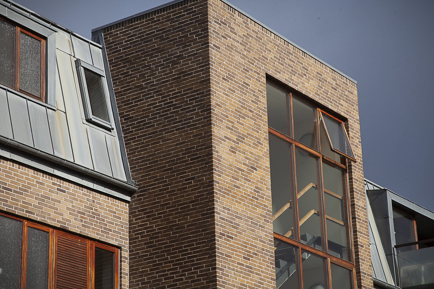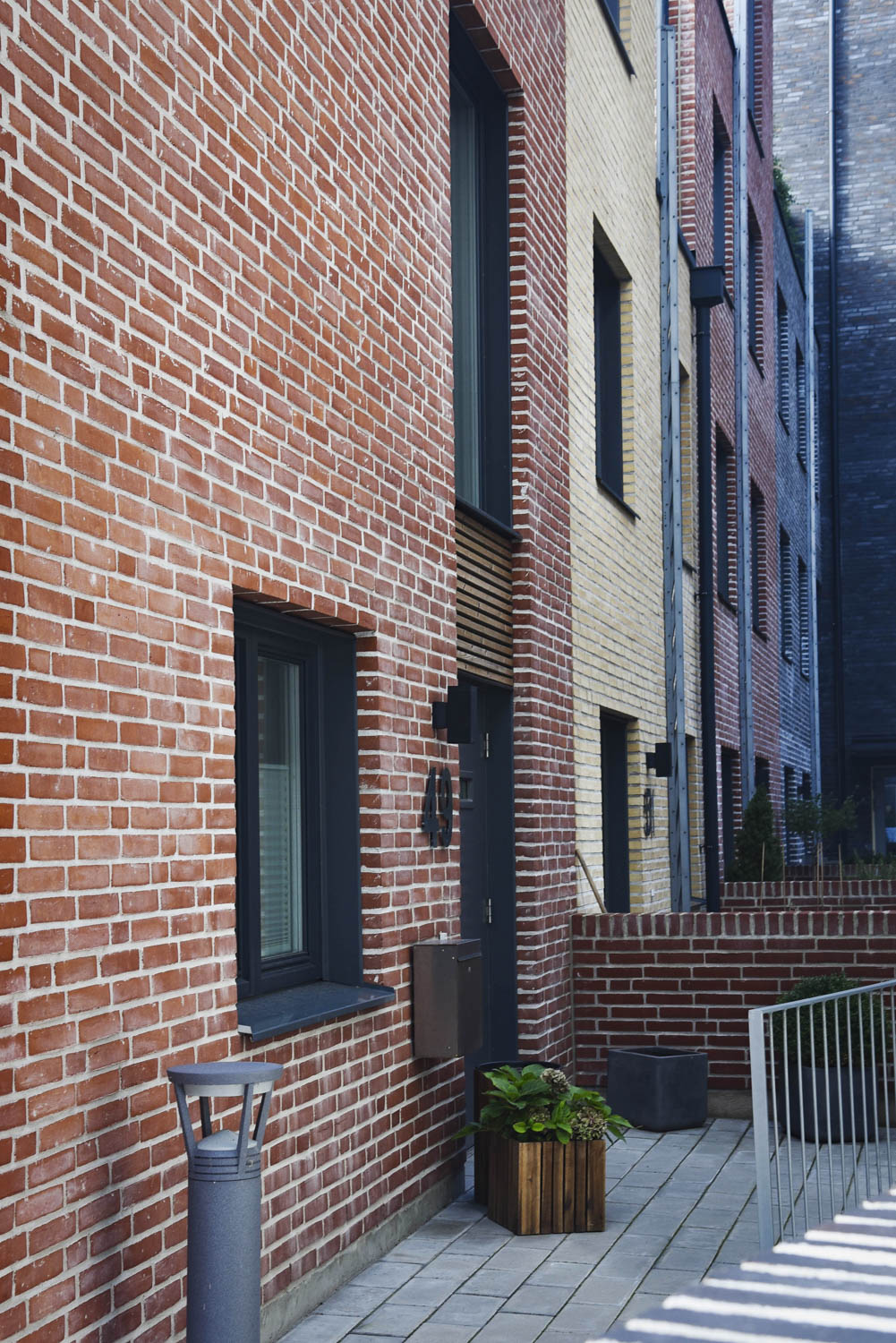 The centre of the project is a courtyard surrounded by five townhouses. Each house has a unique bond and technique, but all masonry is based on RT 154 and RT 554. The use of identical bricks provides a common thread across the five townhouses. As such, they are alike but unique.