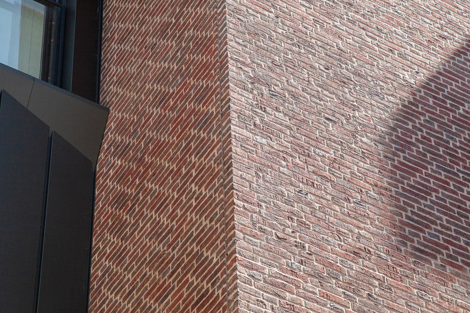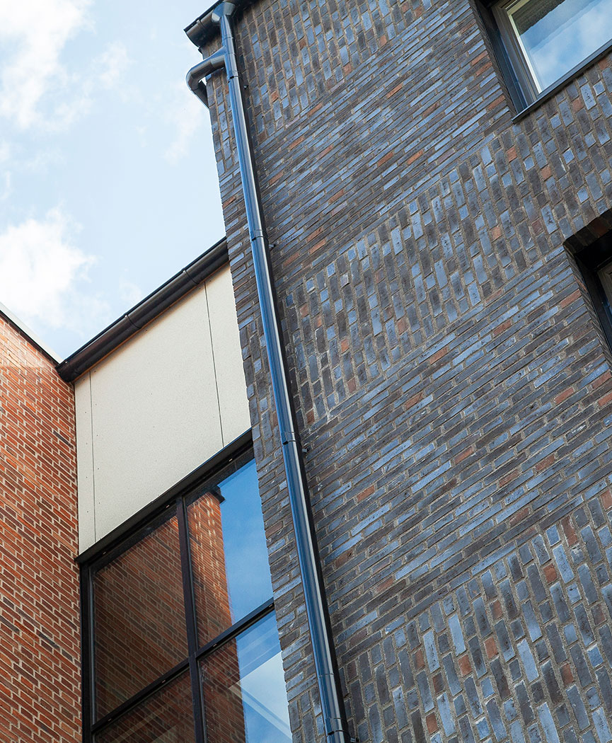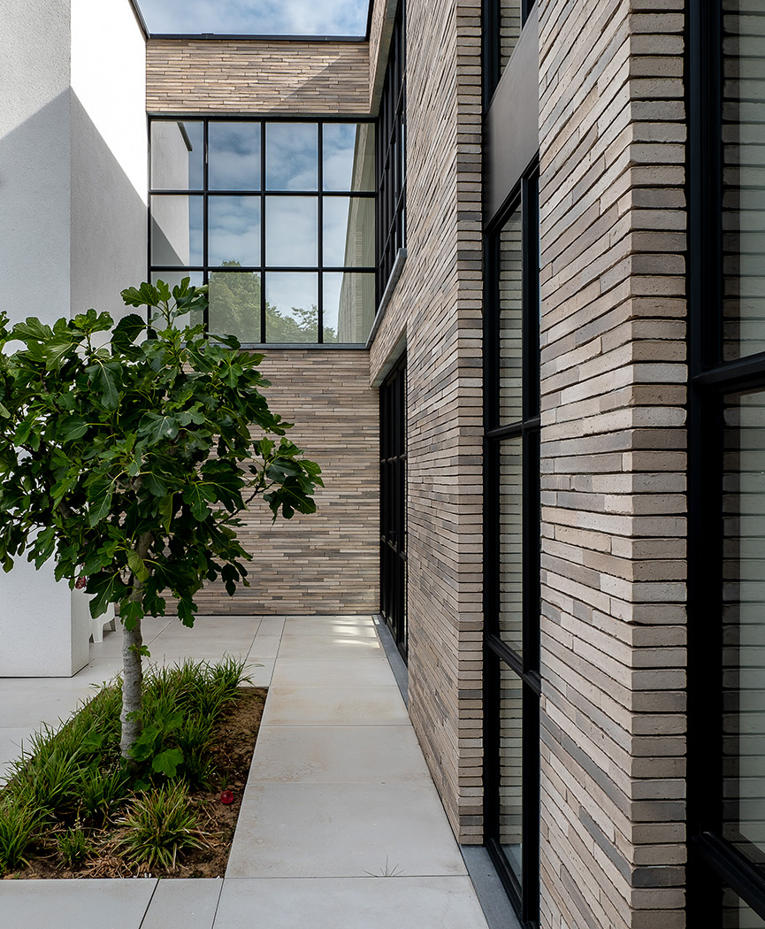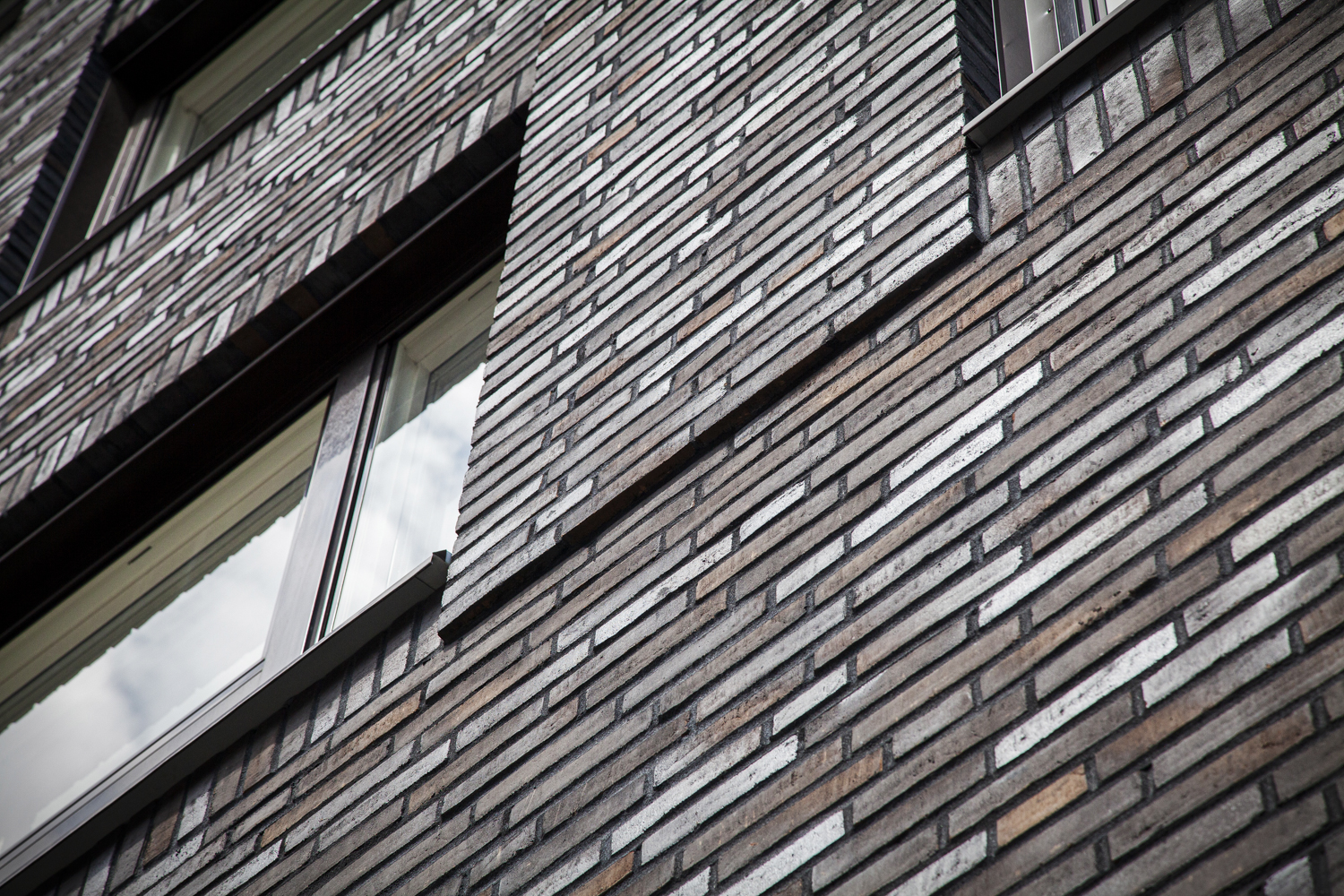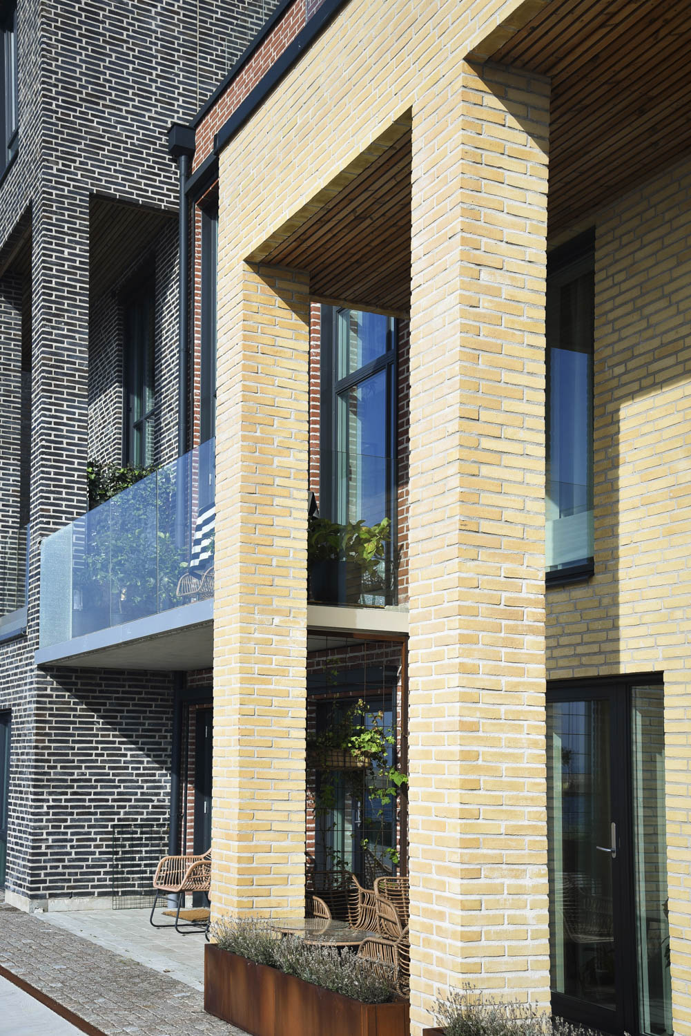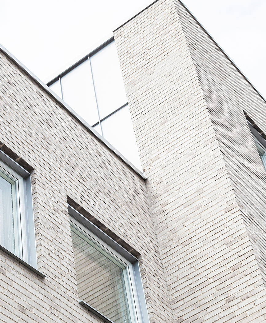 The centre of the project is a courtyard surrounded by five townhouses. Each house has a unique bond and technique, but all masonry is based on RT 154 and RT 554. The use of identical bricks provides a common thread across the five townhouses. As such, they are alike but unique.