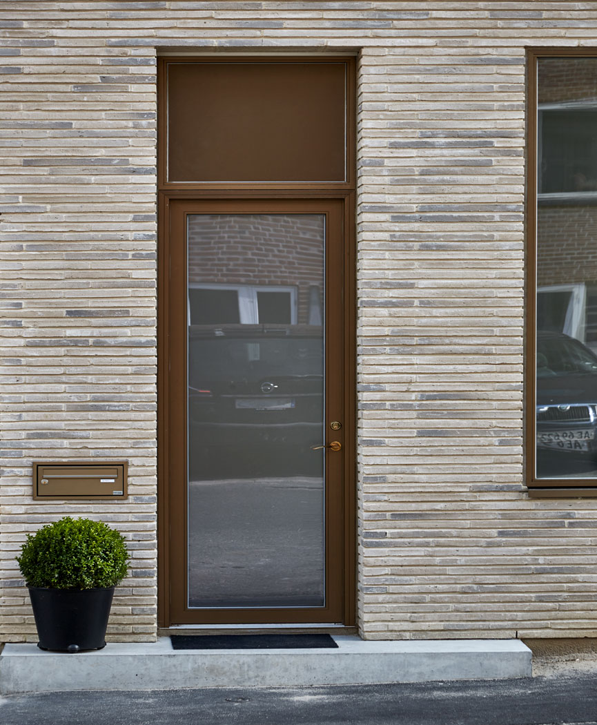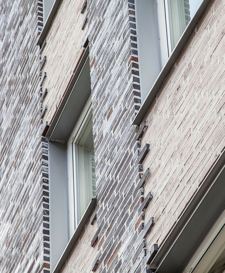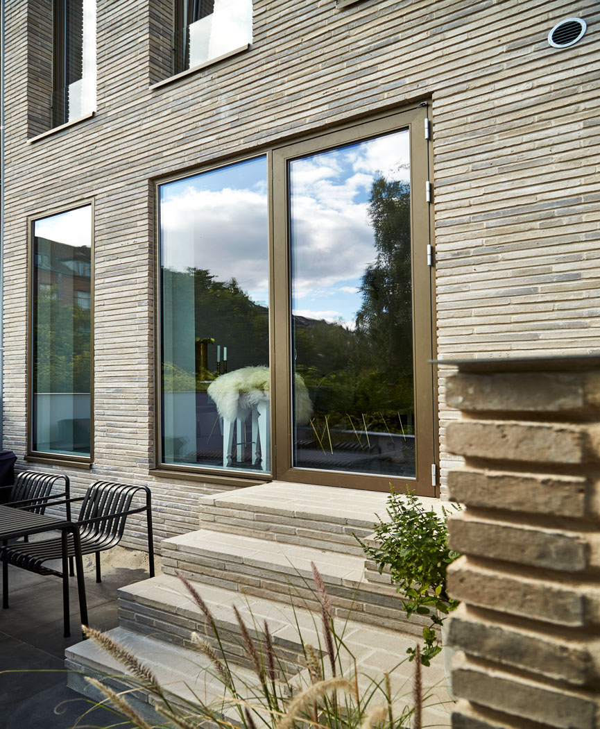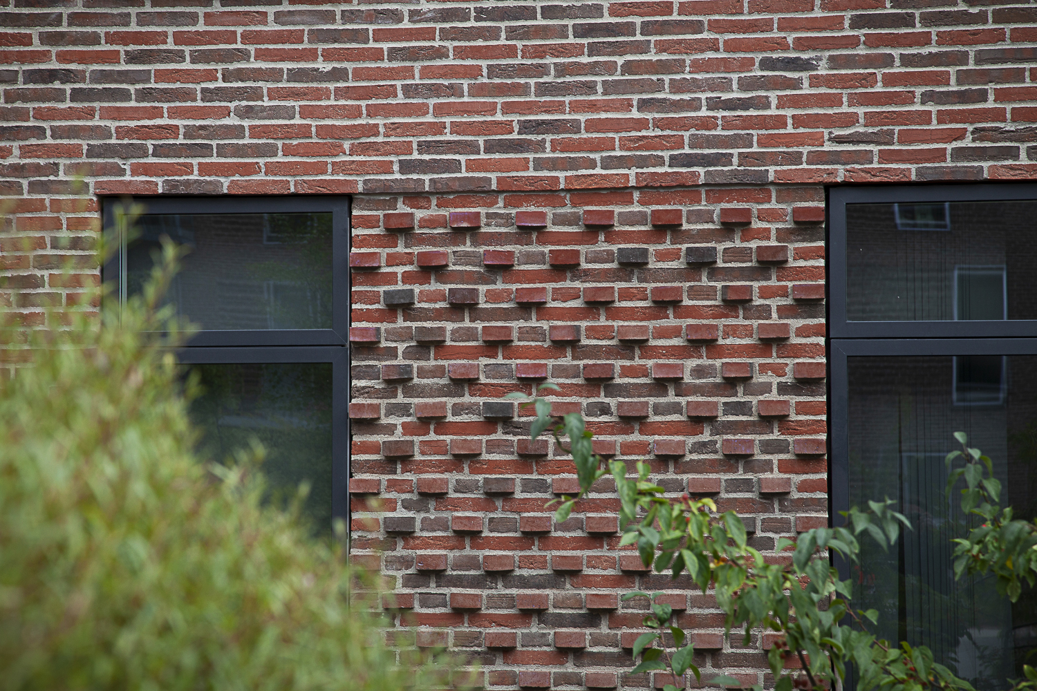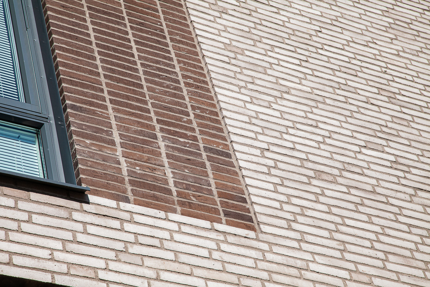 The centre of the project is a courtyard surrounded by five townhouses. Each house has a unique bond and technique, but all masonry is based on RT 154 and RT 554. The use of identical bricks provides a common thread across the five townhouses. As such, they are alike but unique.