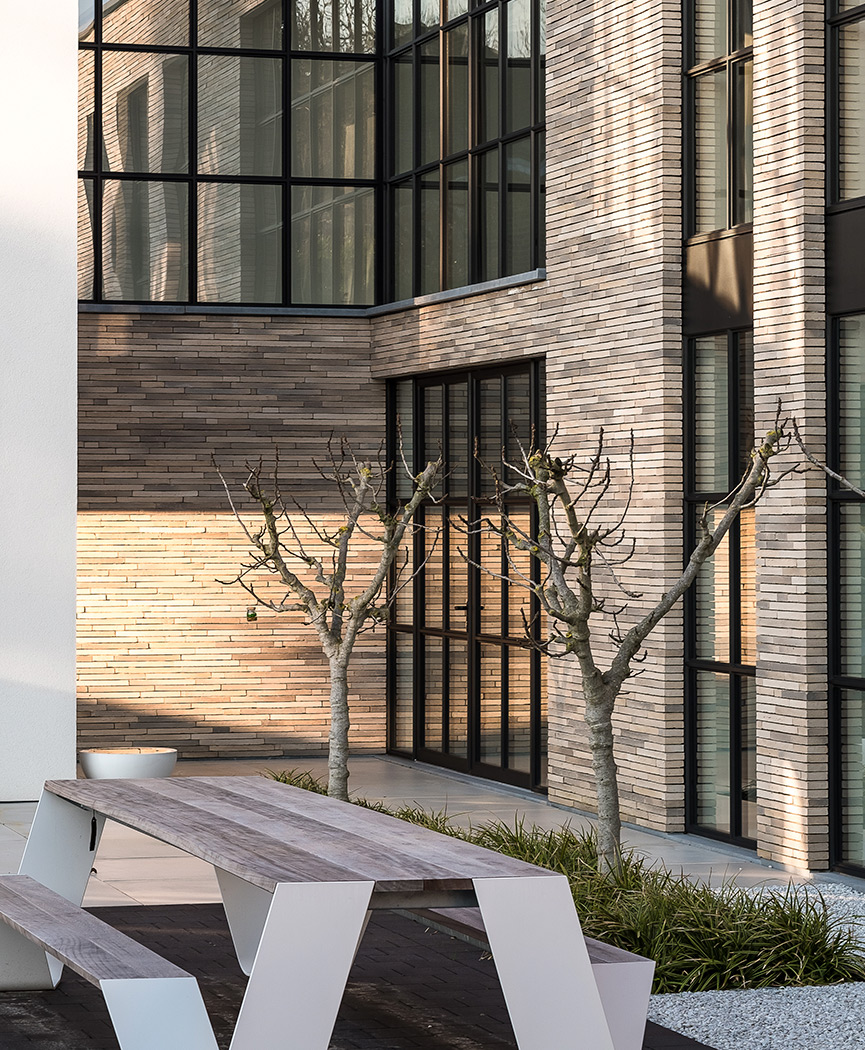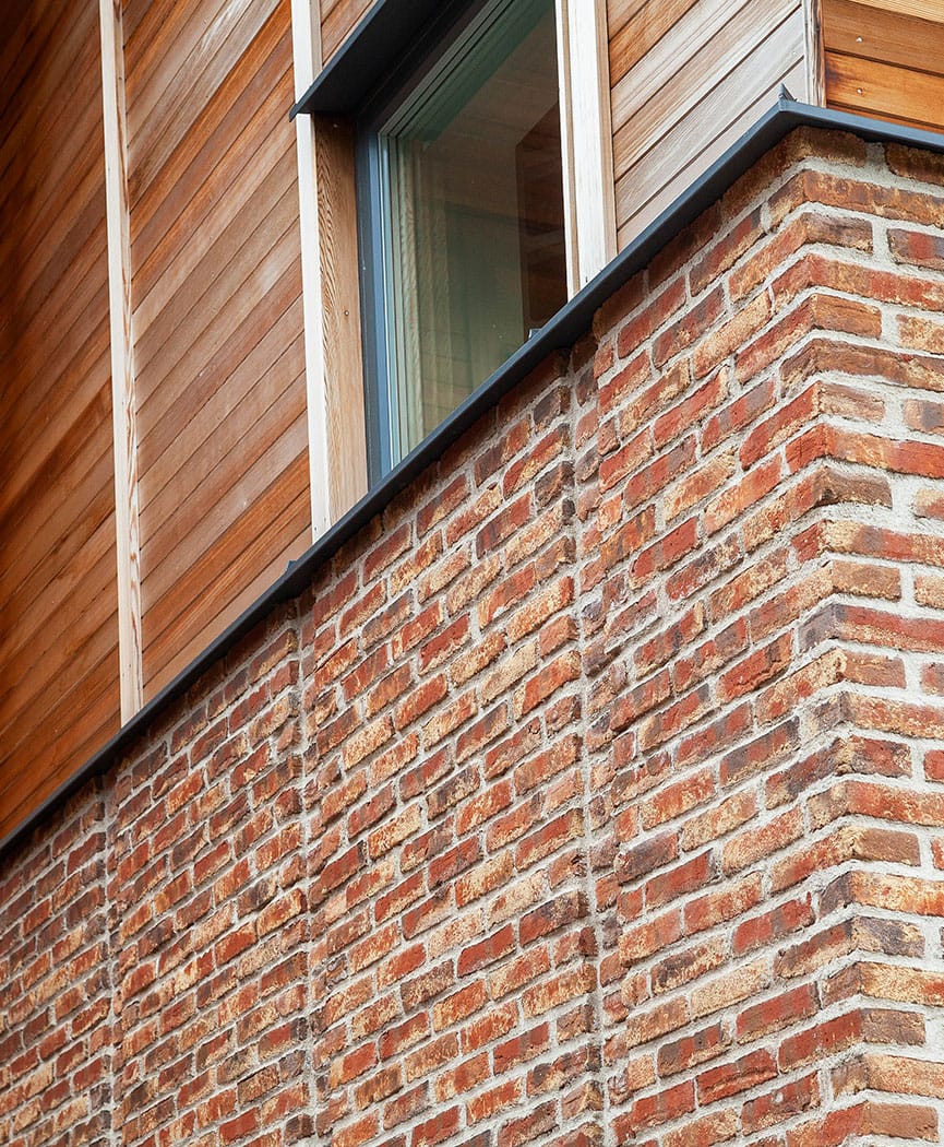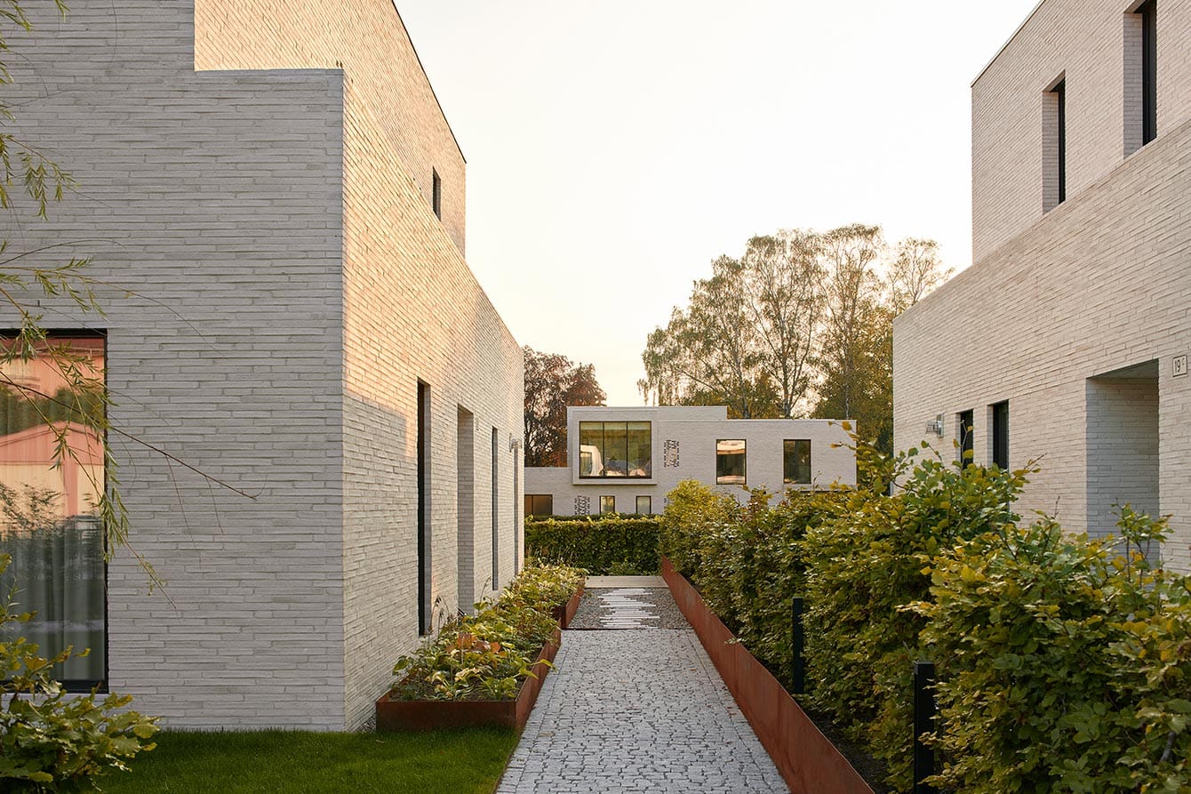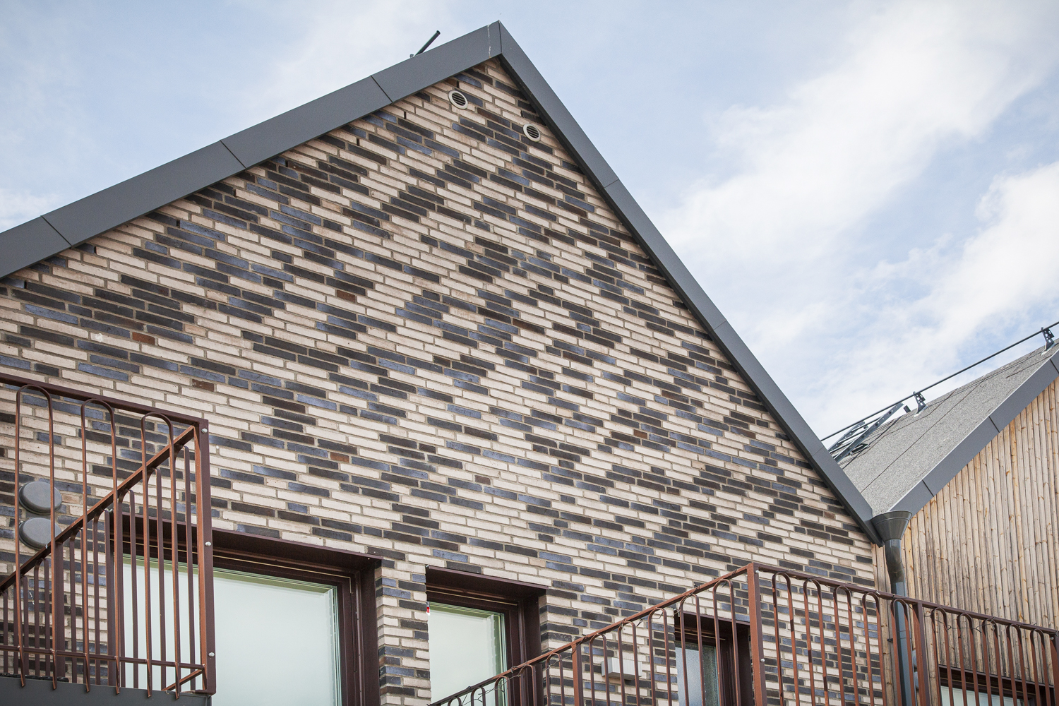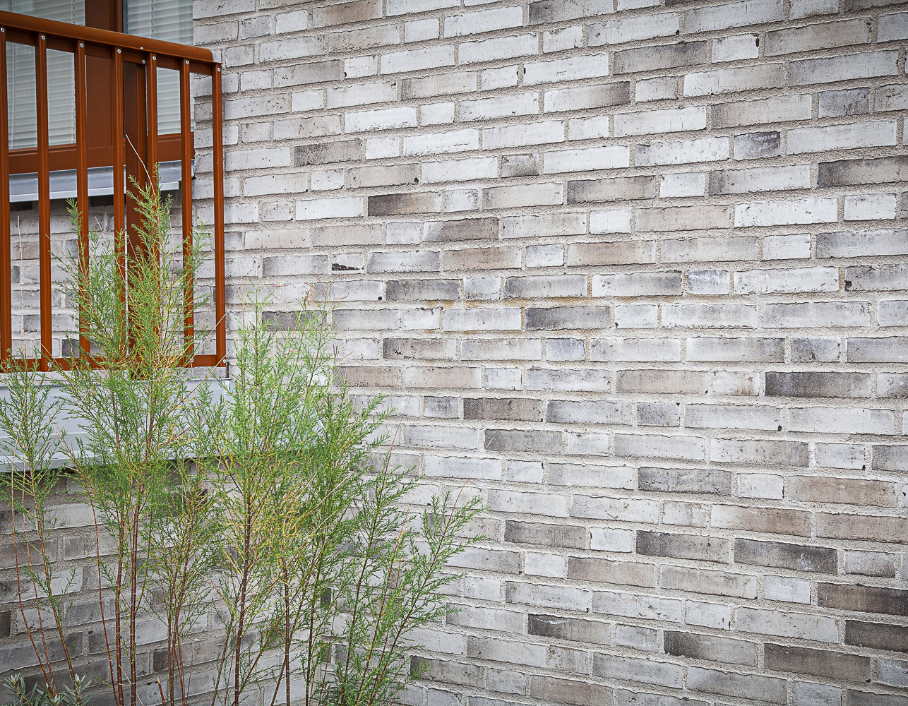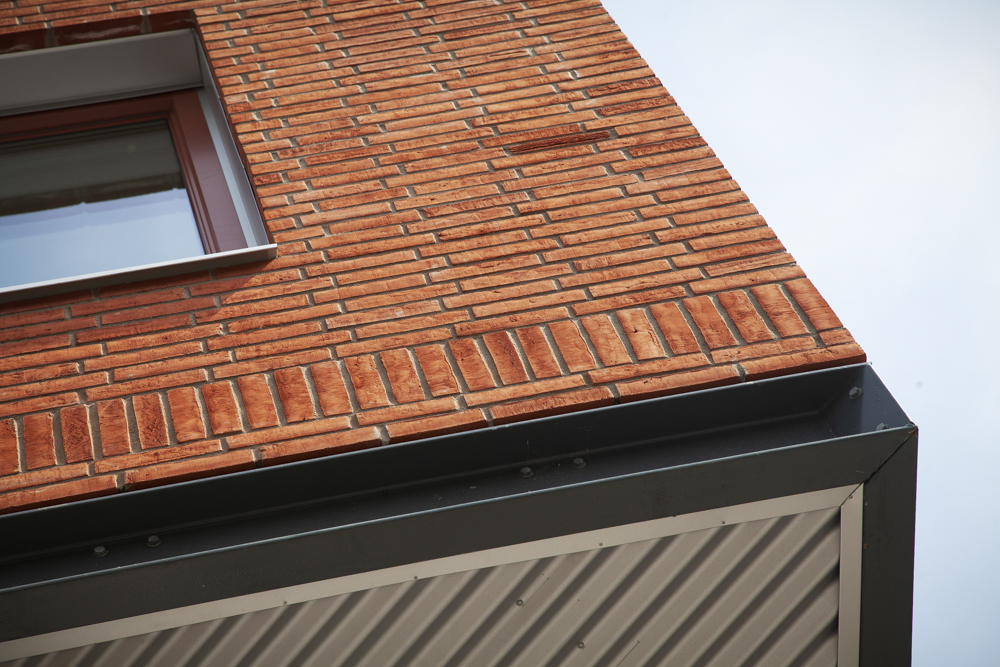 The centre of the project is a courtyard surrounded by five townhouses. Each house has a unique bond and technique, but all masonry is based on RT 154 and RT 554. The use of identical bricks provides a common thread across the five townhouses. As such, they are alike but unique.
