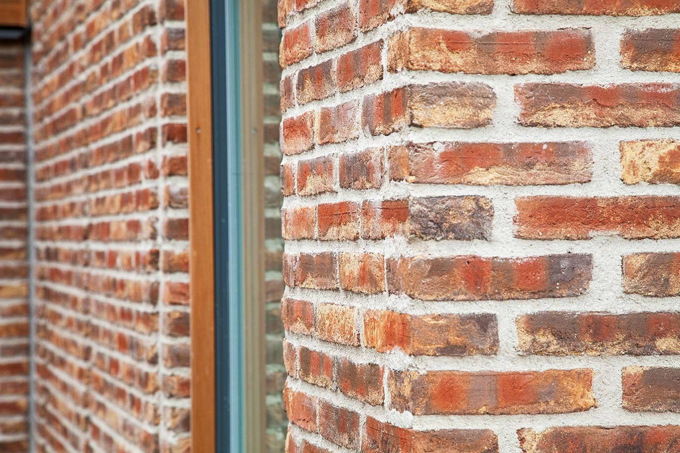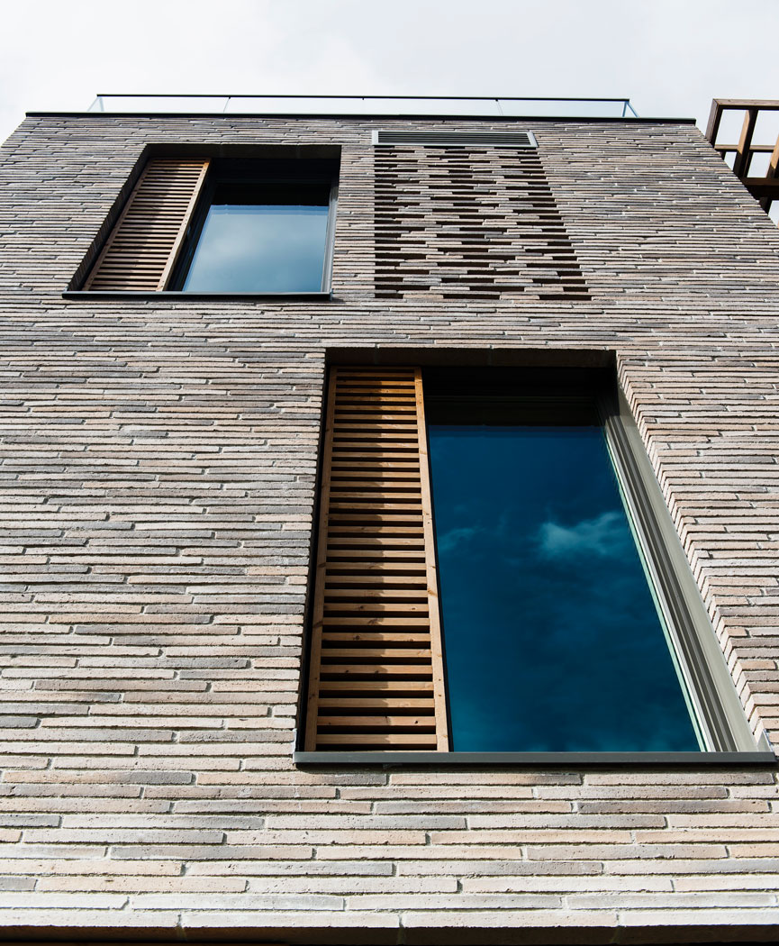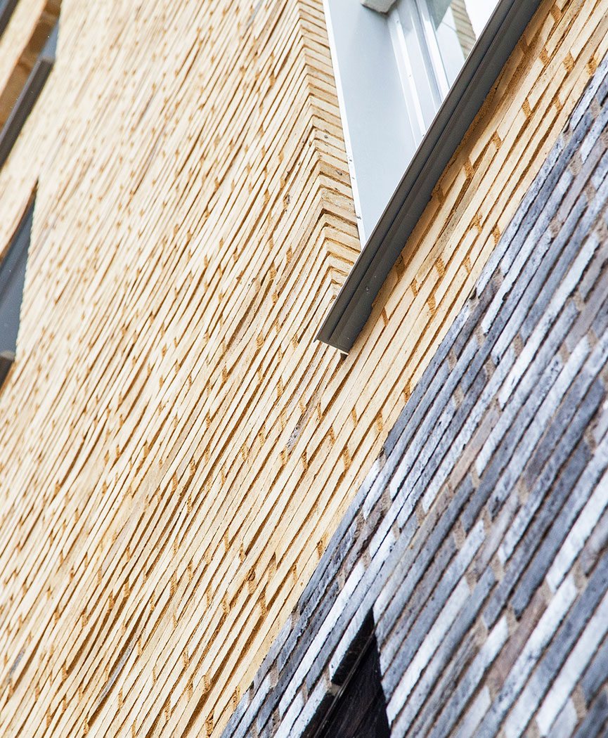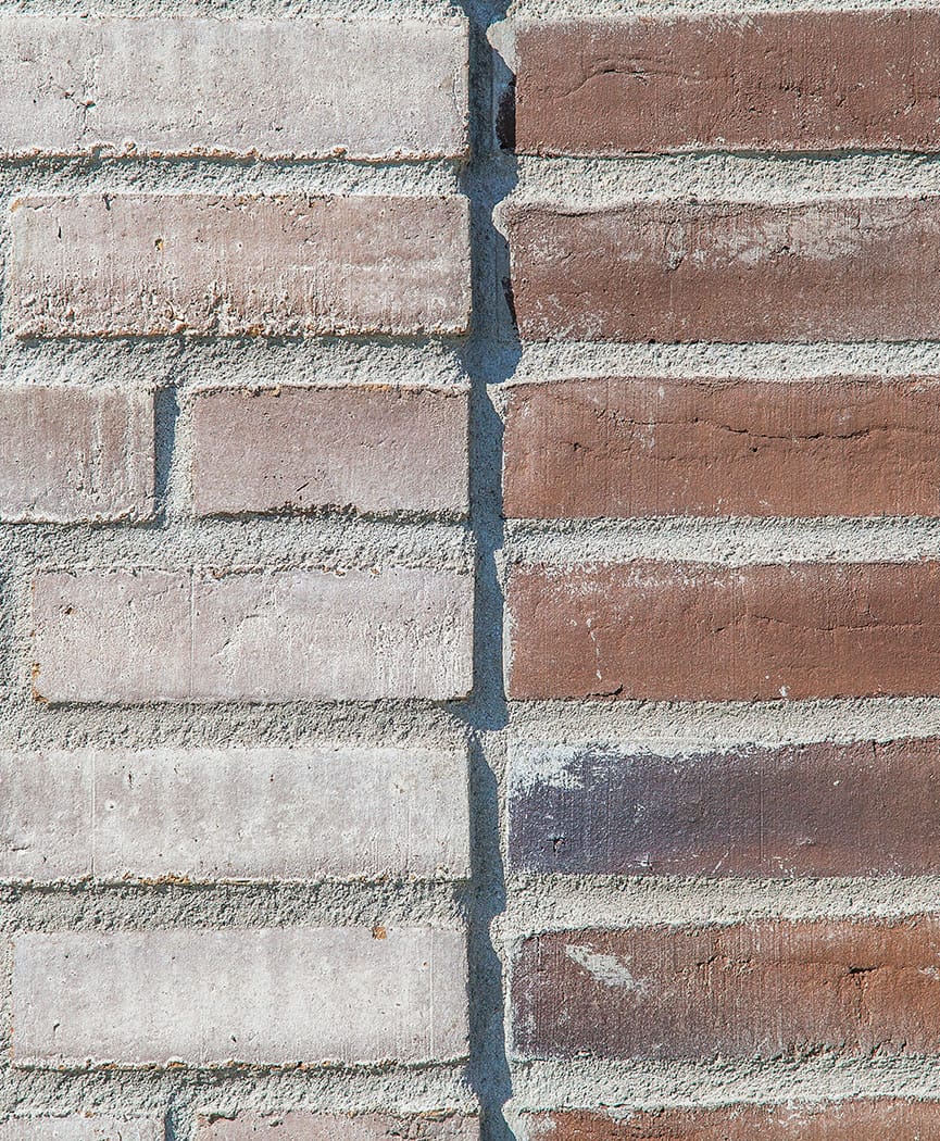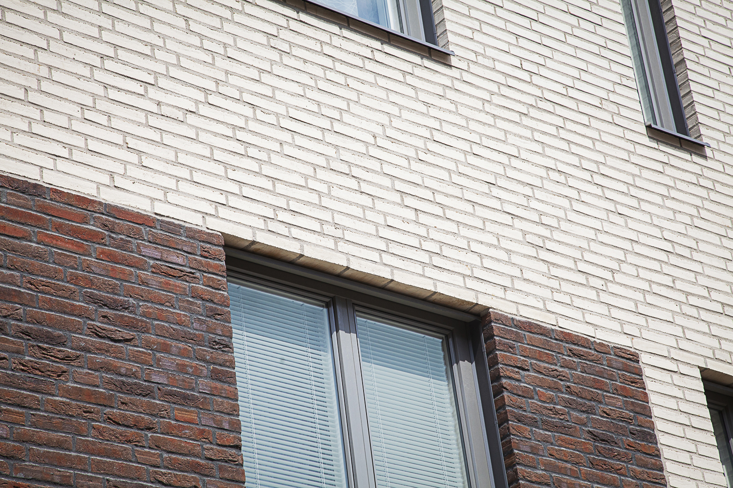 The centre of the project is a courtyard surrounded by five townhouses. Each house has a unique bond and technique, but all masonry is based on RT 154 and RT 554. The use of identical bricks provides a common thread across the five townhouses. As such, they are alike but unique.