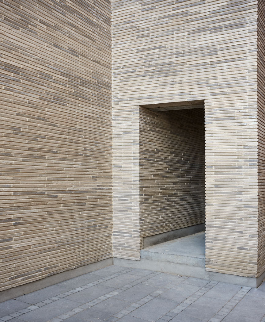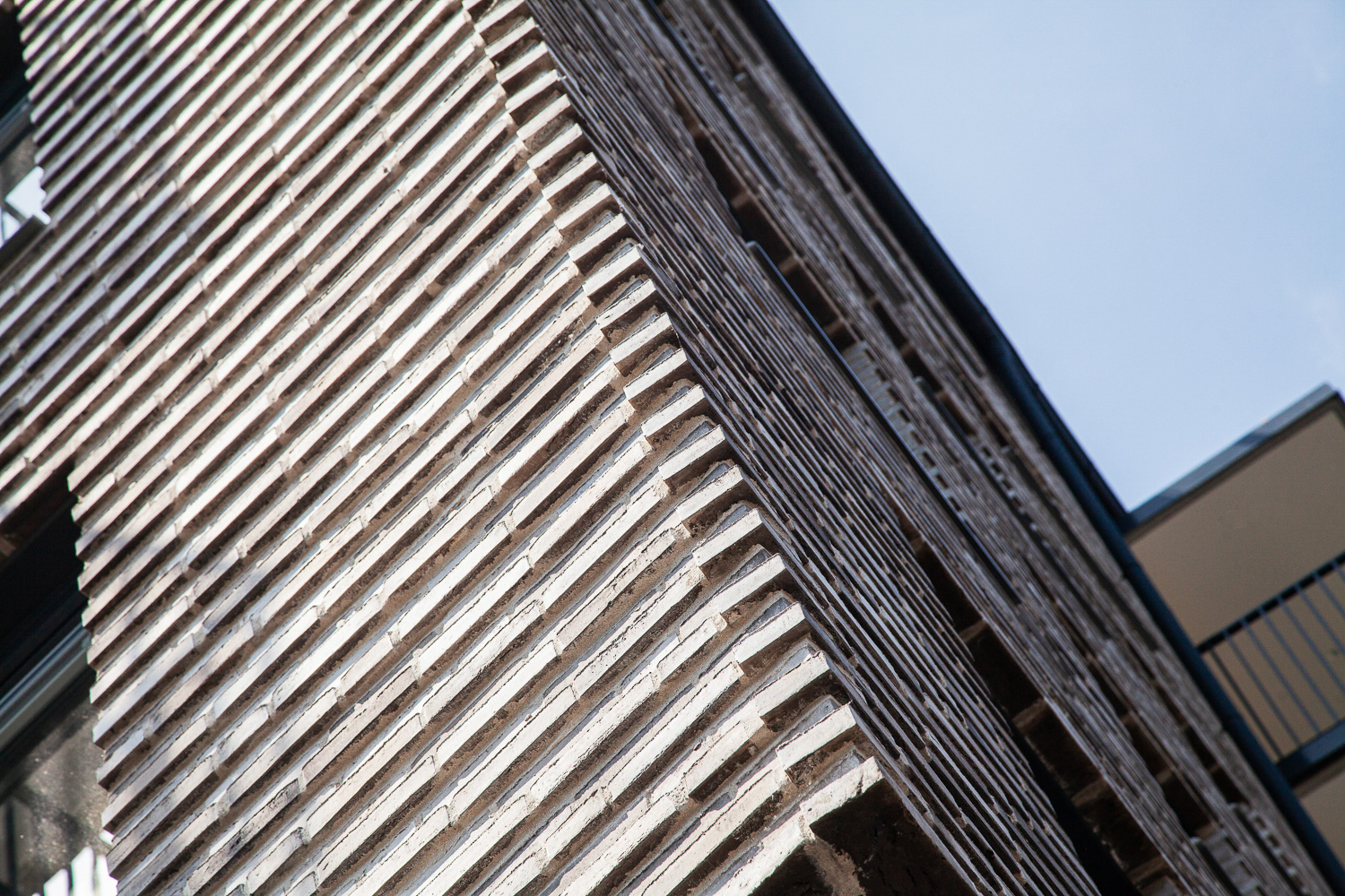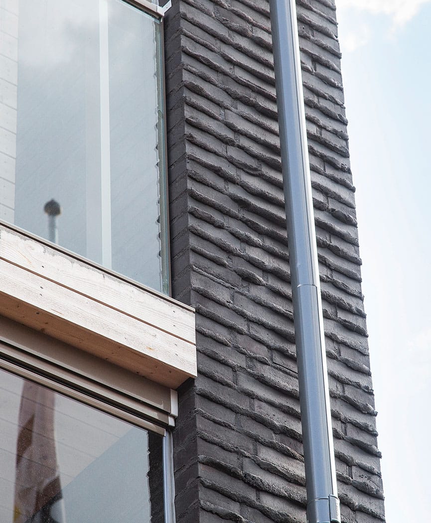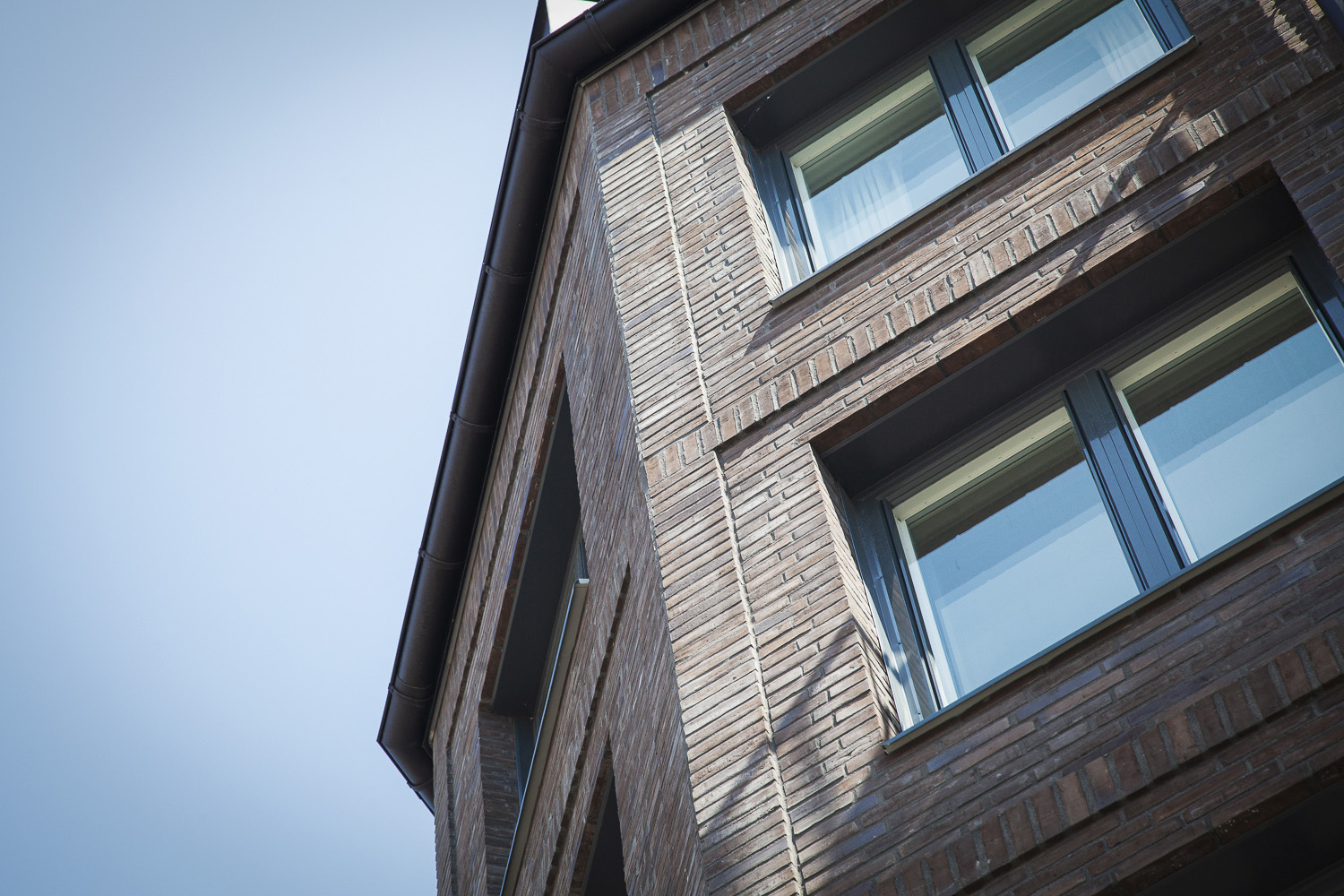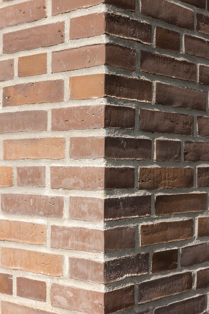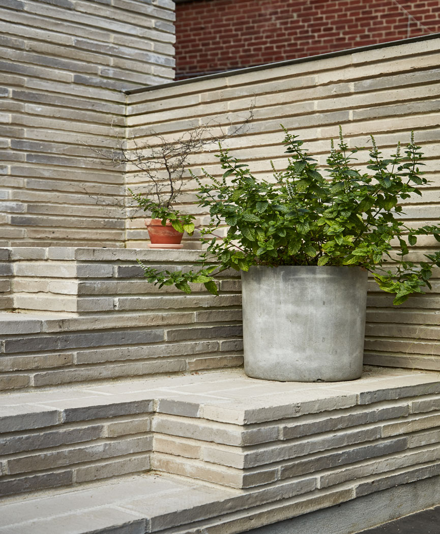 The centre of the project is a courtyard surrounded by five townhouses. Each house has a unique bond and technique, but all masonry is based on RT 154 and RT 554. The use of identical bricks provides a common thread across the five townhouses. As such, they are alike but unique.