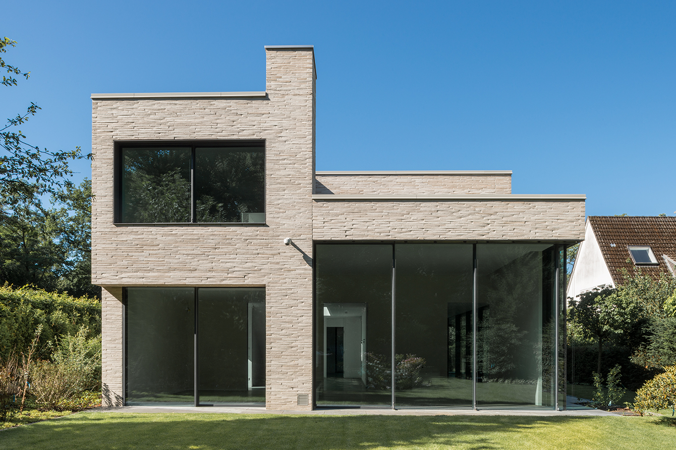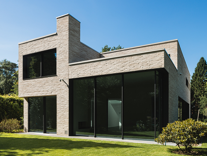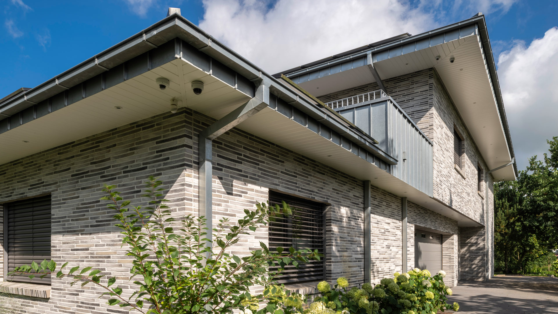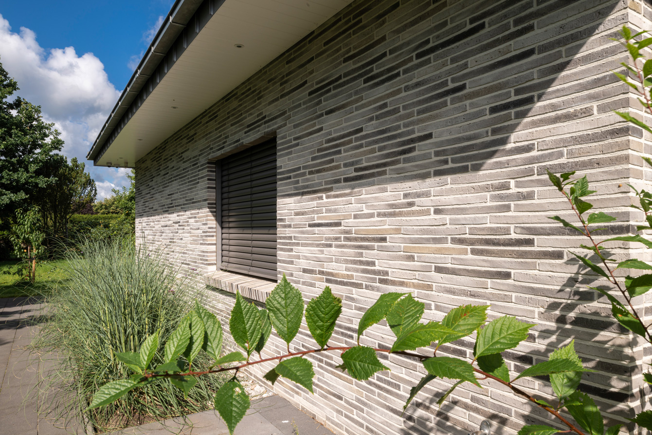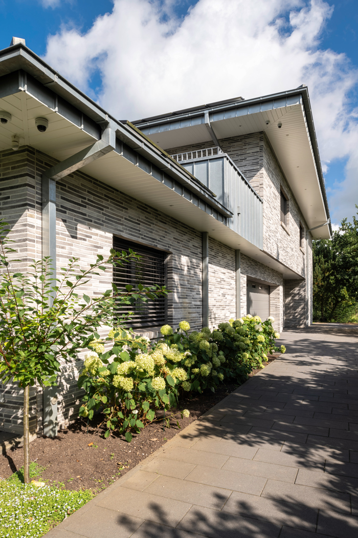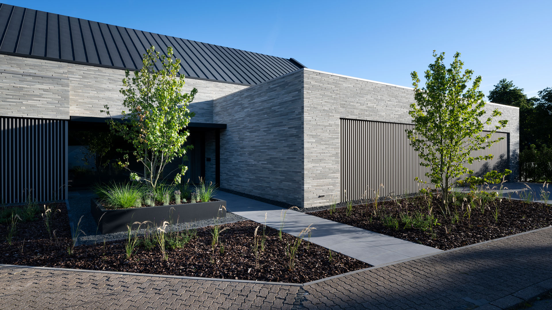 Med Villa K. har bygherrerne i Saarlouis, Tyskland, opfyldt en ægte drøm. Den omhyggeligt designede bygning udstråler tidløs elegance, ikke mindst på grund af det minimalistiske udseende. Langformatstenen ULTIMA RT153 blev i dette projekt også brugt som beklædning på en køkkenvæg indendørs.
