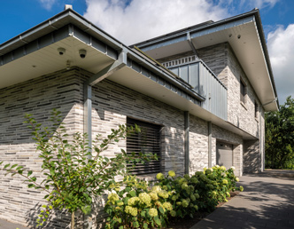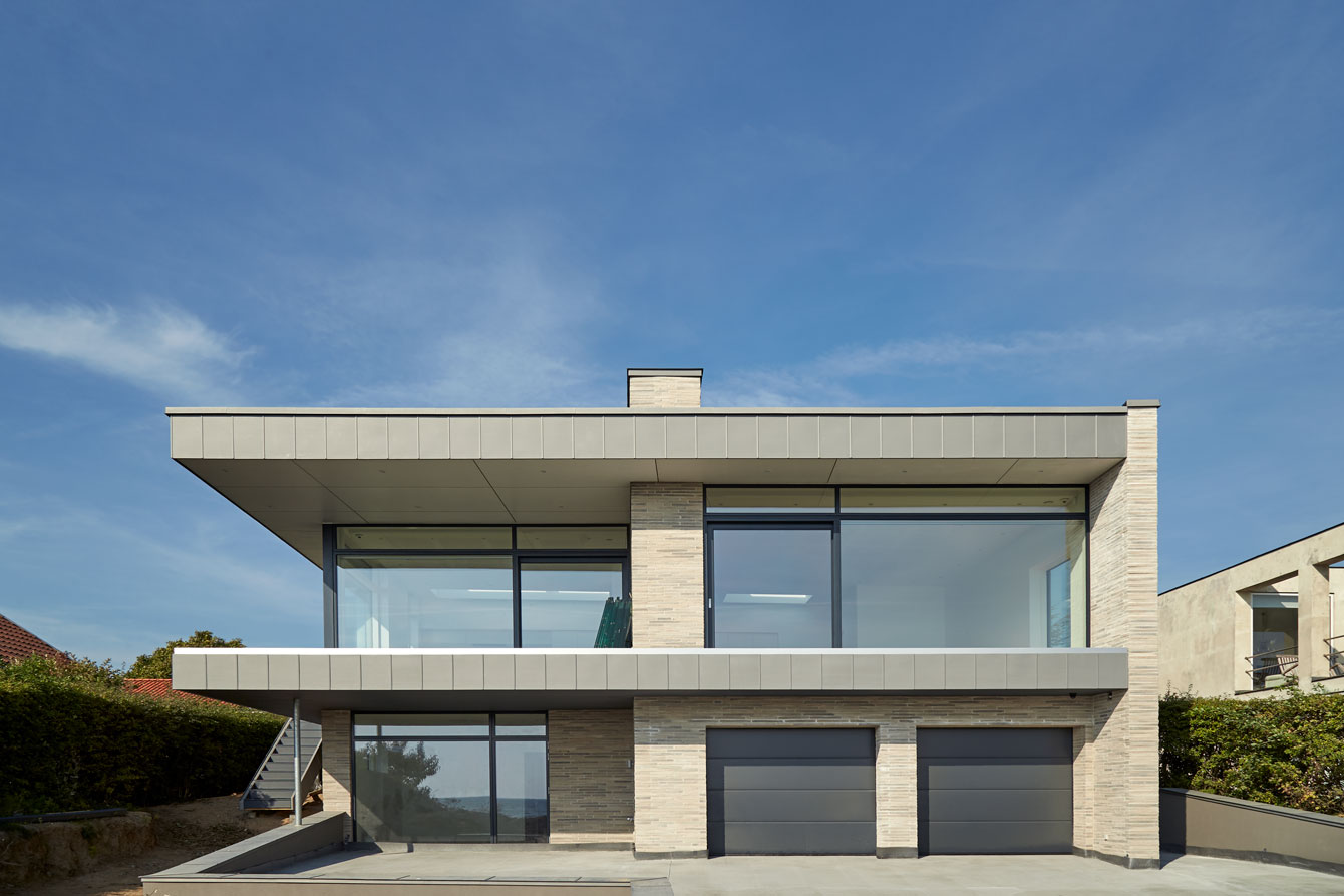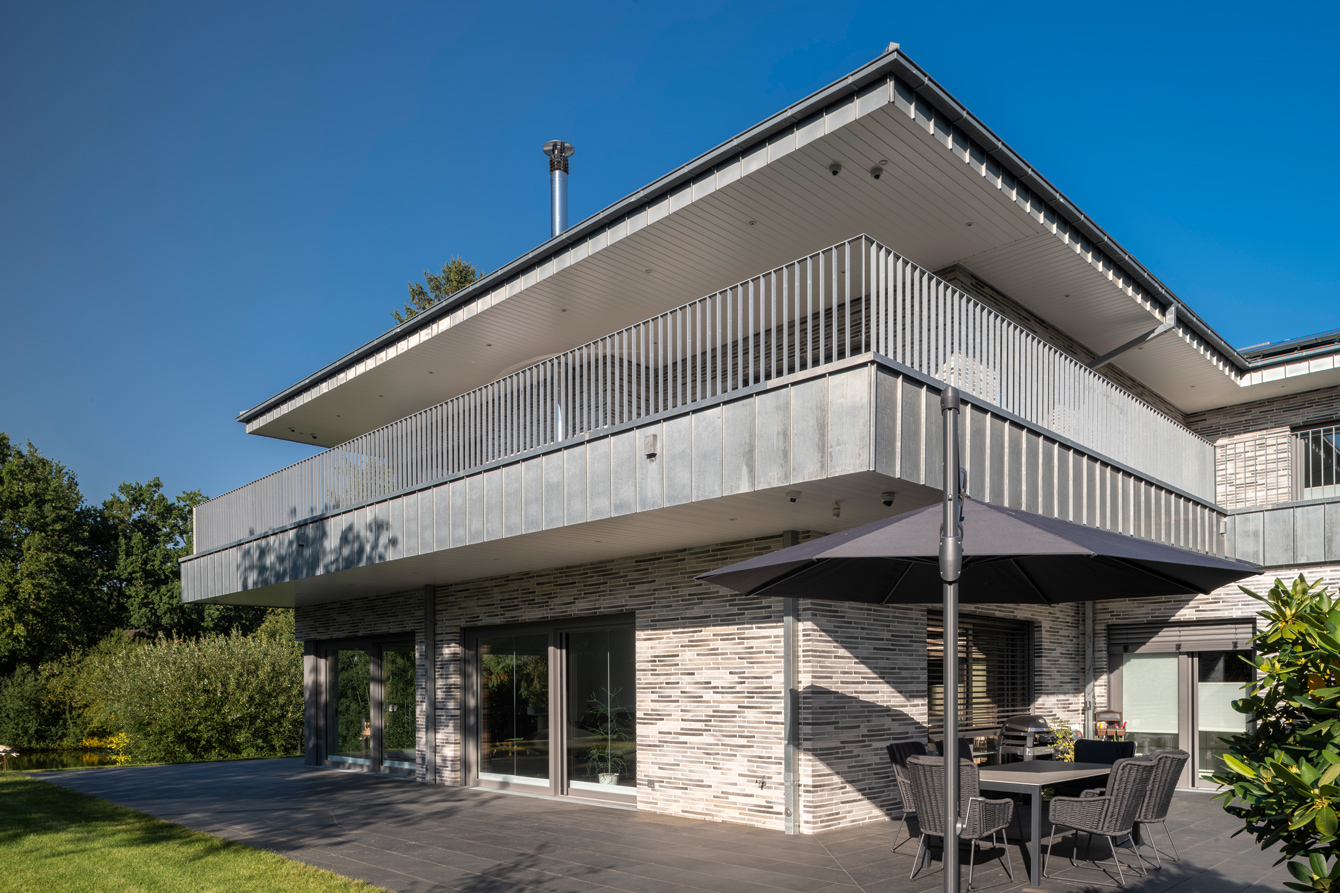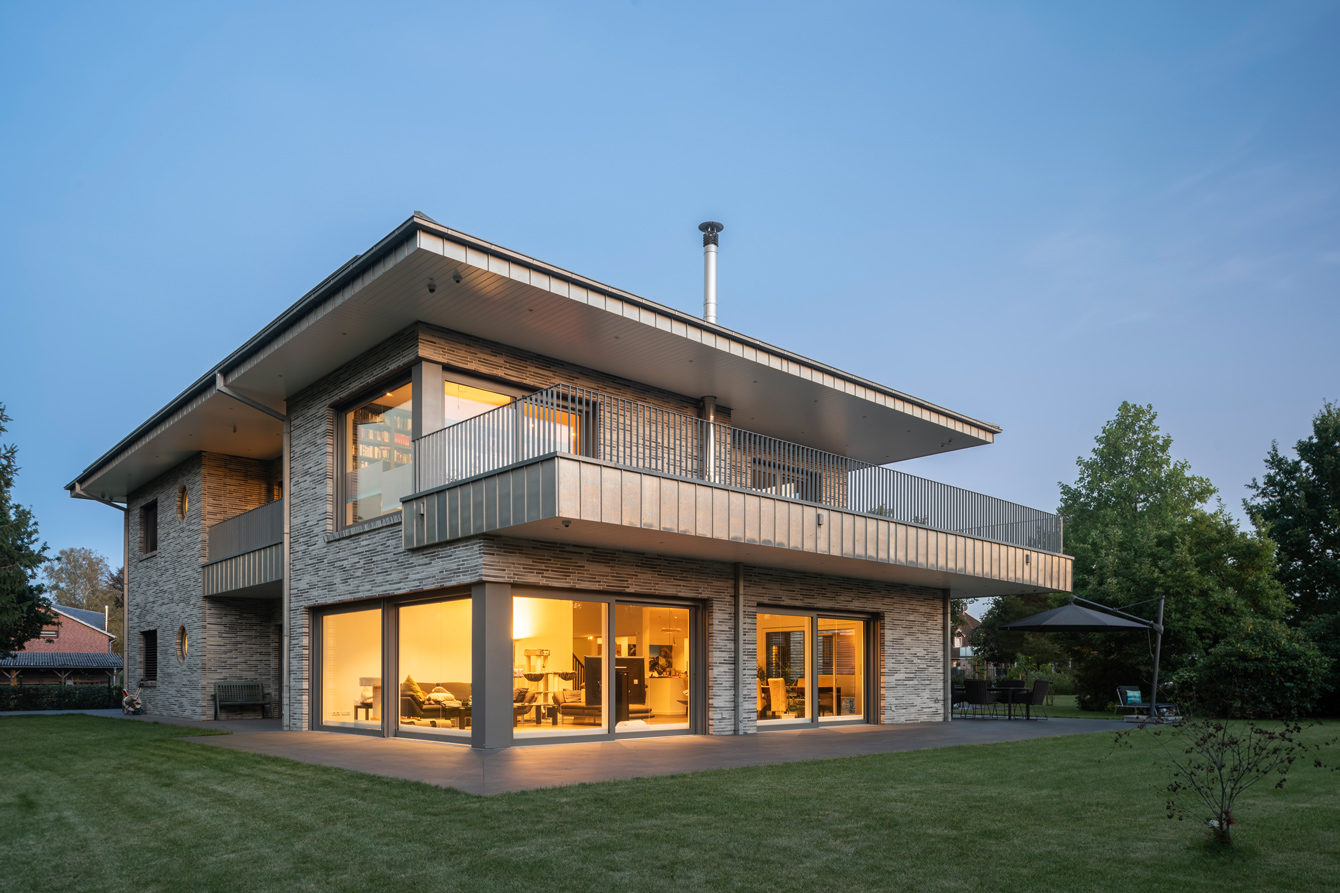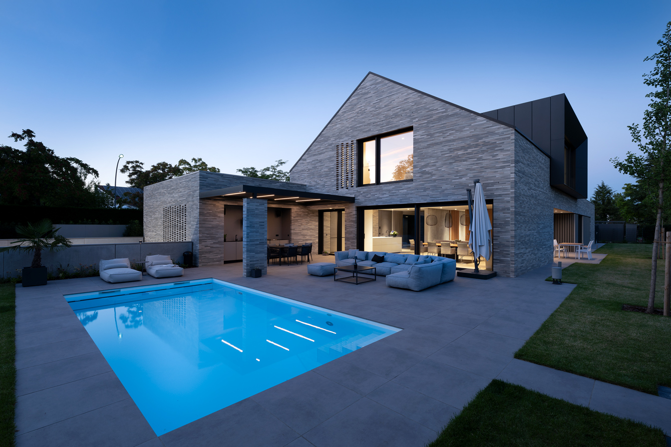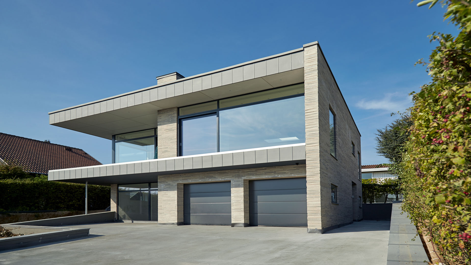 Med Villa K. har bygherrerne i Saarlouis, Tyskland, opfyldt en ægte drøm. Den omhyggeligt designede bygning udstråler tidløs elegance, ikke mindst på grund af det minimalistiske udseende. Langformatstenen ULTIMA RT153 blev i dette projekt også brugt som beklædning på en køkkenvæg indendørs.