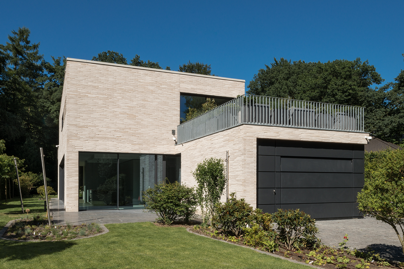 A combination of vertical and horizontal bonds offer a special welcome to the villa. The extra-long Ultima bricks do not only lend the house character, they also intensify the horizon behind the house.
