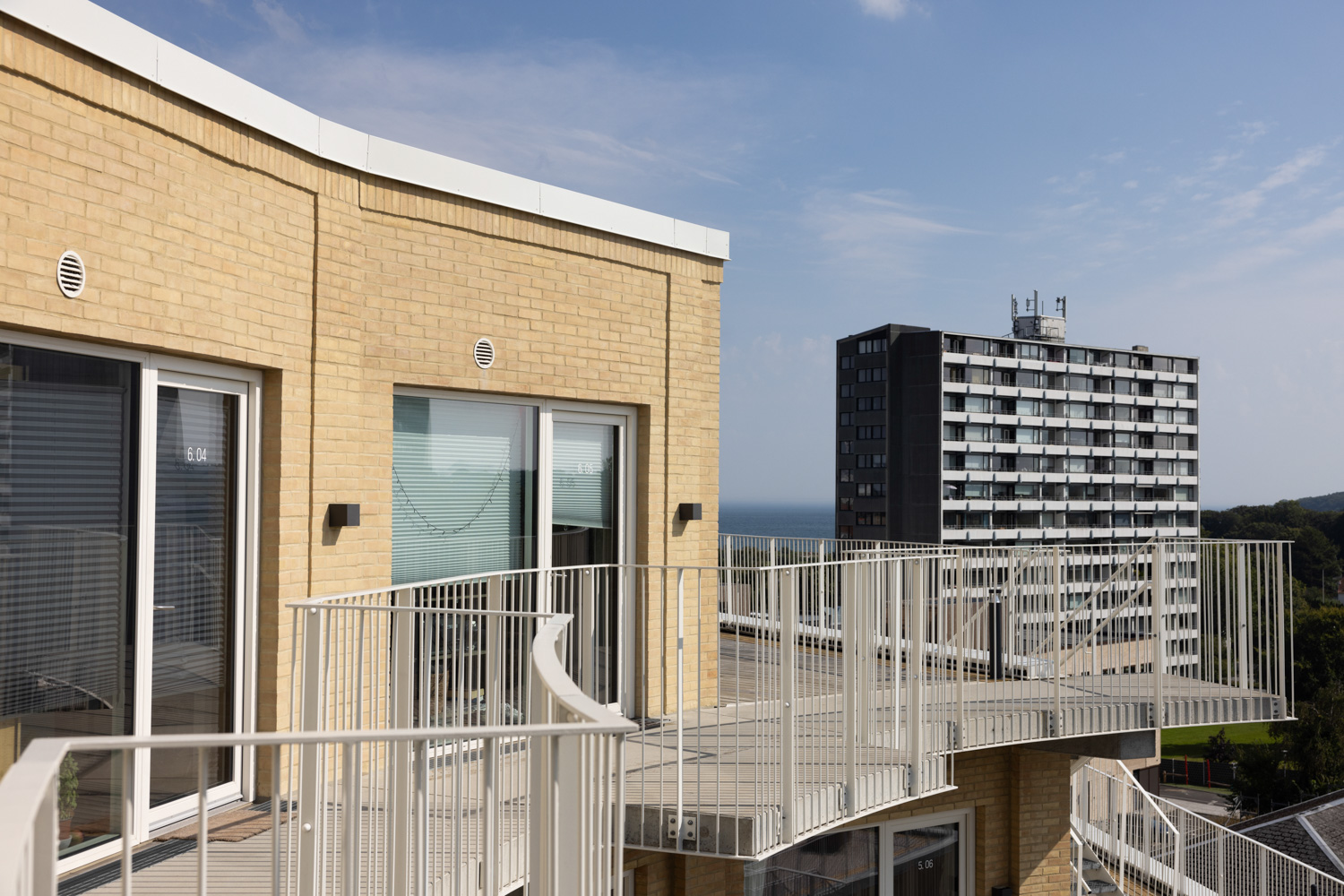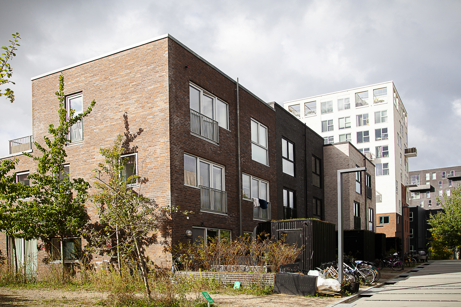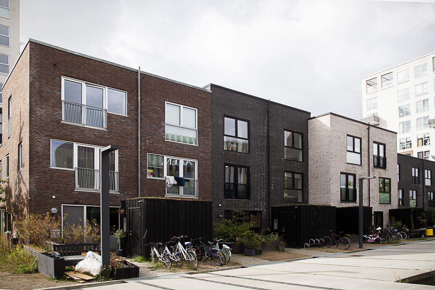 The project on the old skating ridge in Aalborg is located on the border between the old residential quarter with masonry villas from the 1920s along Bernstorffsgade and the Øgade district's 4-5-story long-houses from 1940-50s. The houses facing Bernstorffsgade are laid out as separate villas with their own carport, roof terrace and outdoor living spaces. In selected locations, relief masonry, along with balconies and window sections provide a facade variety and a human scale.