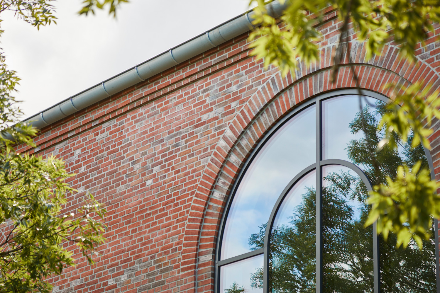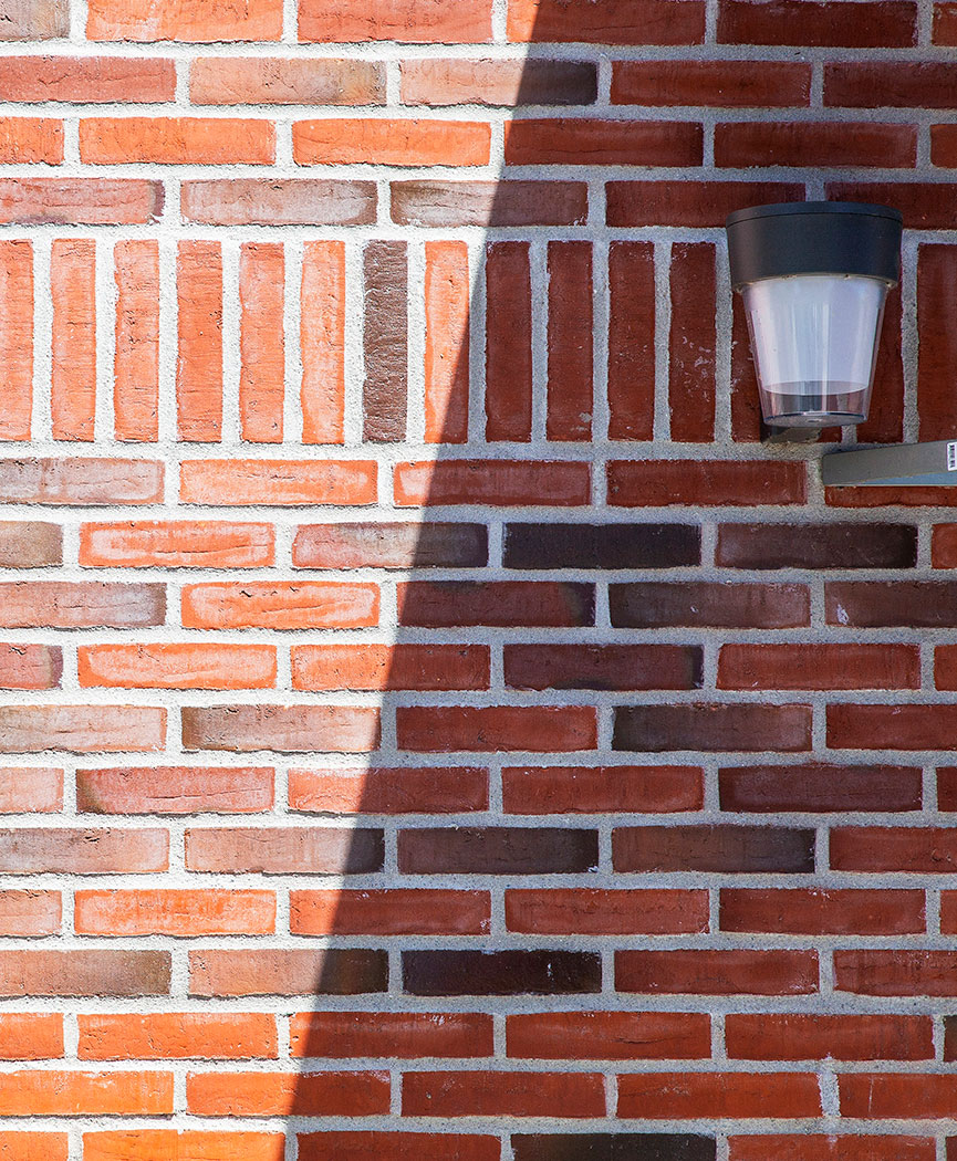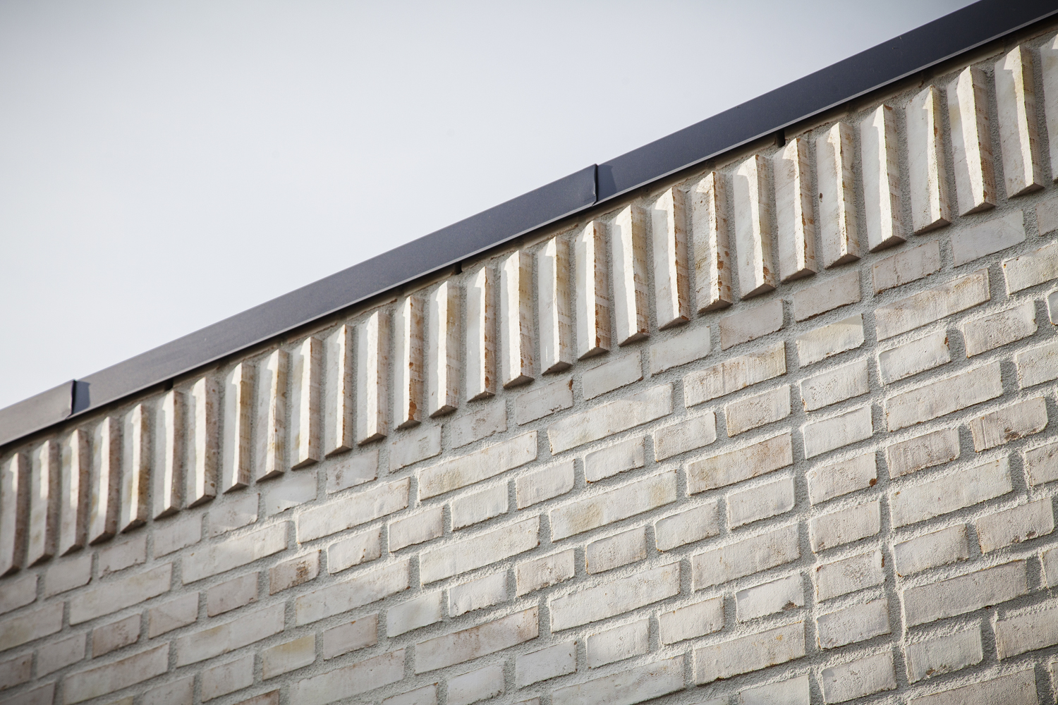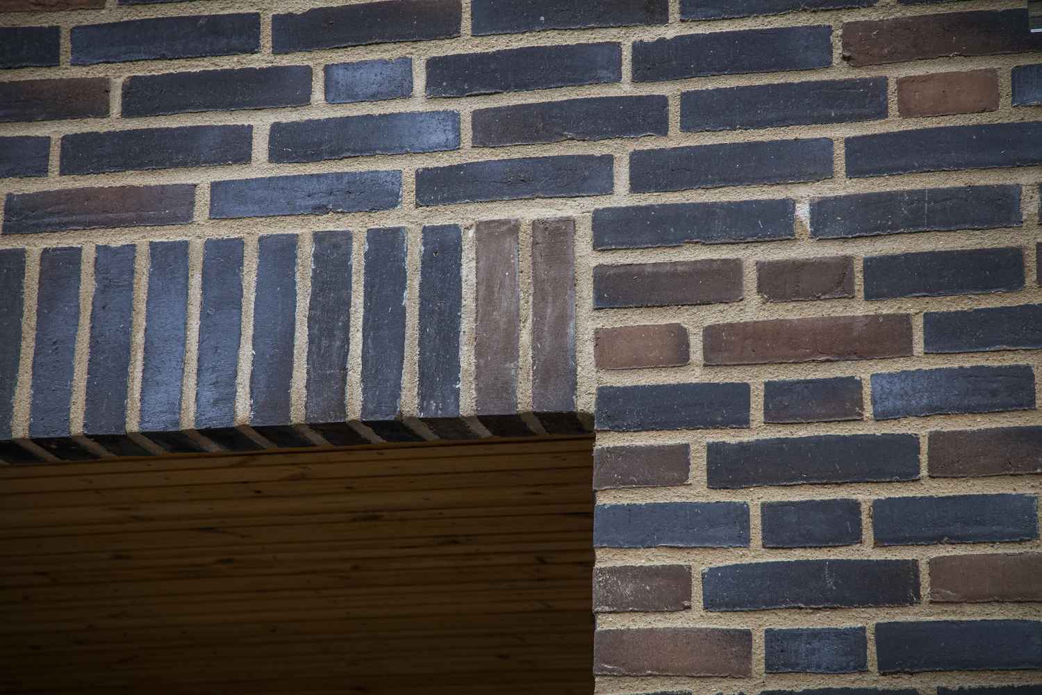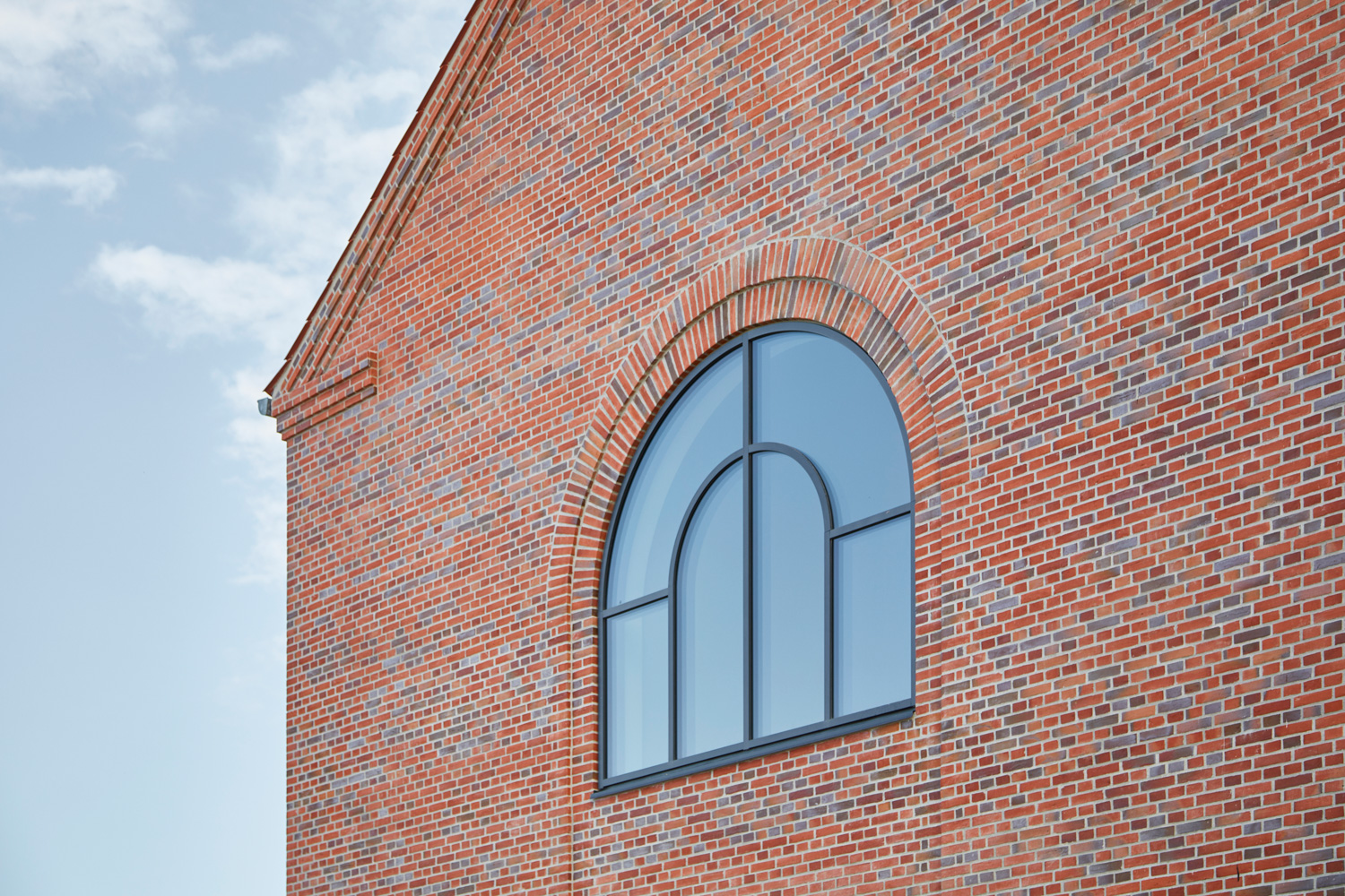 One of the ideas was that the rounded window sash would lead in trailing light along the facades. On the northern façade, the creepers are rounded on both sides, to maximize both morning and evening light. On the eastern façade, the slip is rounded to the south, so that the southern light is directed in, while to the north, the slip has a straight edge. Above each gate, we used the brick to create a brick pattern on the facade, different patterns for each gate. This resulted in each gate having its own expression and identity.