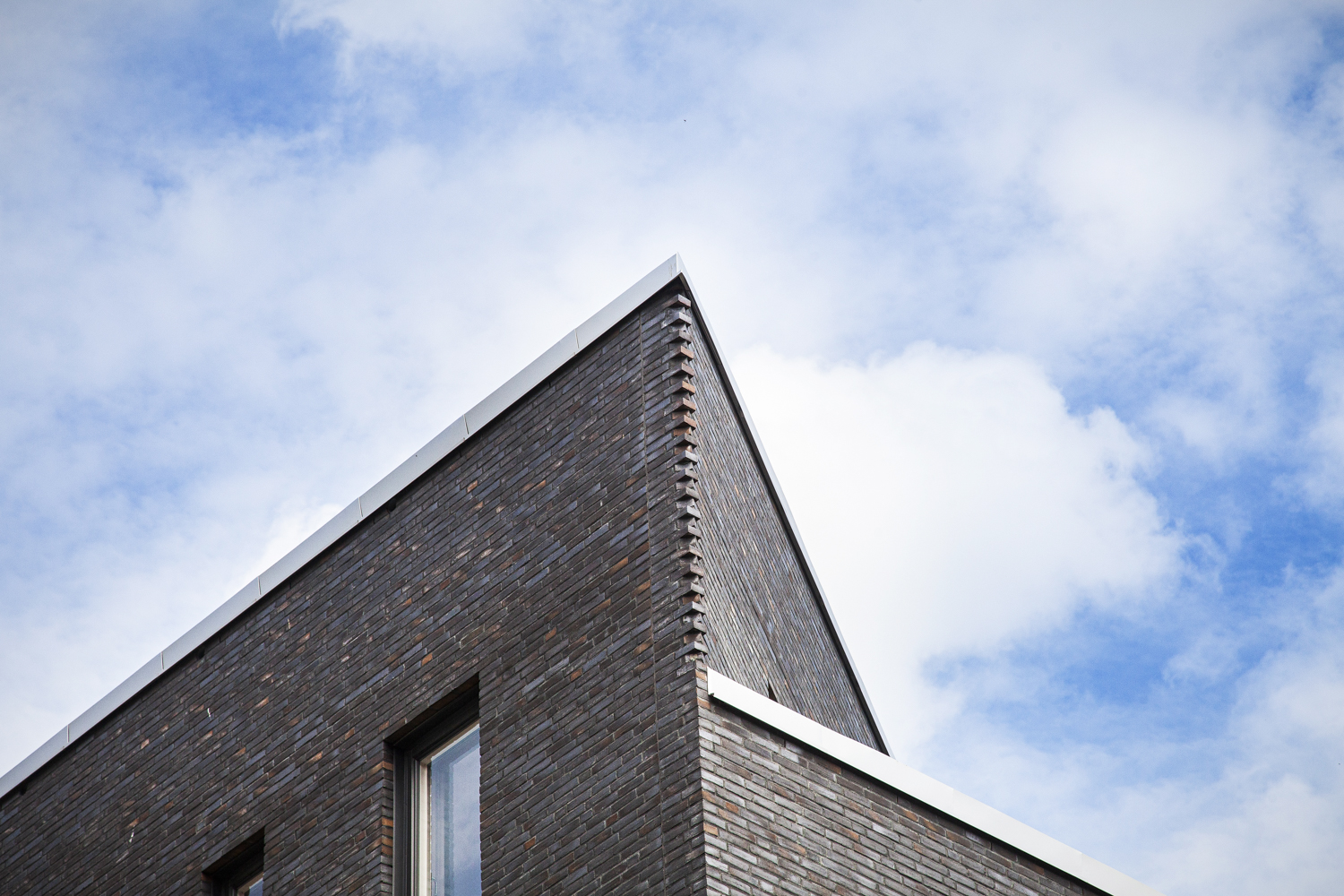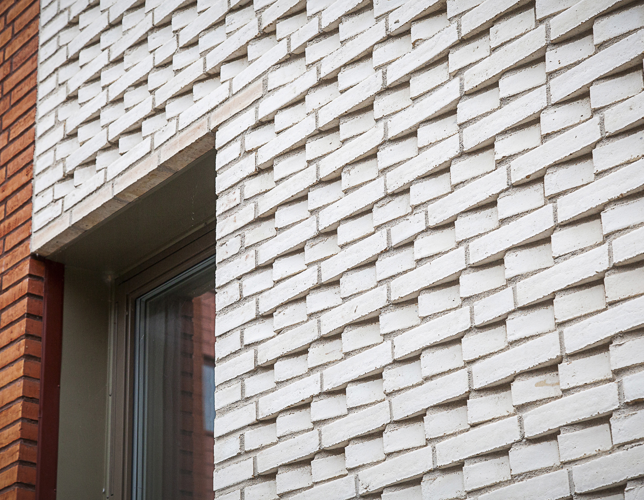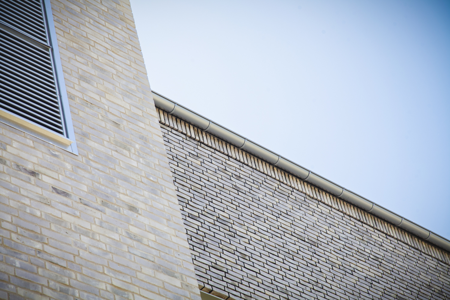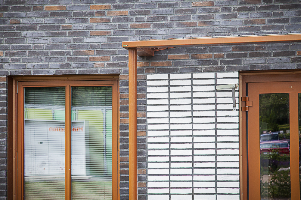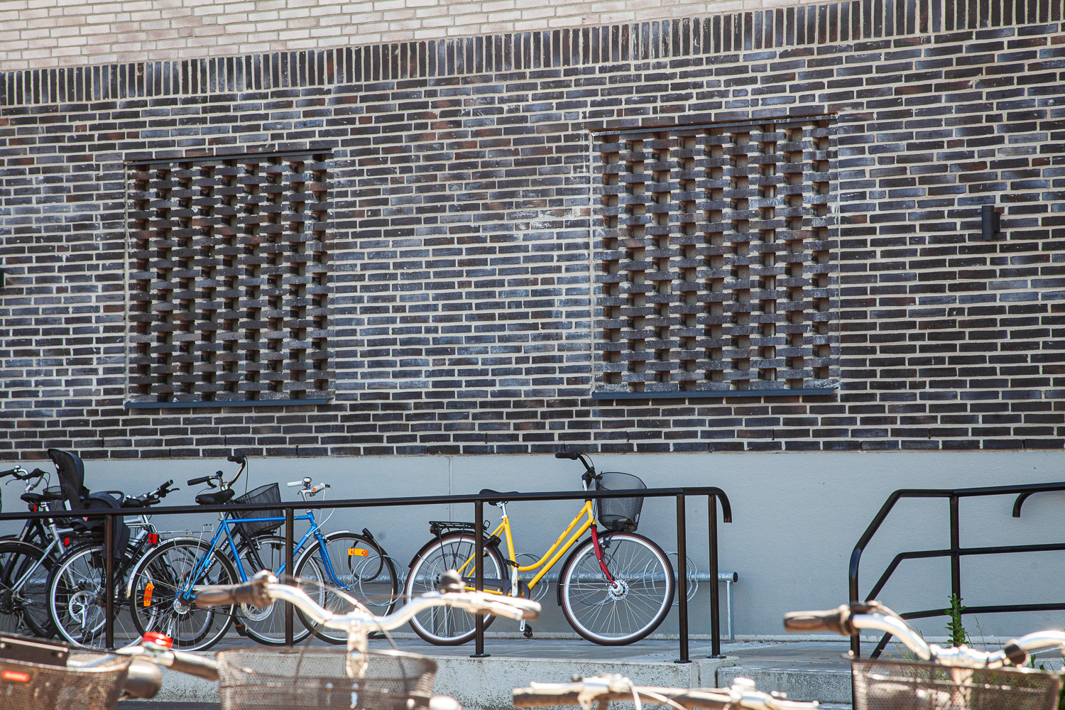 One of the ideas was that the rounded window sash would lead in trailing light along the facades. On the northern façade, the creepers are rounded on both sides, to maximize both morning and evening light. On the eastern façade, the slip is rounded to the south, so that the southern light is directed in, while to the north, the slip has a straight edge. Above each gate, we used the brick to create a brick pattern on the facade, different patterns for each gate. This resulted in each gate having its own expression and identity.