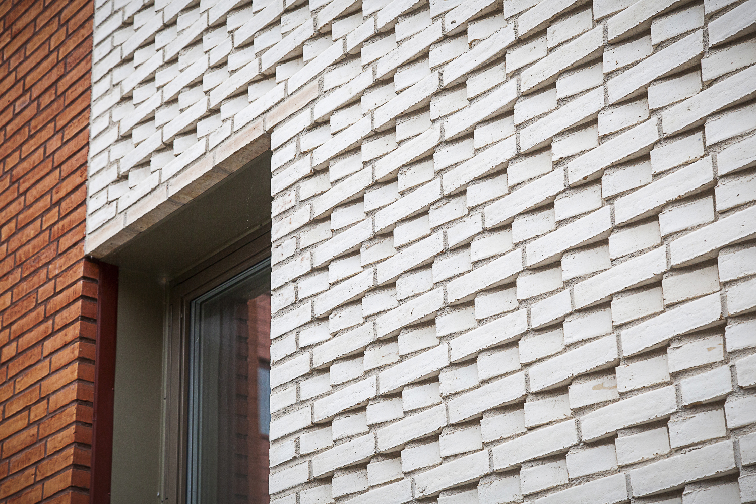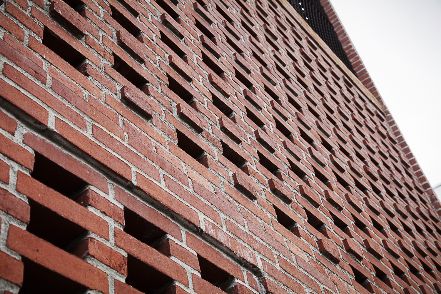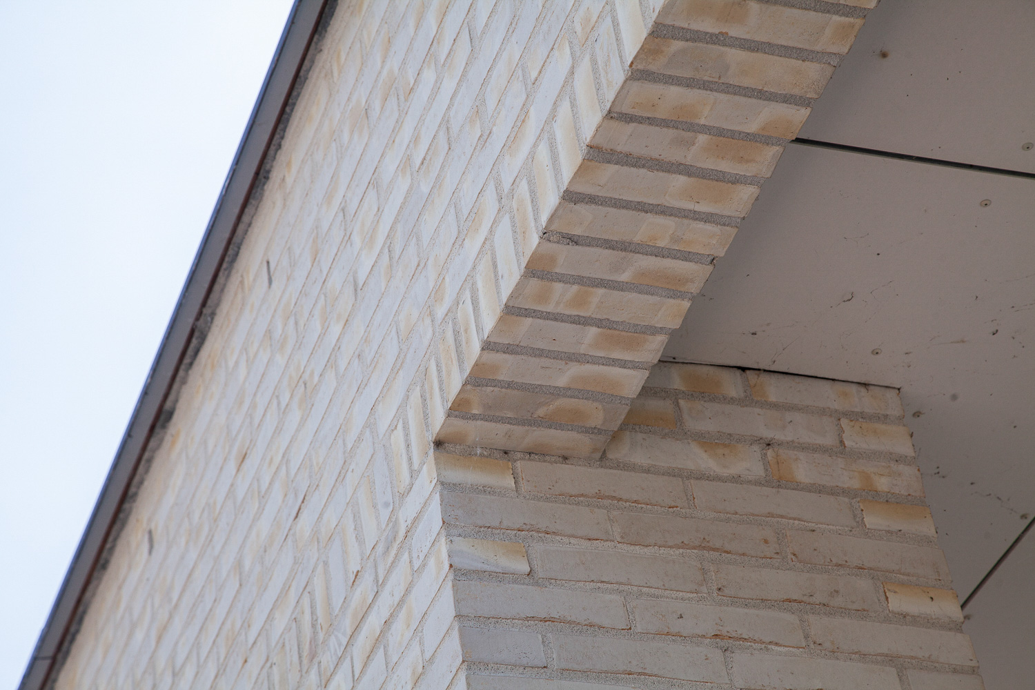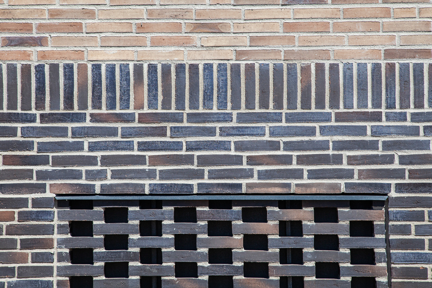 One of the ideas was that the rounded window sash would lead in trailing light along the facades. On the northern façade, the creepers are rounded on both sides, to maximize both morning and evening light. On the eastern façade, the slip is rounded to the south, so that the southern light is directed in, while to the north, the slip has a straight edge. Above each gate, we used the brick to create a brick pattern on the facade, different patterns for each gate. This resulted in each gate having its own expression and identity.