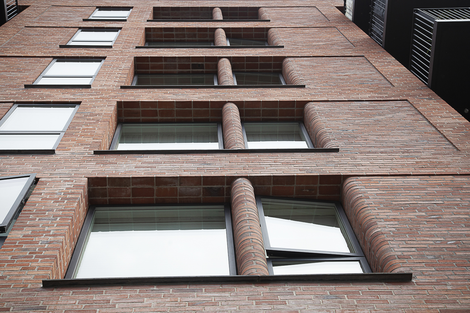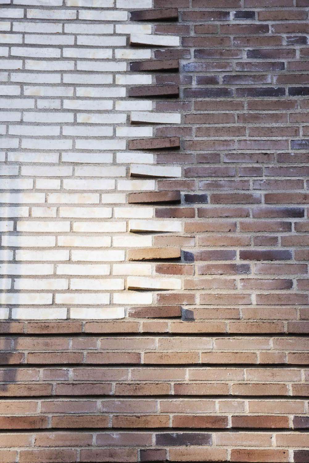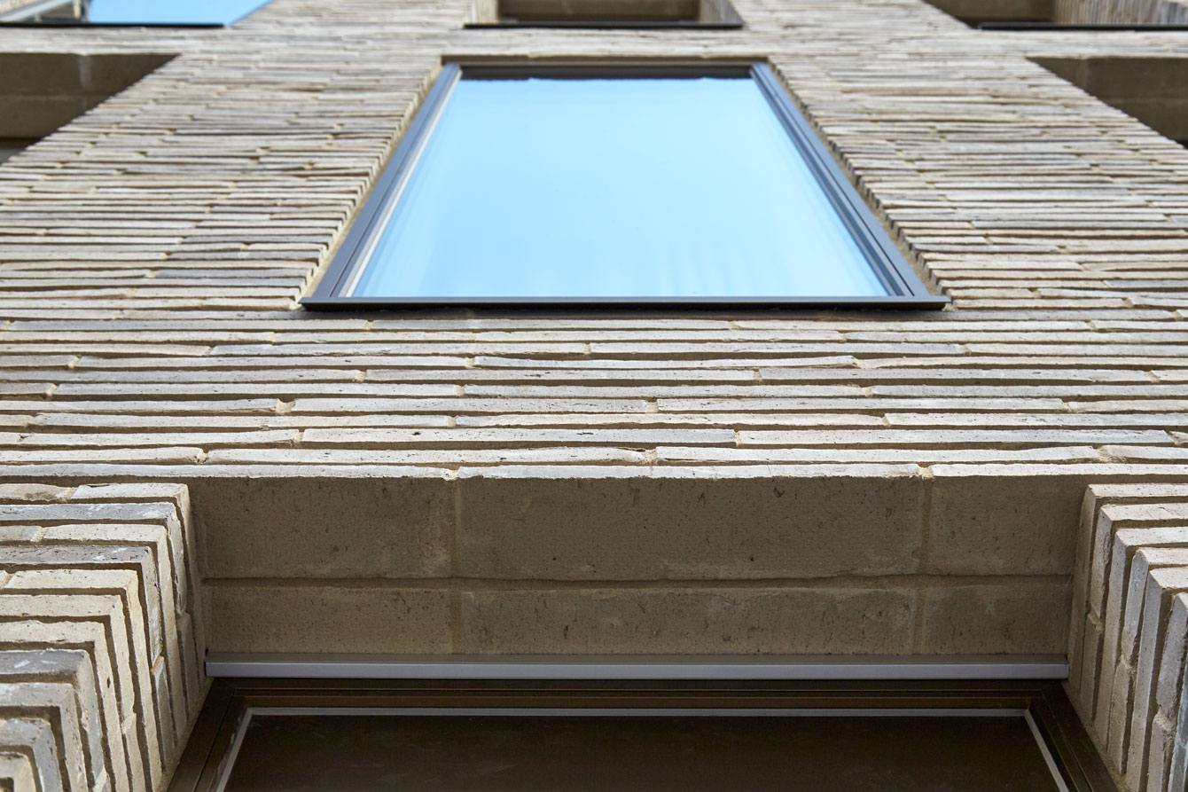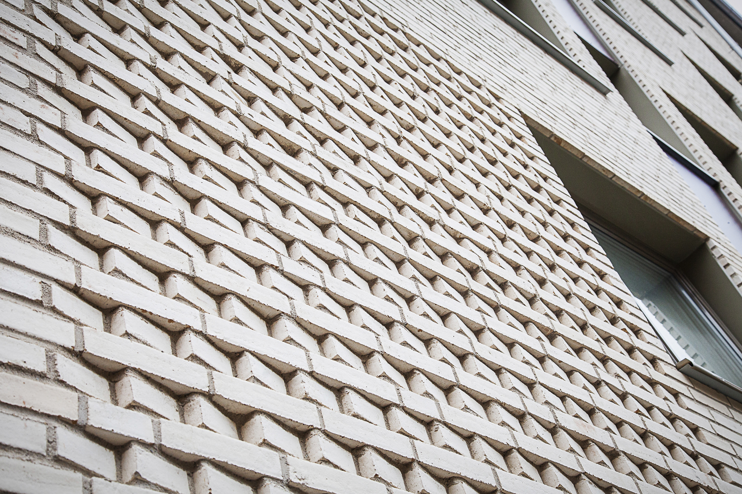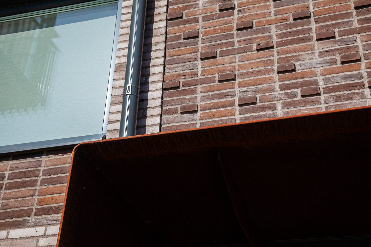 One of the ideas was that the rounded window sash would lead in trailing light along the facades. On the northern façade, the creepers are rounded on both sides, to maximize both morning and evening light. On the eastern façade, the slip is rounded to the south, so that the southern light is directed in, while to the north, the slip has a straight edge. Above each gate, we used the brick to create a brick pattern on the facade, different patterns for each gate. This resulted in each gate having its own expression and identity.