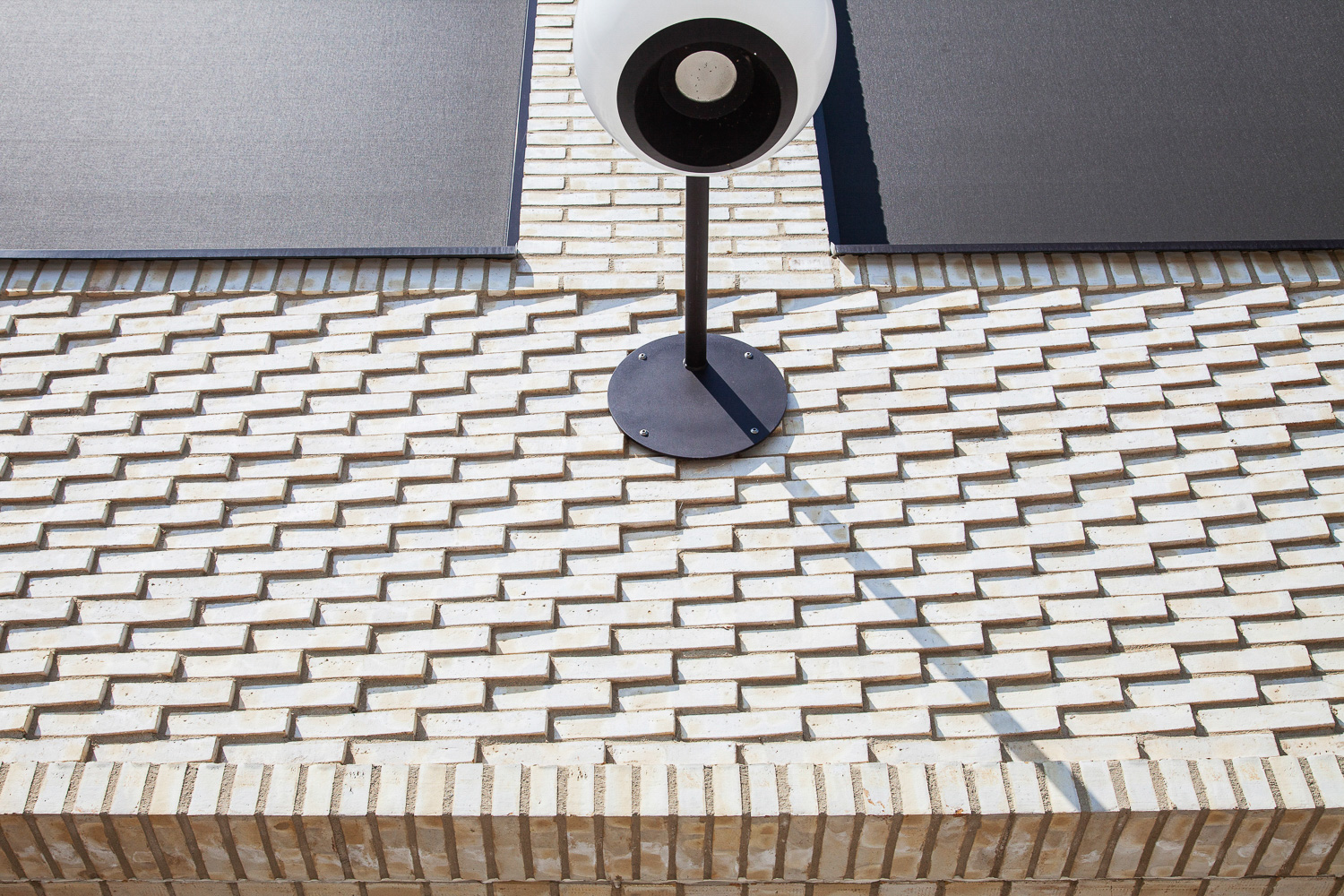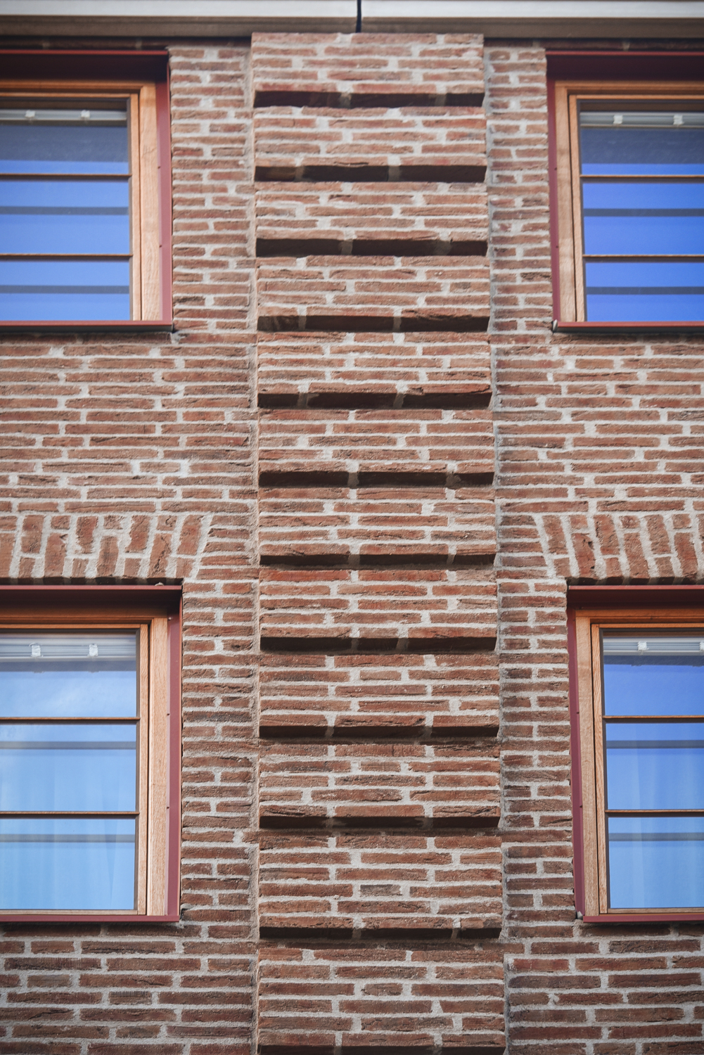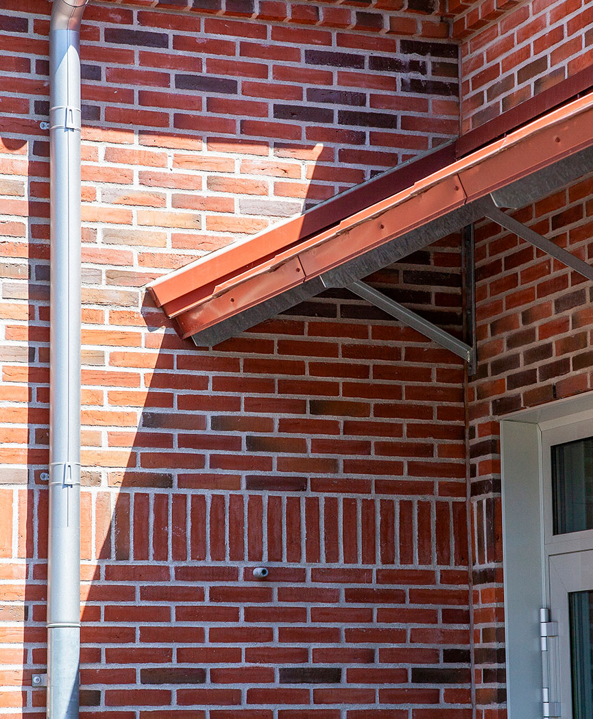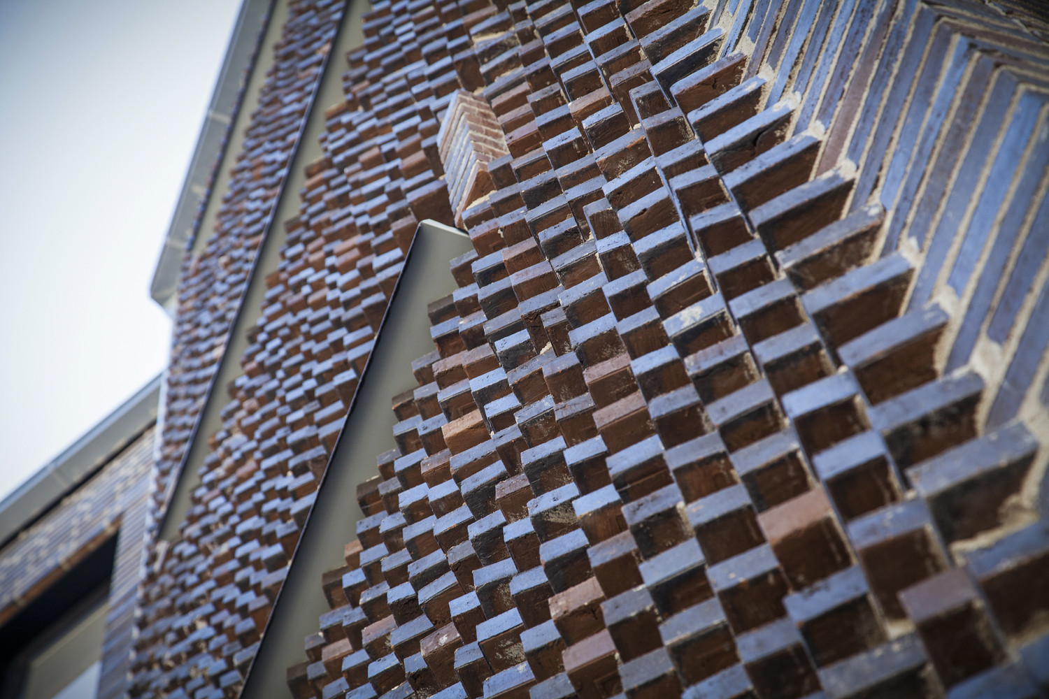 One of the ideas was that the rounded window sash would lead in trailing light along the facades. On the northern façade, the creepers are rounded on both sides, to maximize both morning and evening light. On the eastern façade, the slip is rounded to the south, so that the southern light is directed in, while to the north, the slip has a straight edge. Above each gate, we used the brick to create a brick pattern on the facade, different patterns for each gate. This resulted in each gate having its own expression and identity.