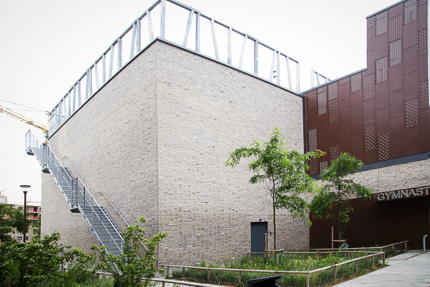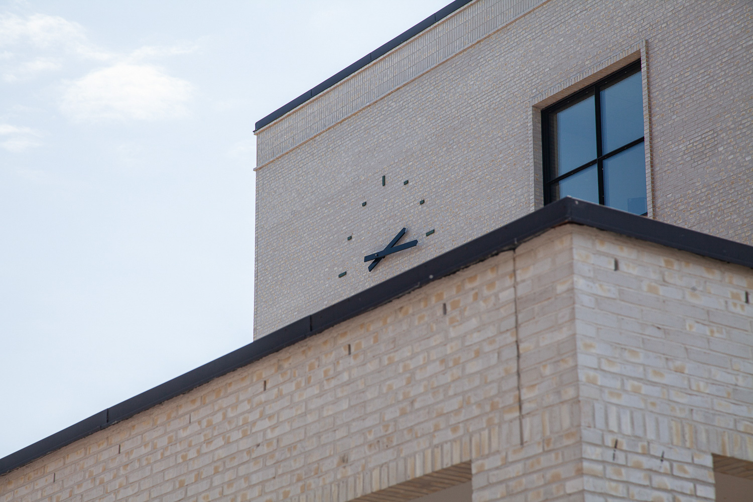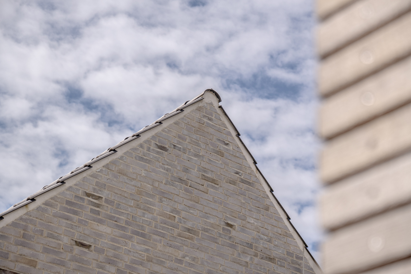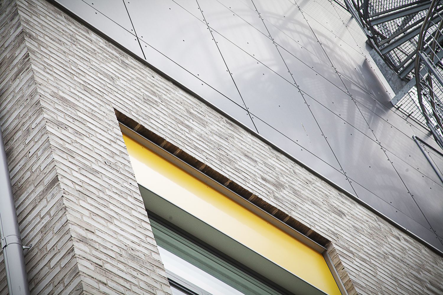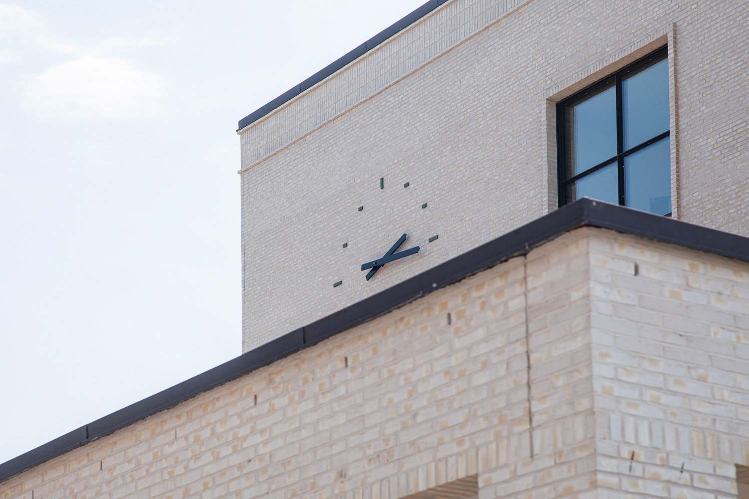 One of the ideas was that the rounded window sash would lead in trailing light along the facades. On the northern façade, the creepers are rounded on both sides, to maximize both morning and evening light. On the eastern façade, the slip is rounded to the south, so that the southern light is directed in, while to the north, the slip has a straight edge. Above each gate, we used the brick to create a brick pattern on the facade, different patterns for each gate. This resulted in each gate having its own expression and identity.