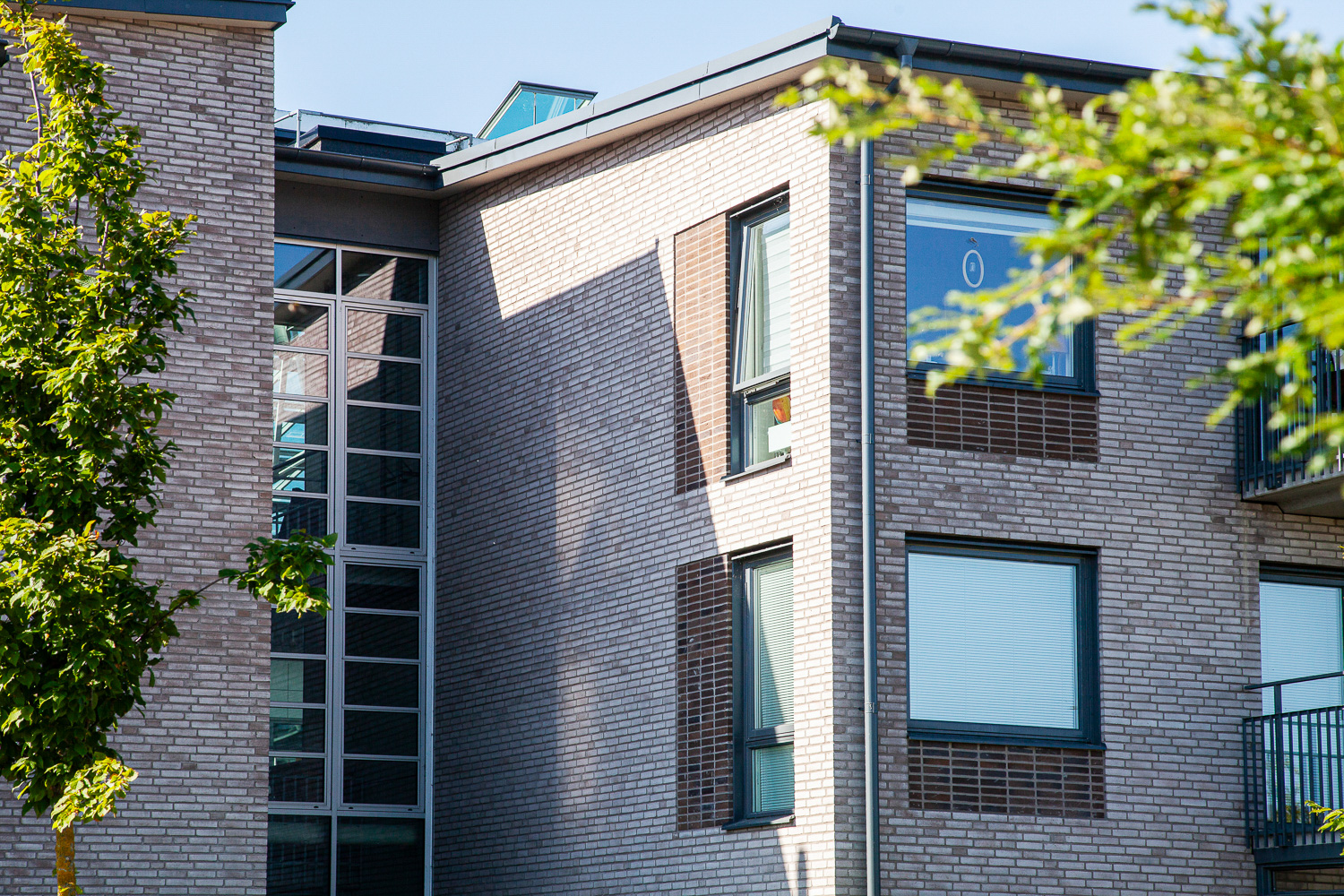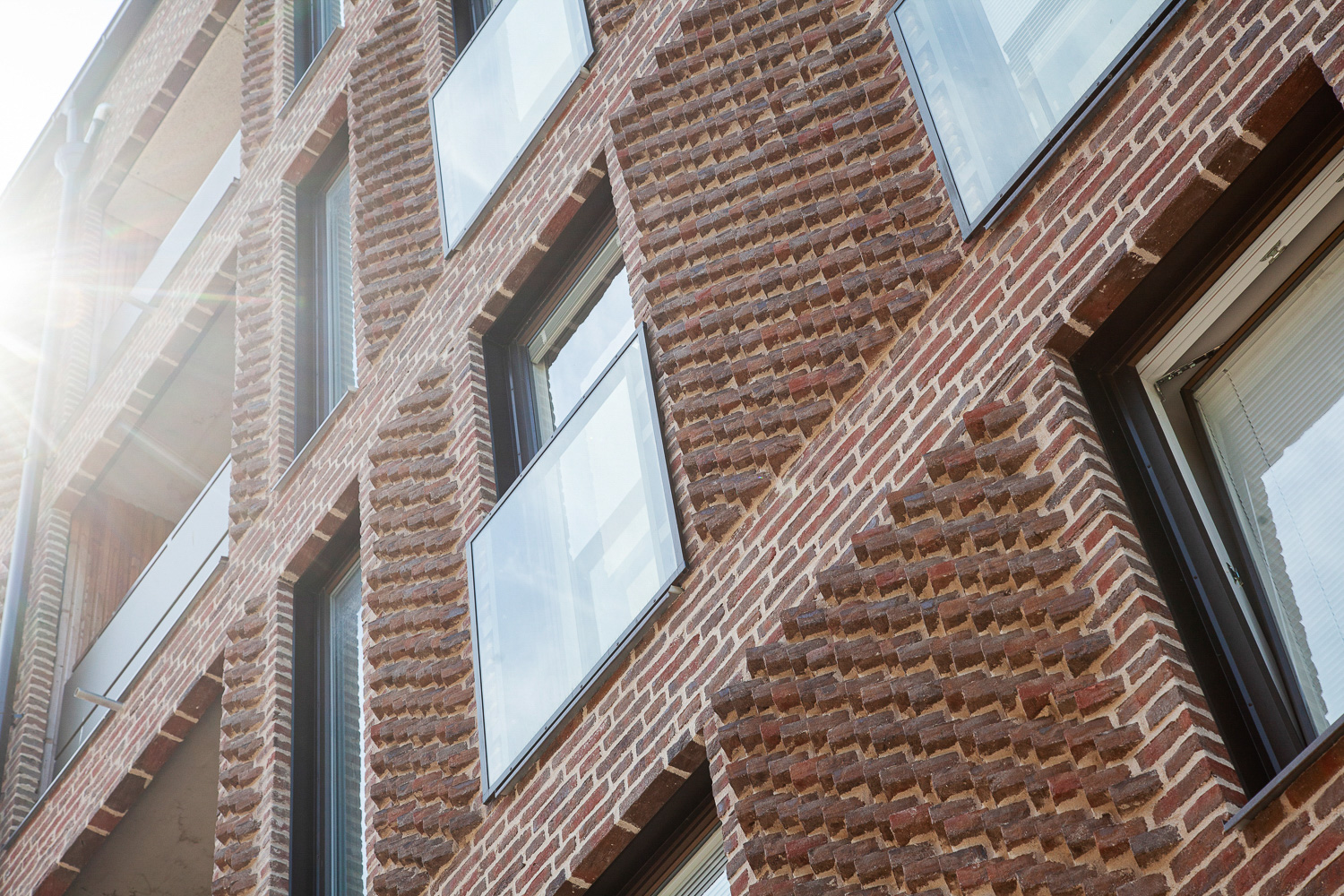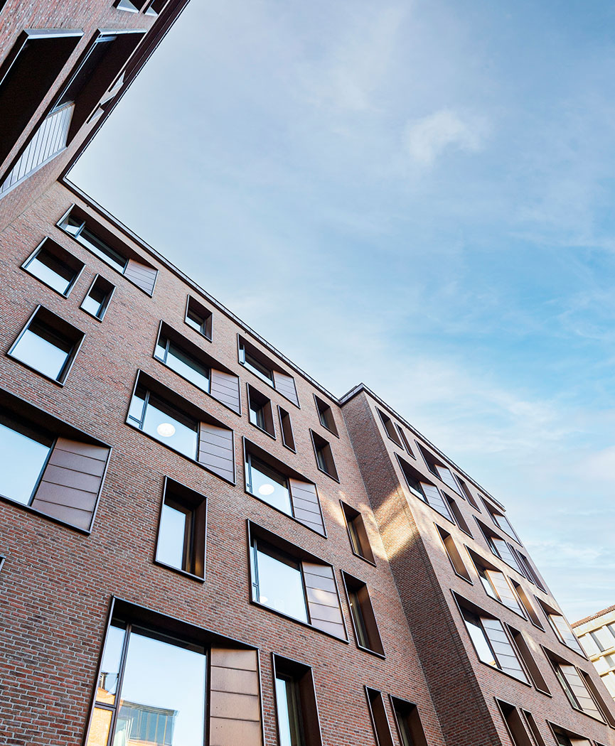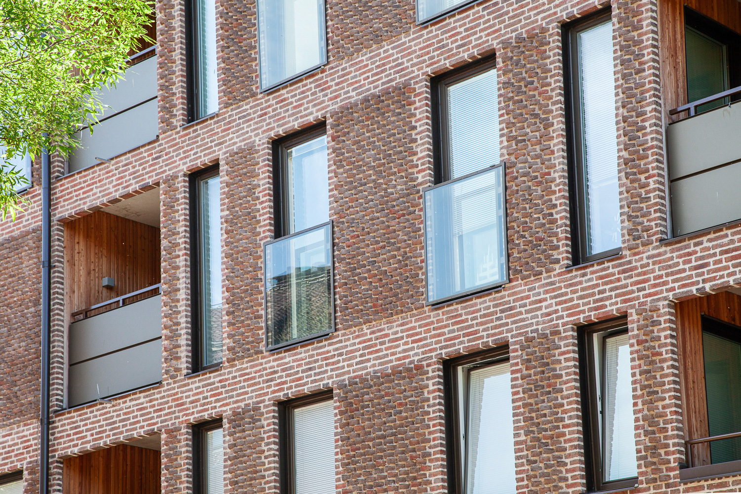 Inspired by a chestnut, as the name indicates, daring dimensions makes every apartment stand out. The large sections of windows are placed strategically and ensuring privacy, and the dark frames in combination with the light brickwork contribute to the thought-out depth of the building.