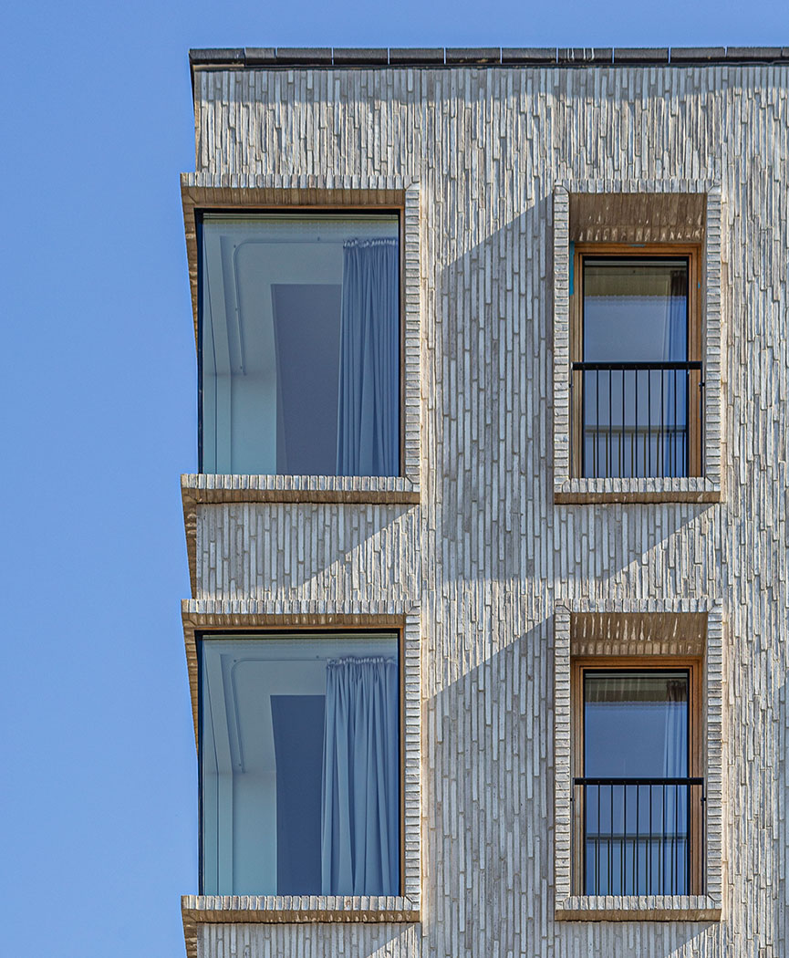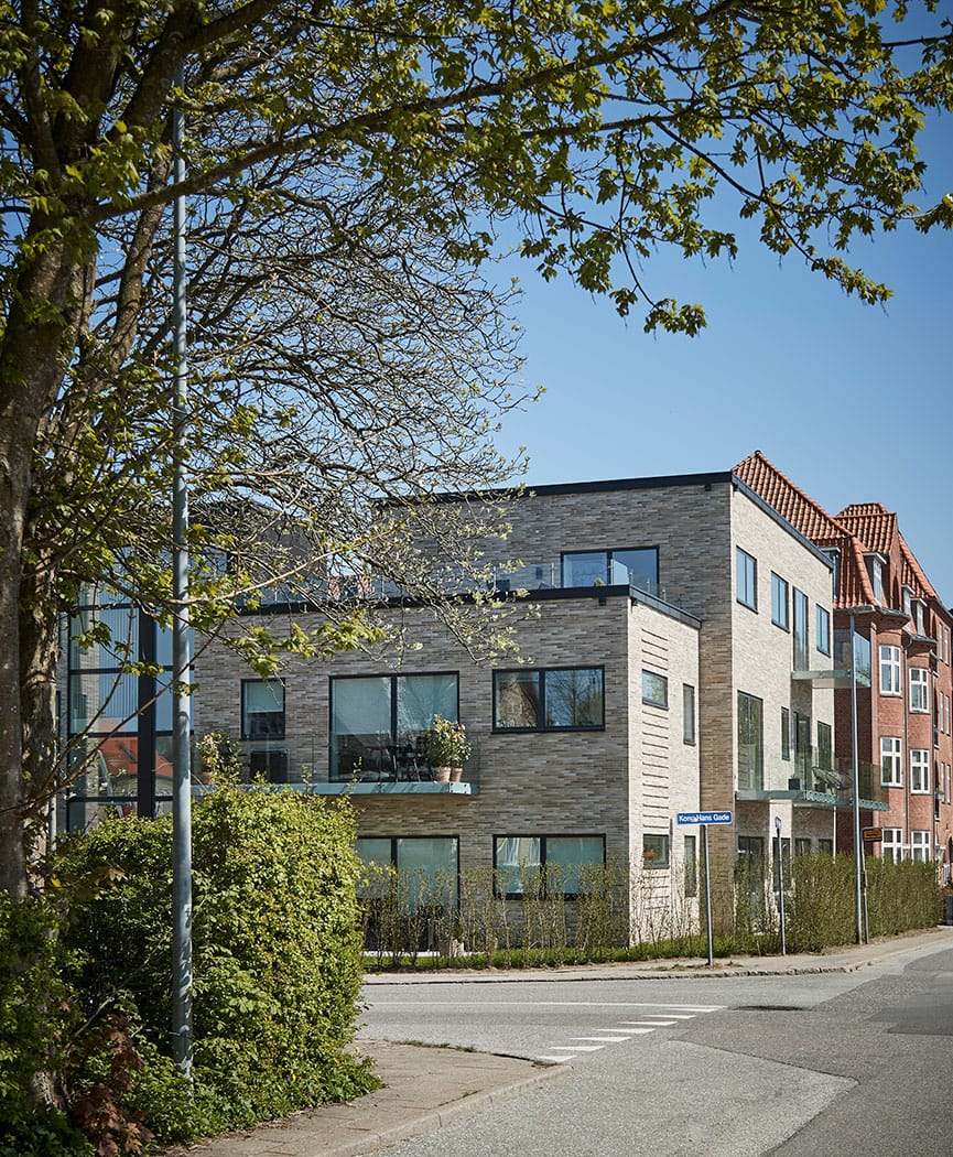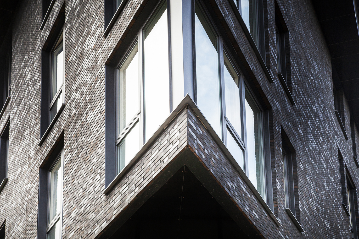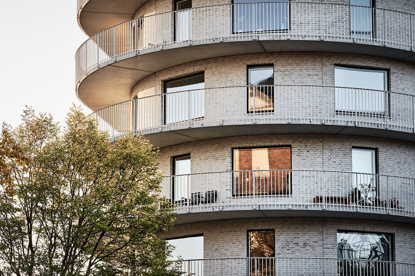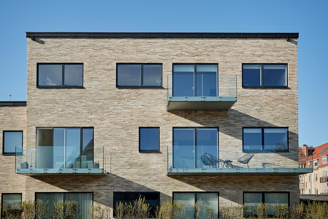 Inspired by a chestnut, as the name indicates, daring dimensions makes every apartment stand out. The large sections of windows are placed strategically and ensuring privacy, and the dark frames in combination with the light brickwork contribute to the thought-out depth of the building.