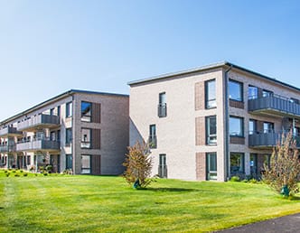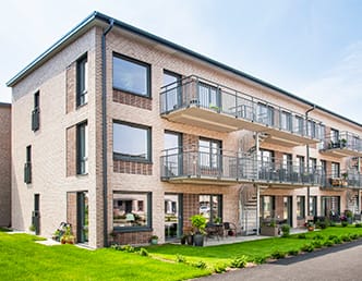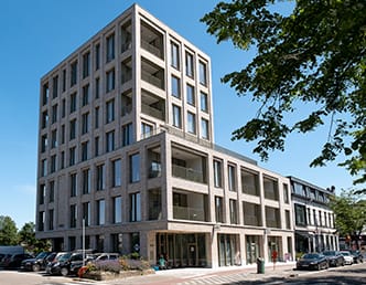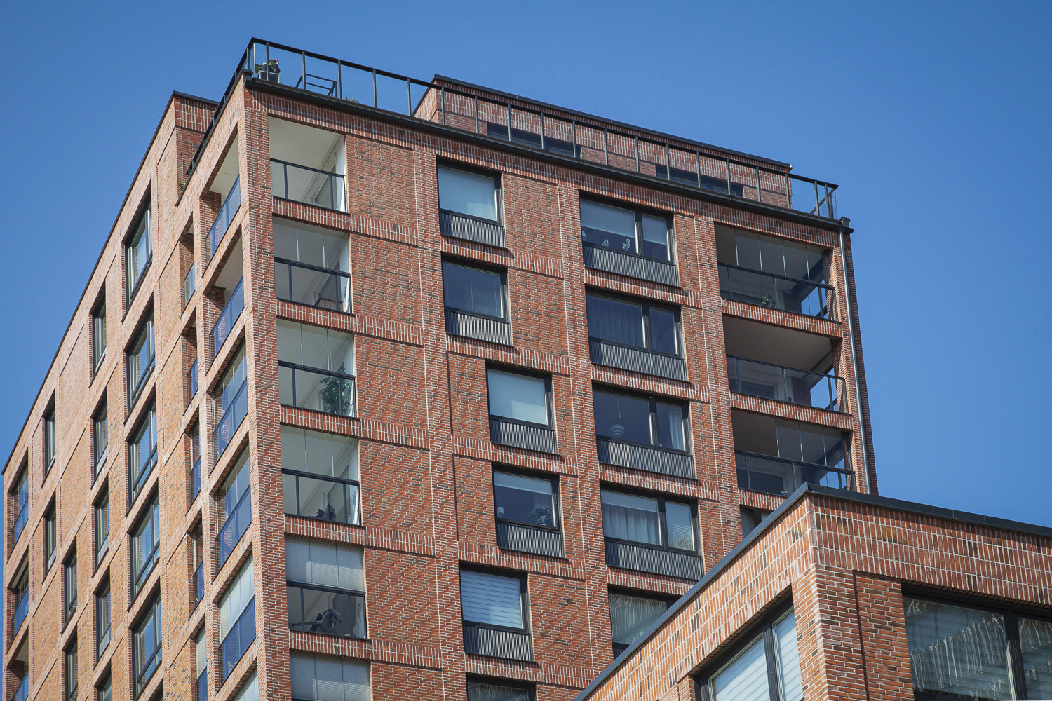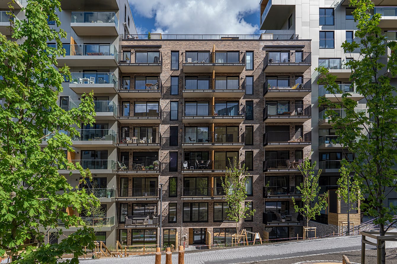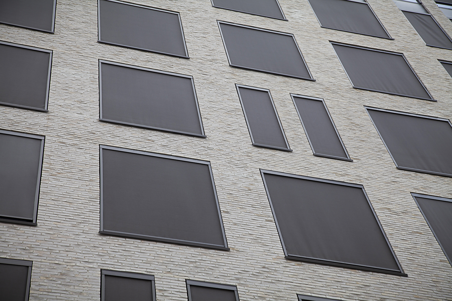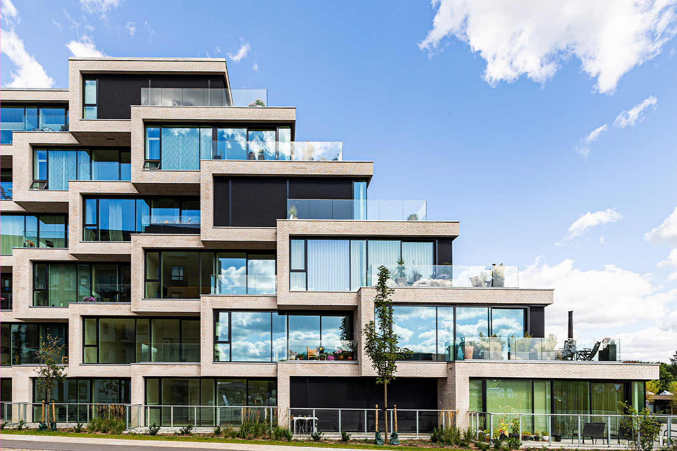 Inspired by a chestnut, as the name indicates, daring dimensions makes every apartment stand out. The large sections of windows are placed strategically and ensuring privacy, and the dark frames in combination with the light brickwork contribute to the thought-out depth of the building.