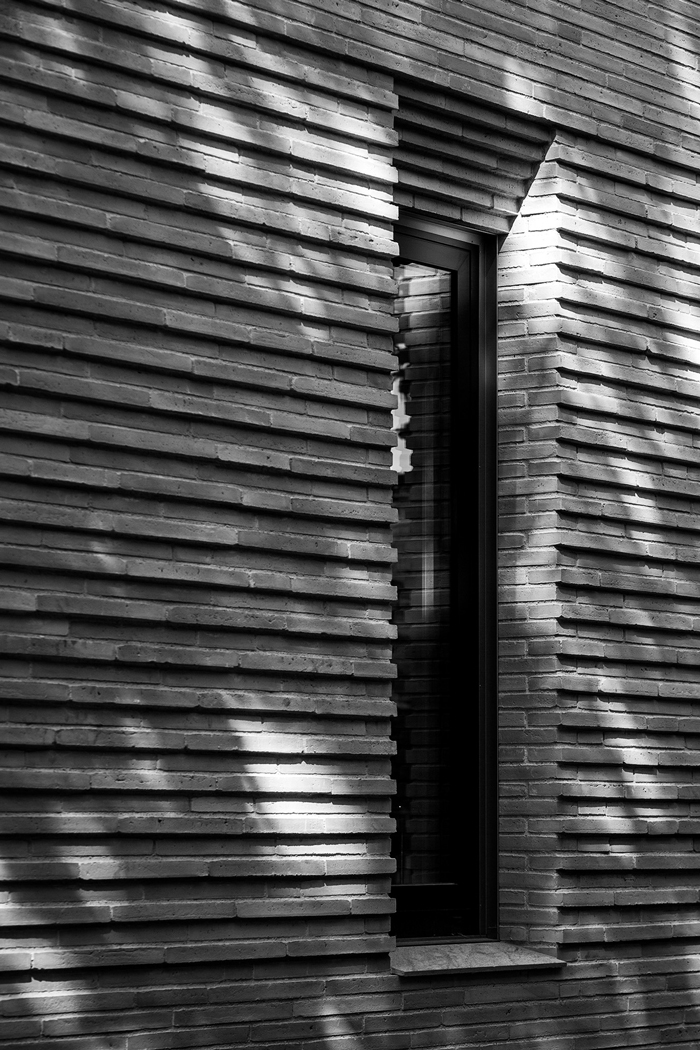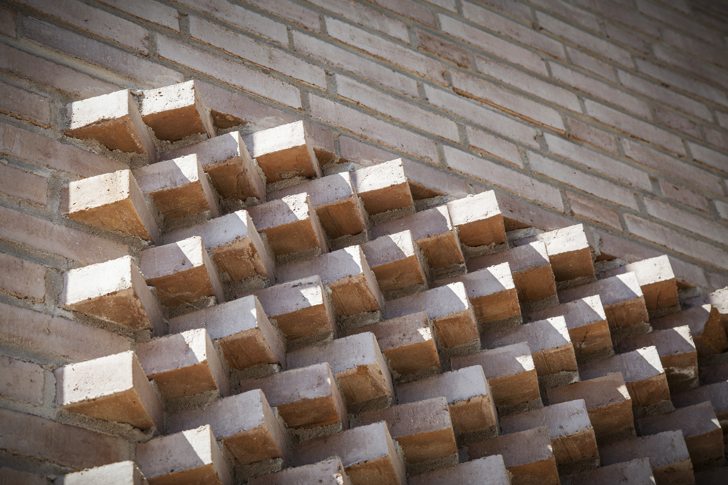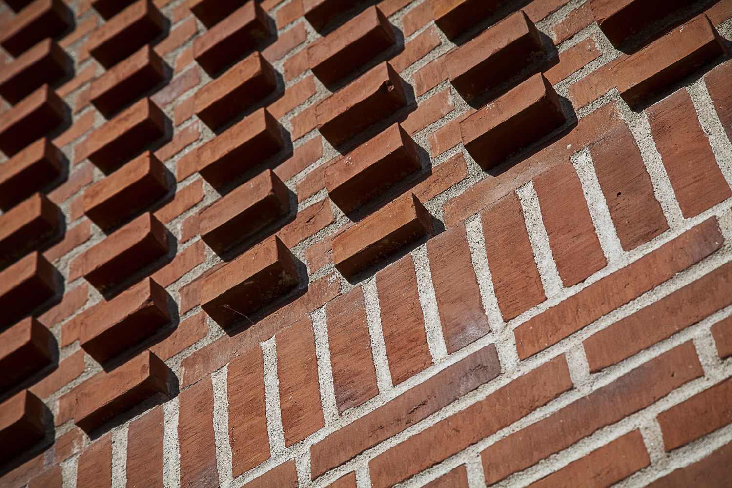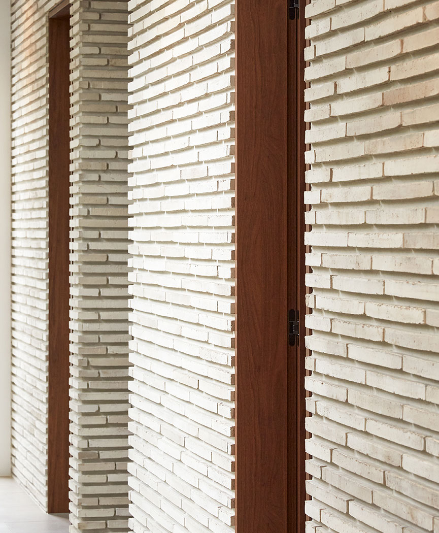 A significant detail in the project is the variation of bonds. When walking across the property, you can’t miss the play of bonds; There is the classic bond of long format bricks, a protruding bond as well as transparent one – each of which adds a special effect on the overall impression of the house.