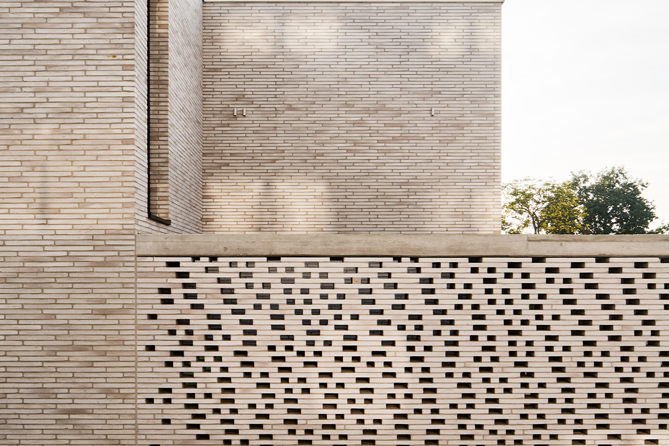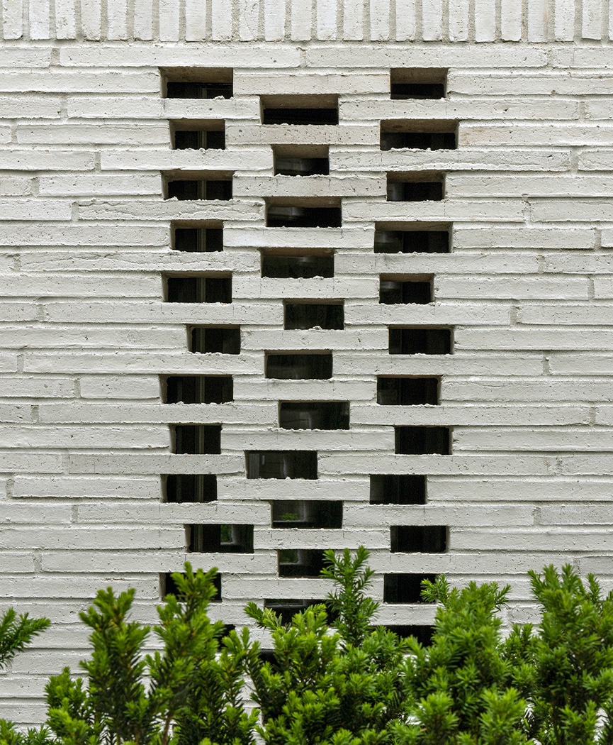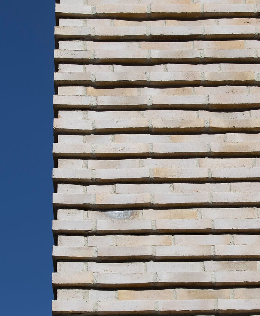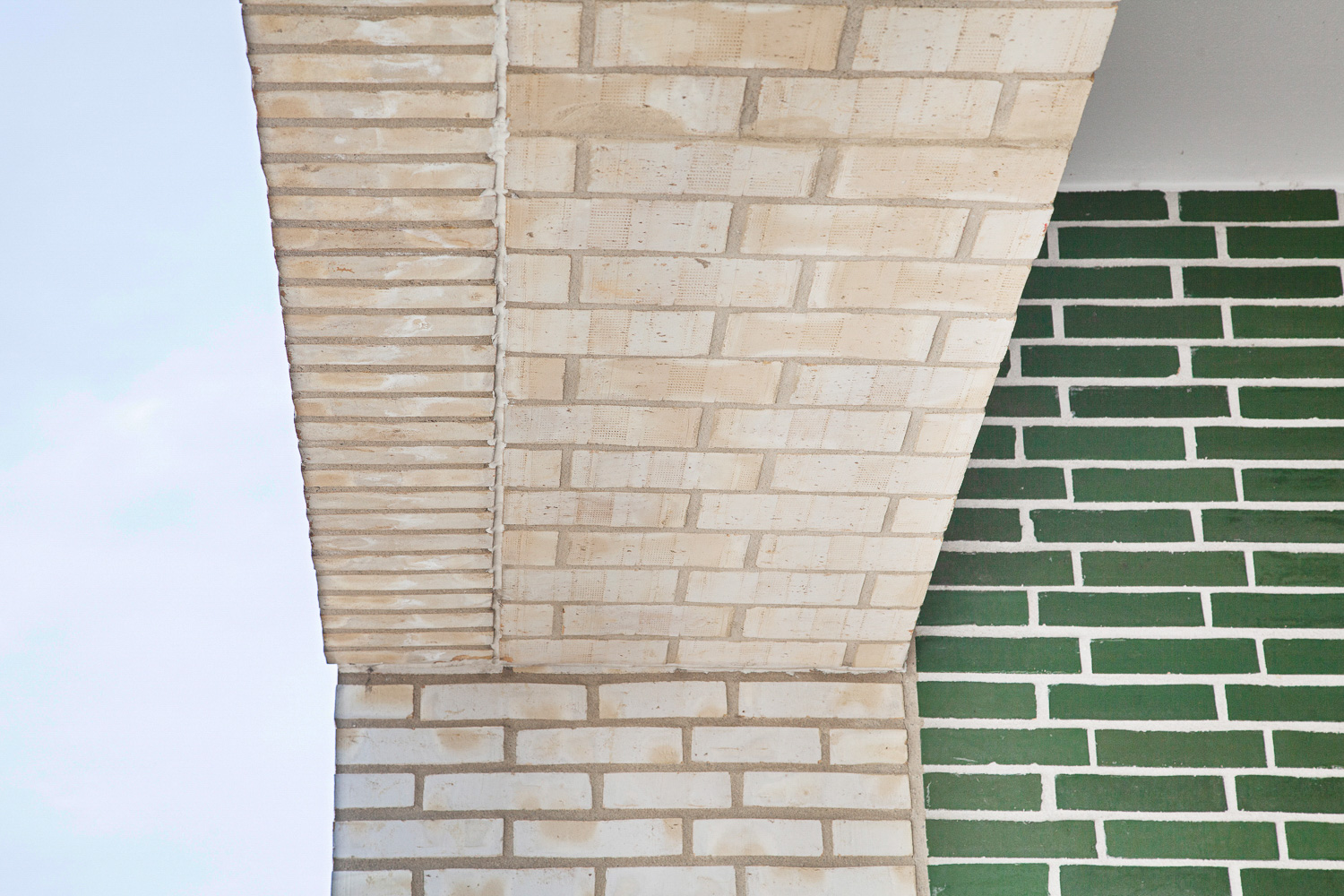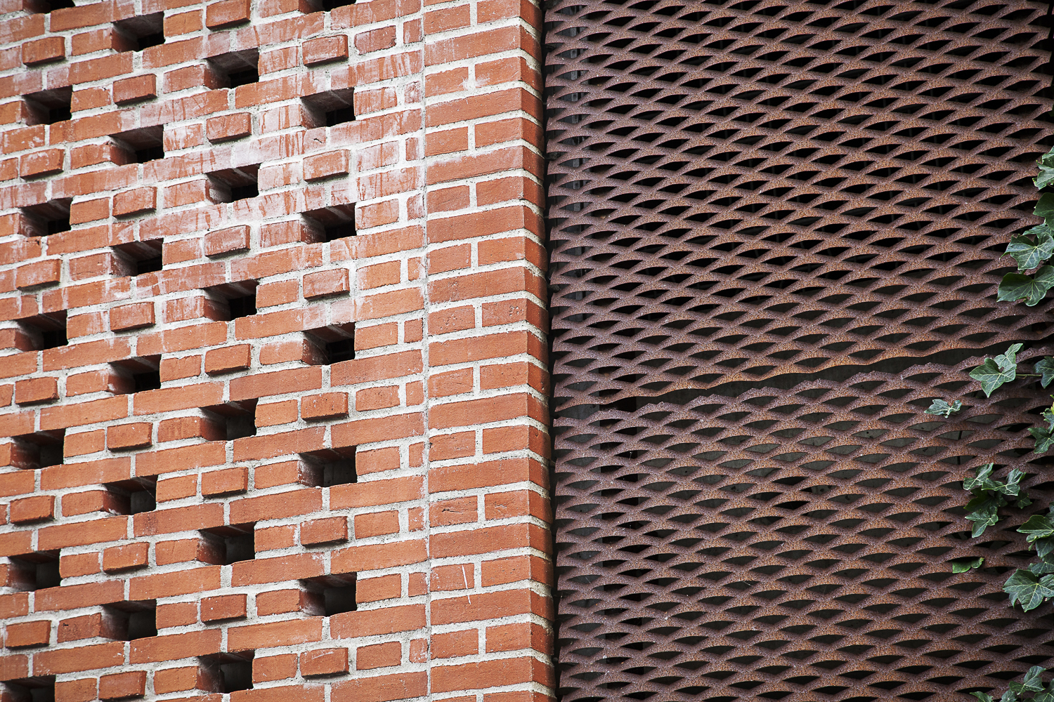 A significant detail in the project is the variation of bonds. When walking across the property, you can’t miss the play of bonds; There is the classic bond of long format bricks, a protruding bond as well as transparent one – each of which adds a special effect on the overall impression of the house.