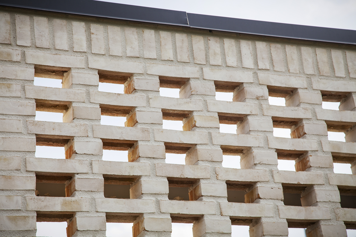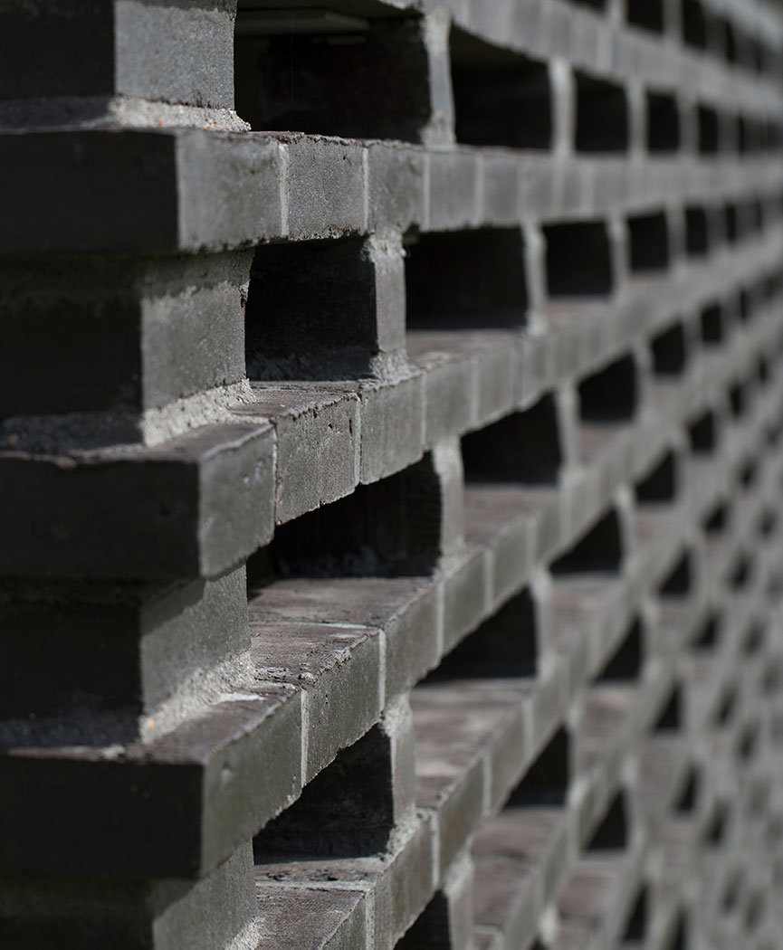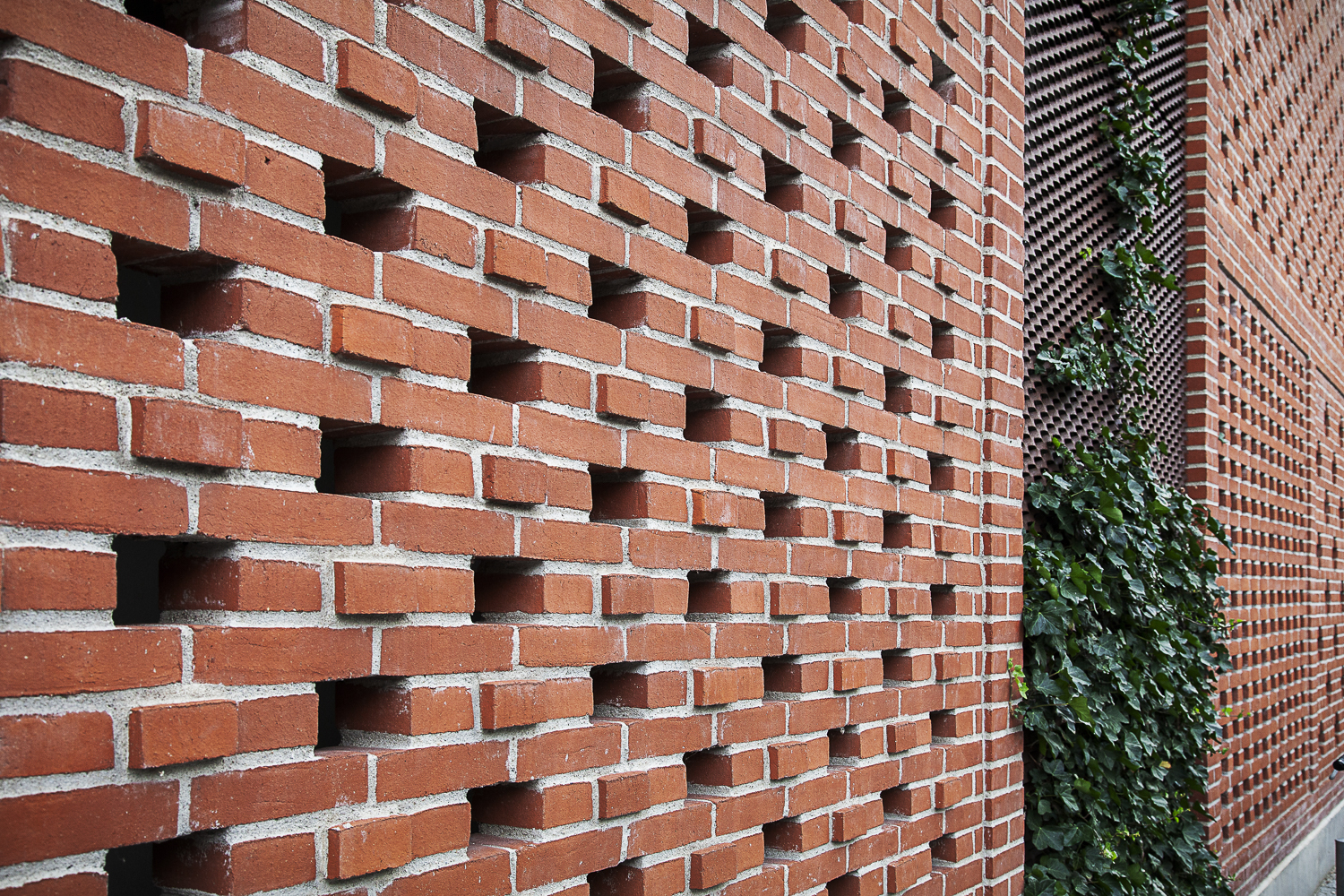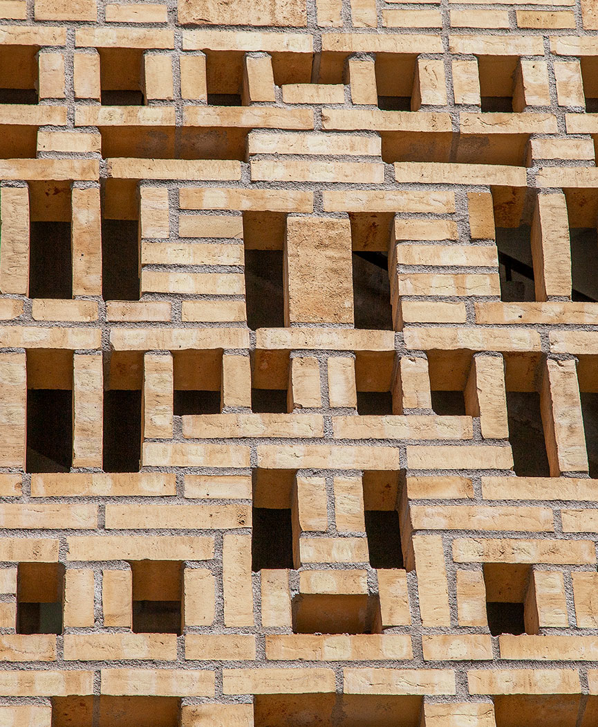 A significant detail in the project is the variation of bonds. When walking across the property, you can’t miss the play of bonds; There is the classic bond of long format bricks, a protruding bond as well as transparent one – each of which adds a special effect on the overall impression of the house.