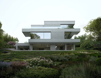 This distinctive and bright German residence dwells peacefully in between greens. Special emphasis was placed on sustainability and a high quality of construction, which is implemented with precision and architectural love to the last detail.
