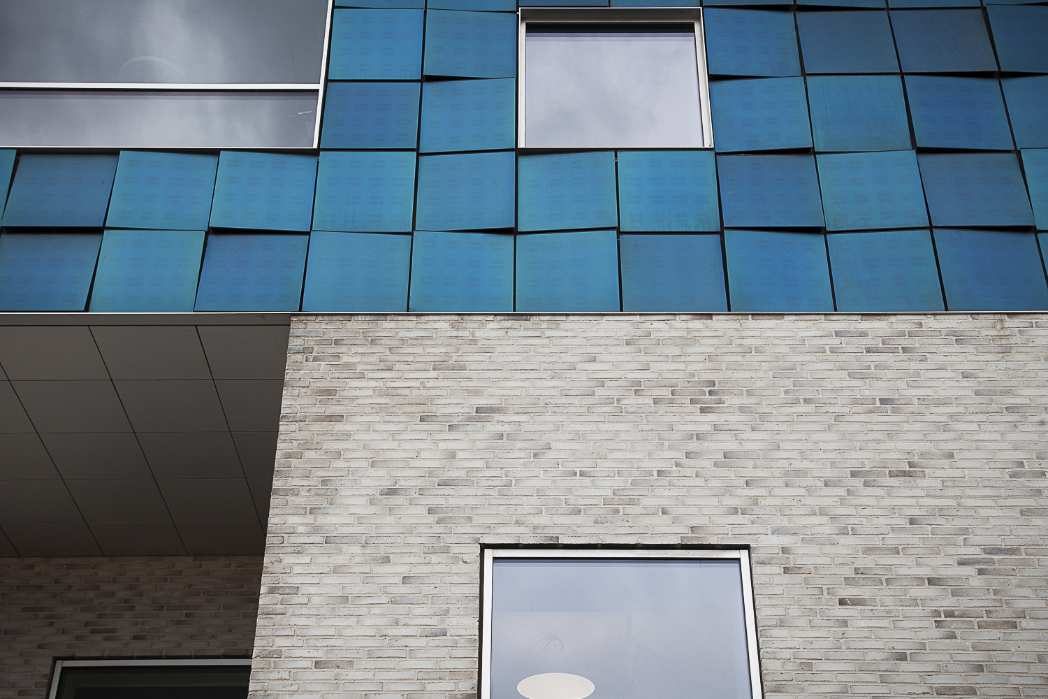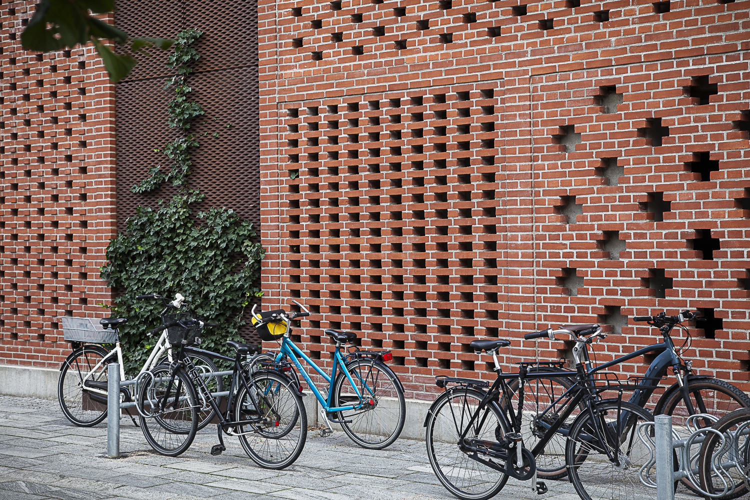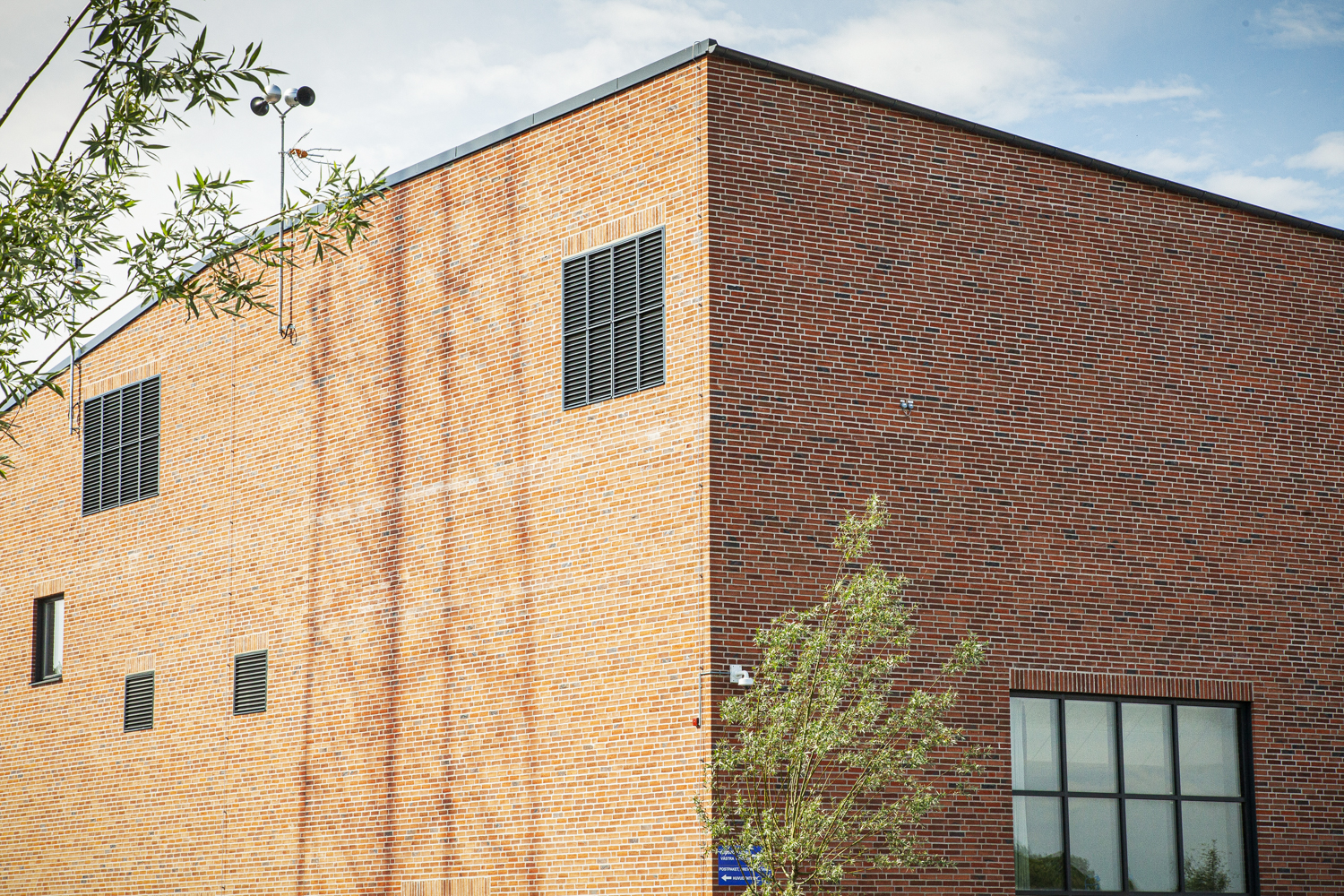 Facaden er opført med specialudviklede GREENER mursten, der har et markant lavere CO2-aftryk takket være brugen af biogas og vindkraft. Med over 225.000 mursten er der opnået en CO2-besparelse på over 110.000 kg.