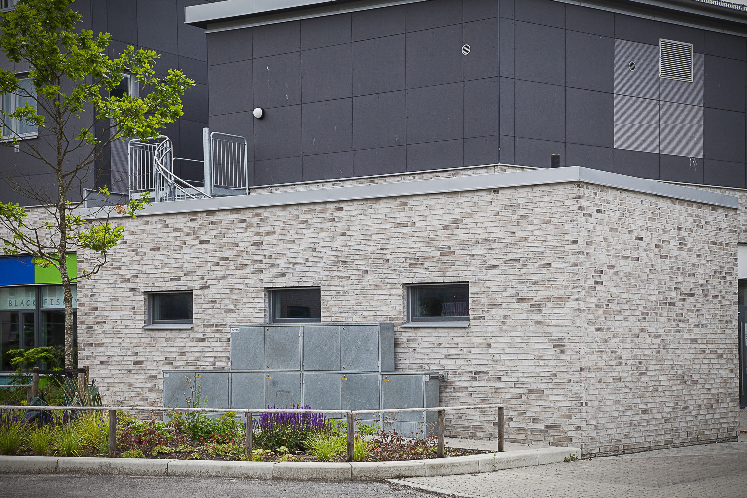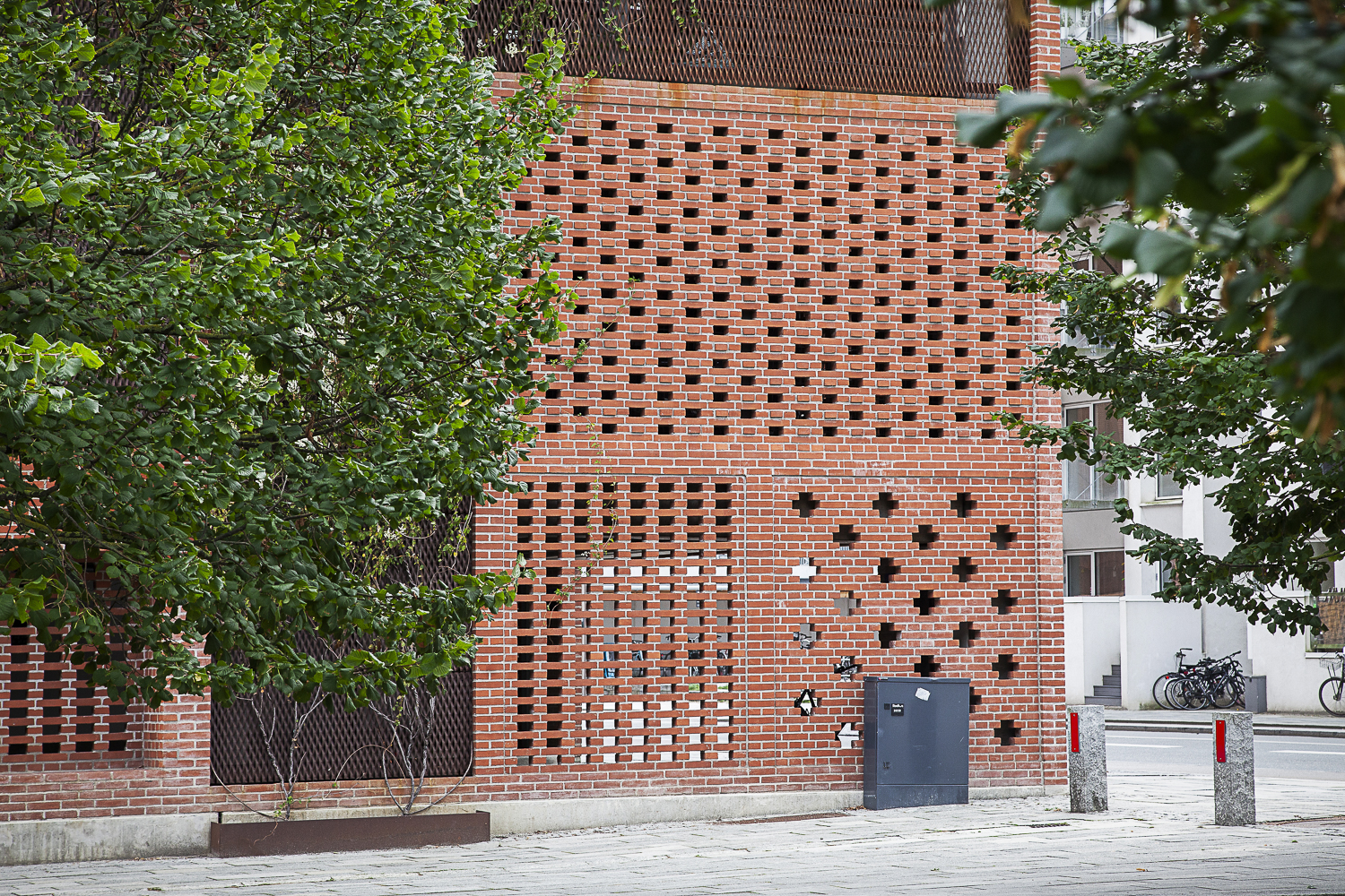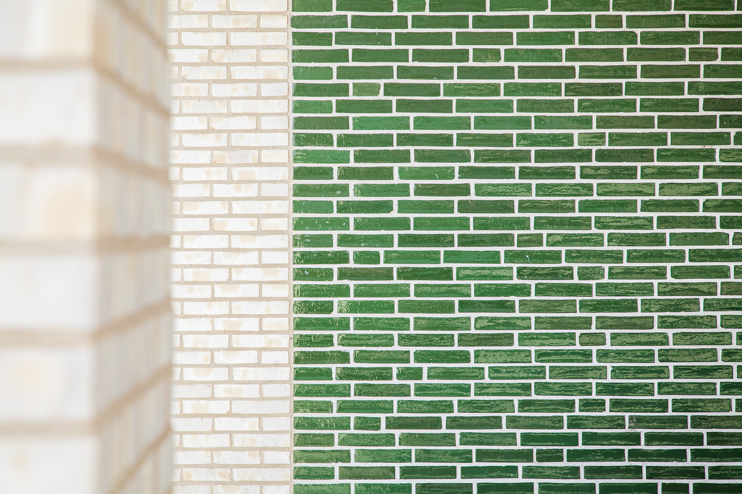 Facaden er opført med specialudviklede GREENER mursten, der har et markant lavere CO2-aftryk takket være brugen af biogas og vindkraft. Med over 225.000 mursten er der opnået en CO2-besparelse på over 110.000 kg.
