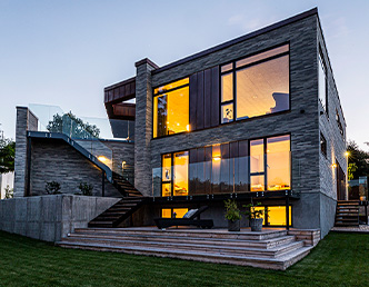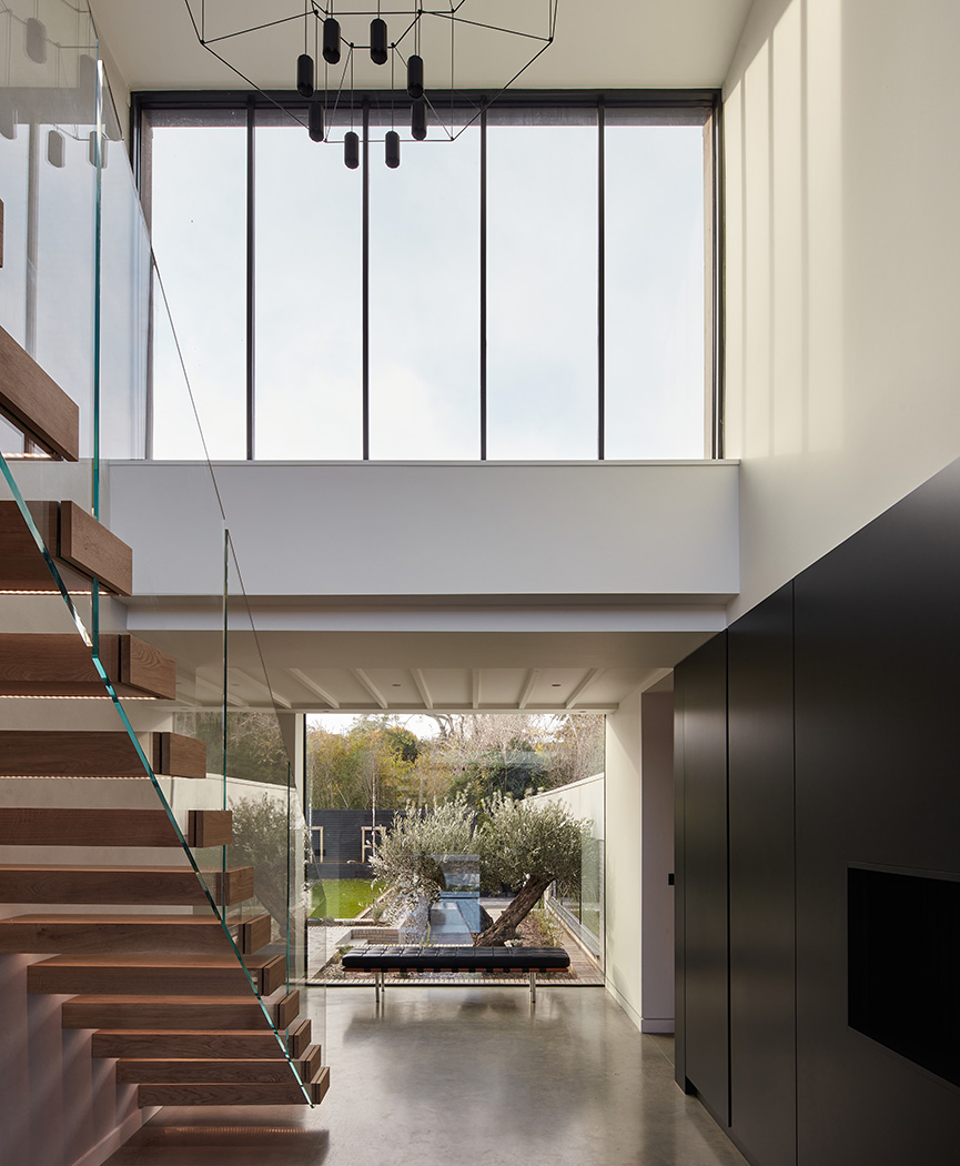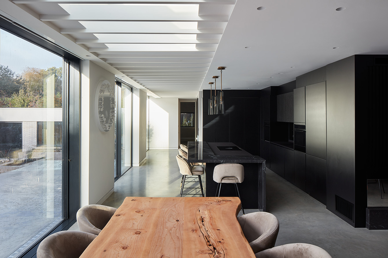 The many large window selections combined with the owner’s choice of materials and colours results in a significant house and a home with a light feel.