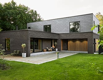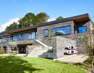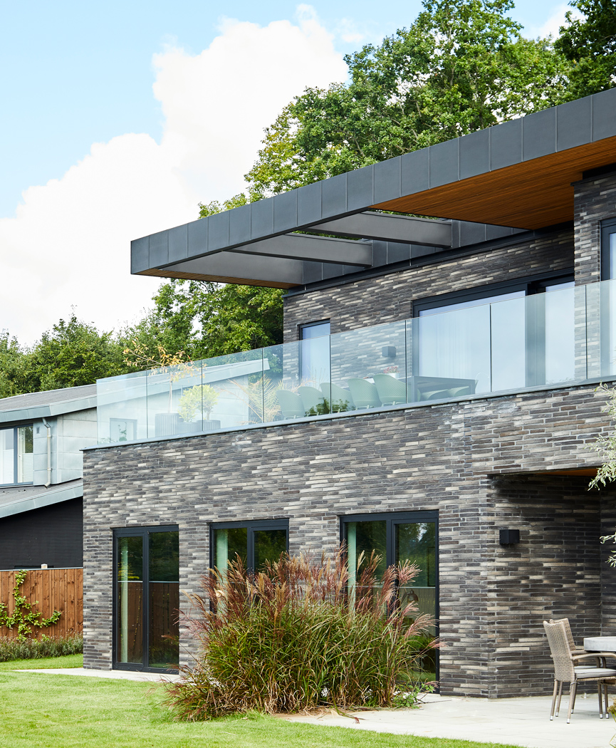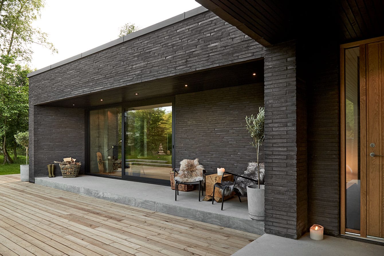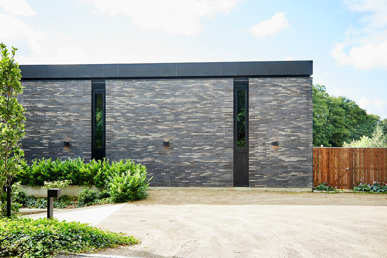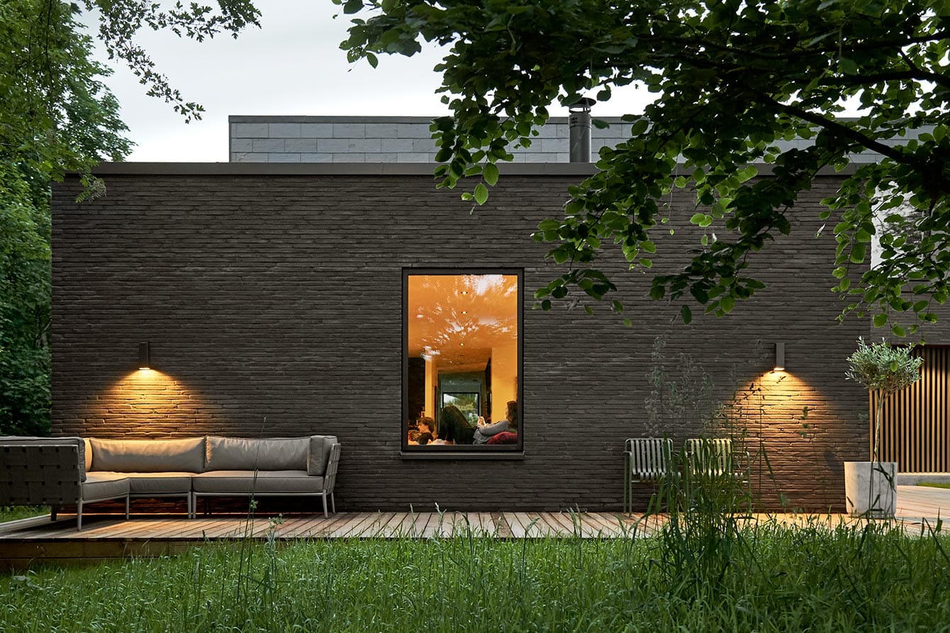 Far away from the everyday hustle, this high-end contemporary gem is hidden away in the woods. Featuring RT 150 Ultima Linear Bricks in vivid black.