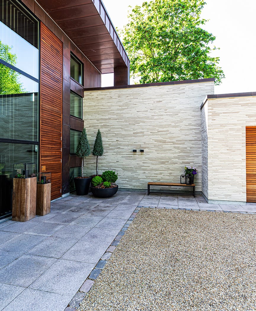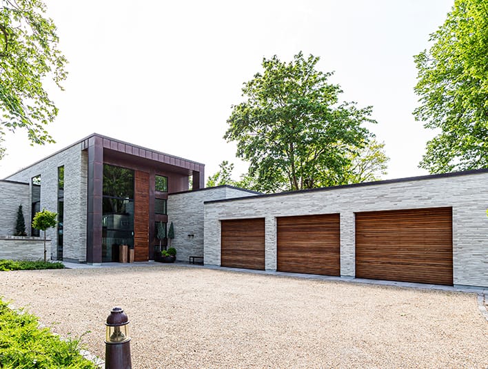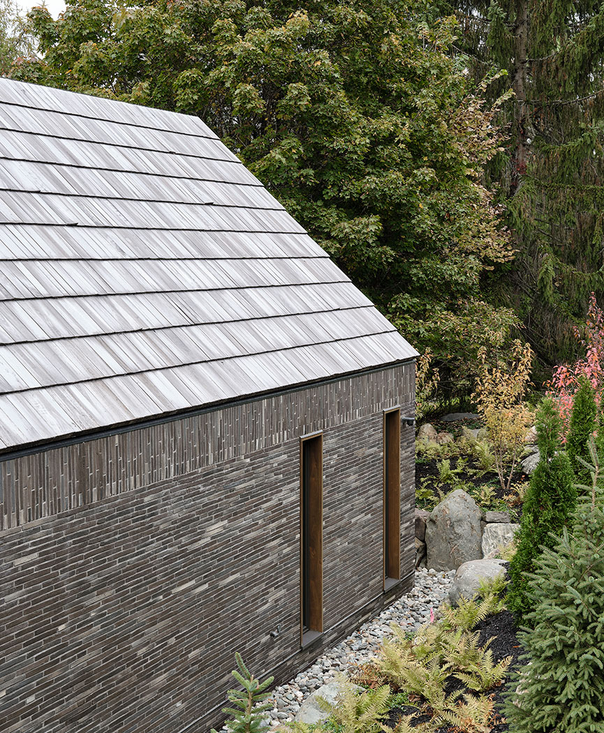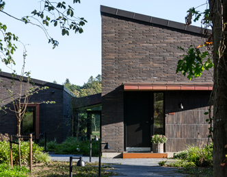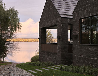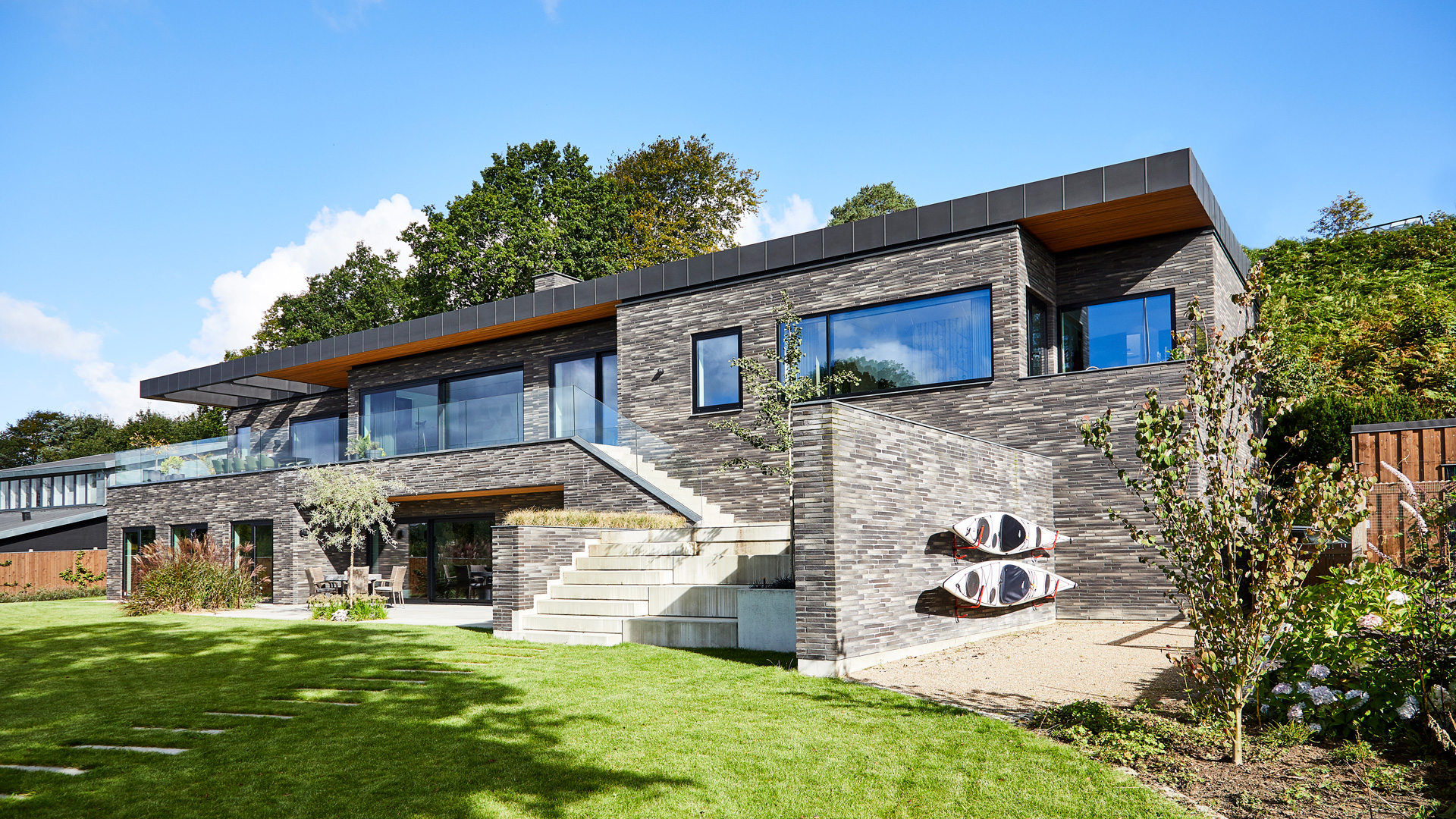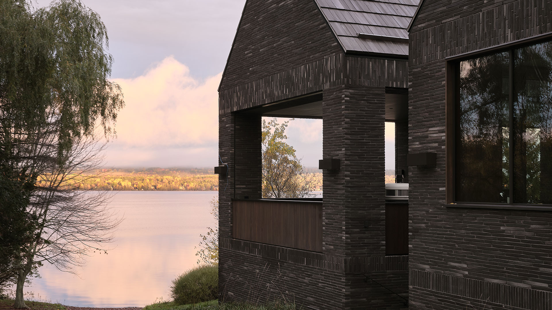 Far away from the everyday hustle, this high-end contemporary gem is hidden away in the woods. Featuring RT 150 Ultima Linear Bricks in vivid black.