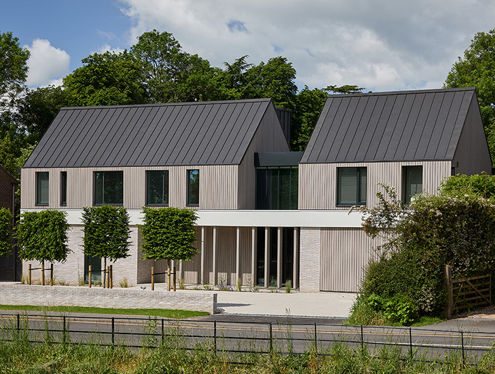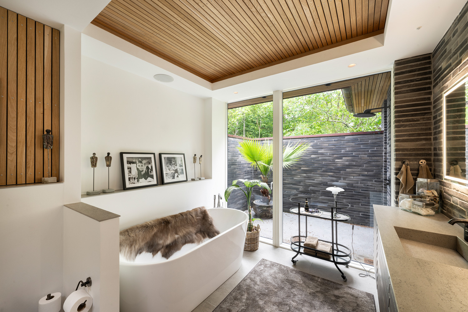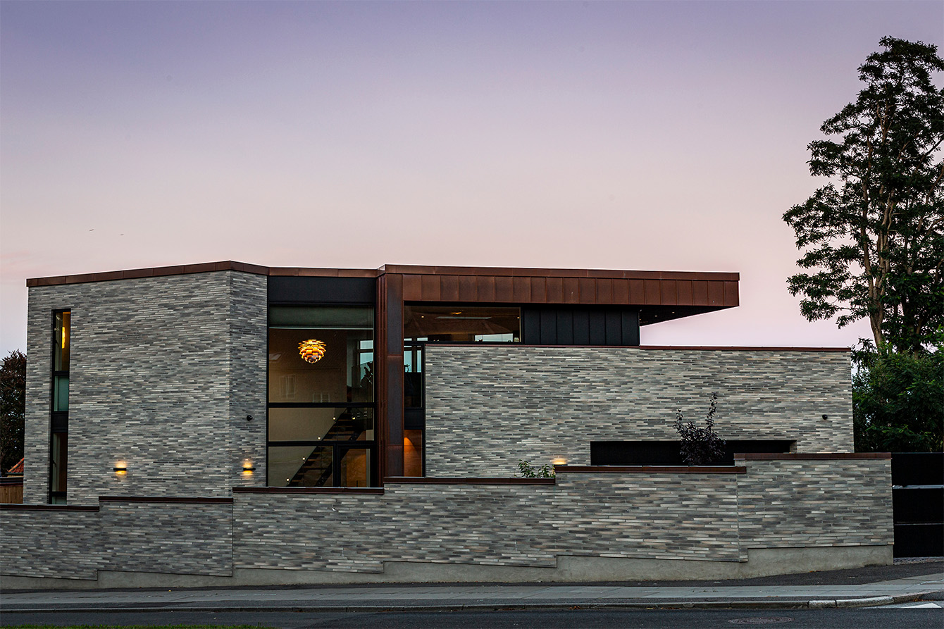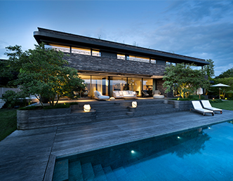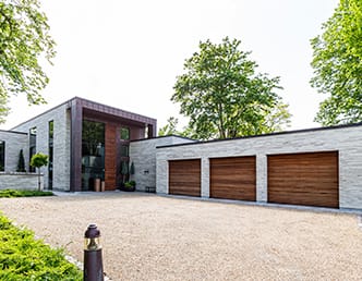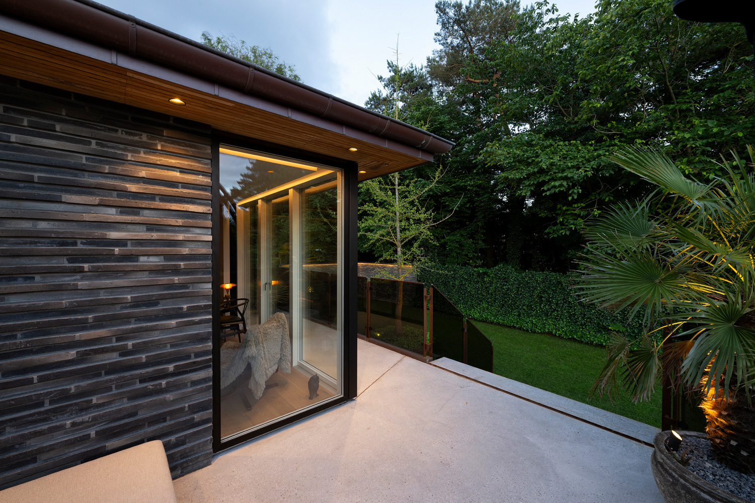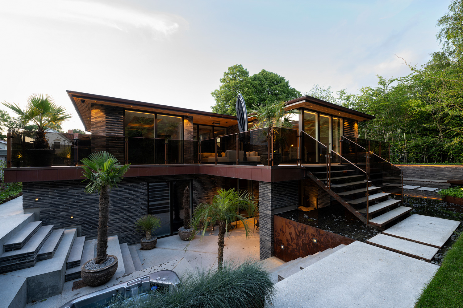 Far away from the everyday hustle, this high-end contemporary gem is hidden away in the woods. Featuring RT 150 Ultima Linear Bricks in vivid black.