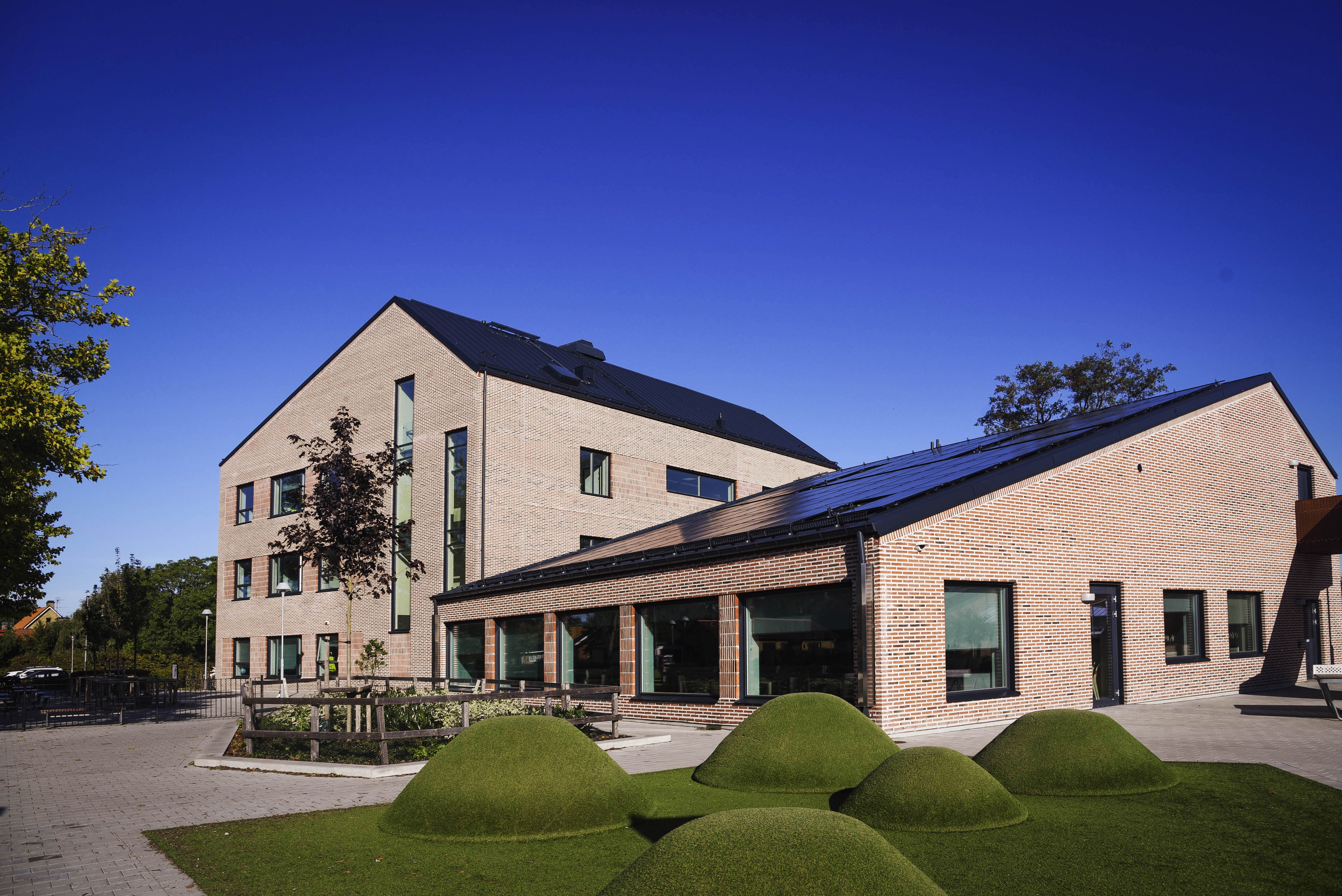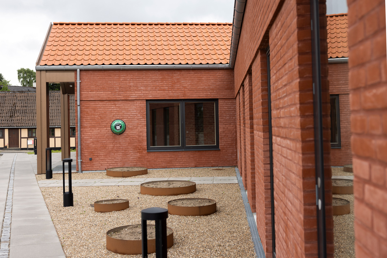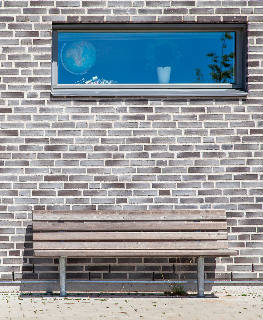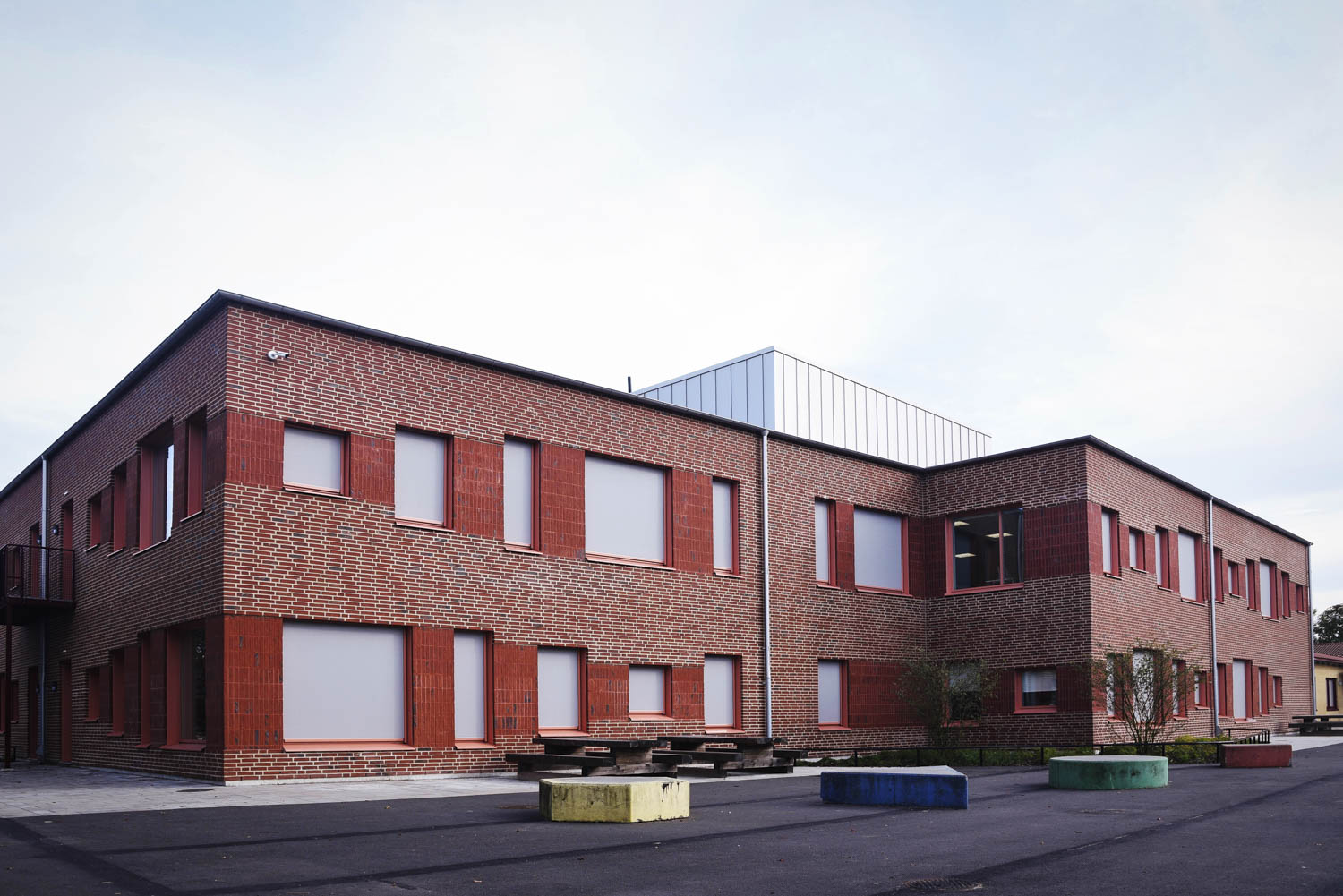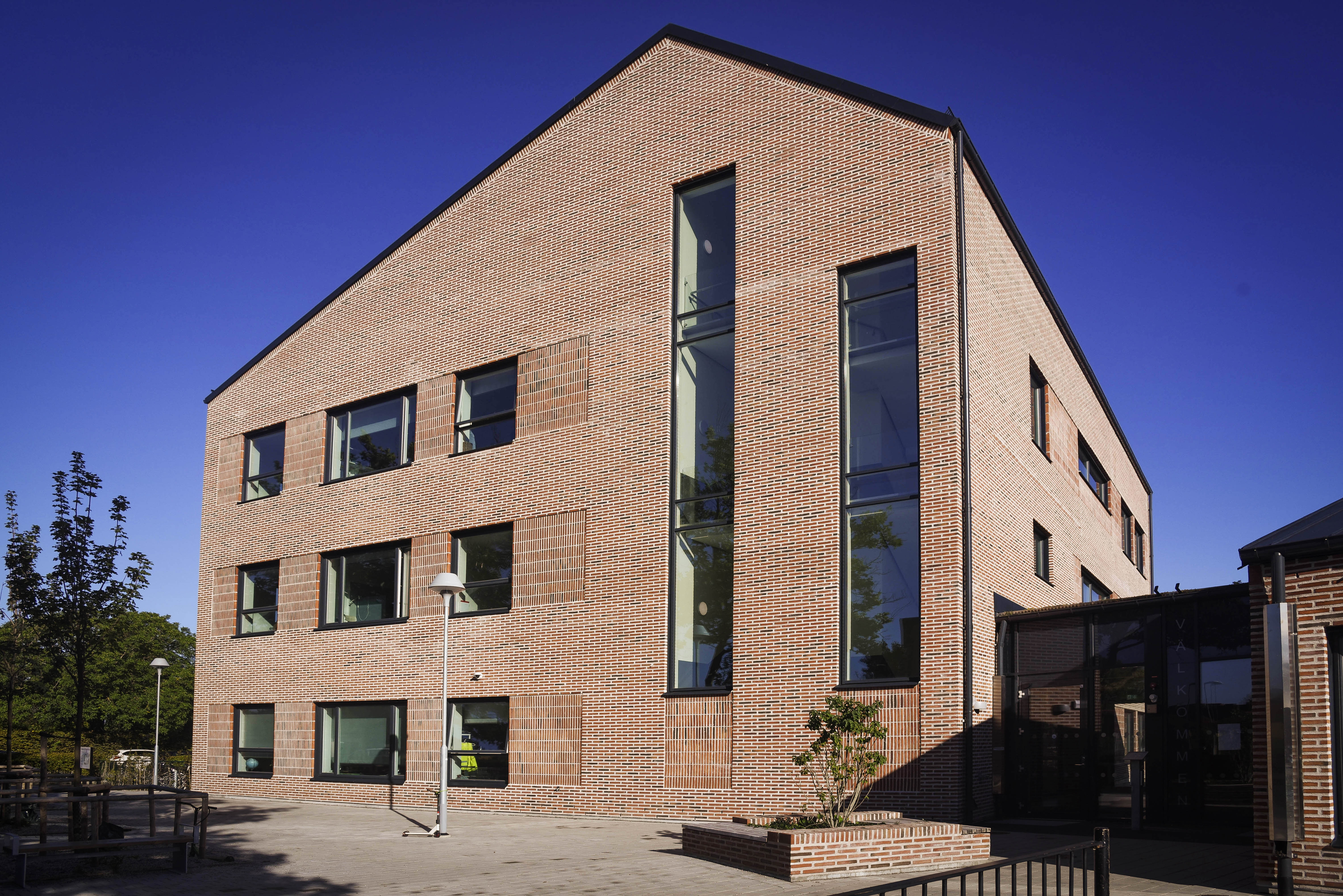 The building is adjusted to its surroundings – especially due to the yellow bricks and the traditional roof. At the same time, the two displaced wings and perforated end walls add a contemporary and rewarding touch to the historical epicentre for education.