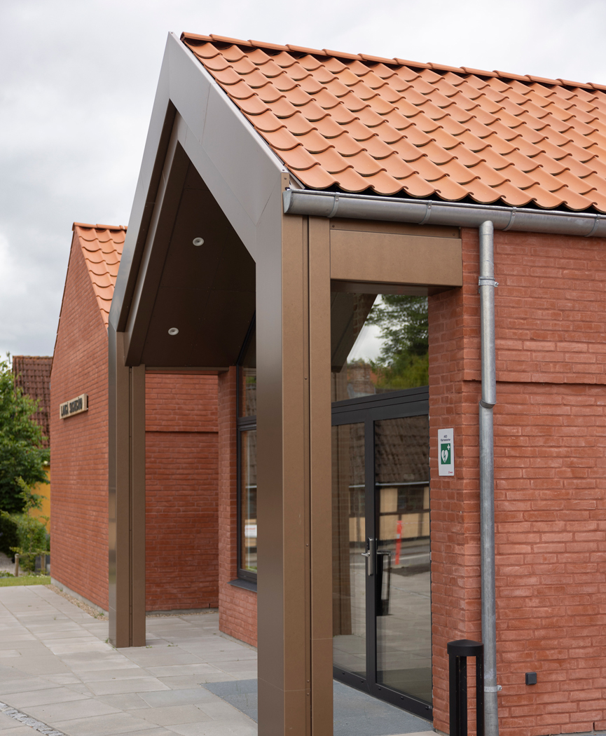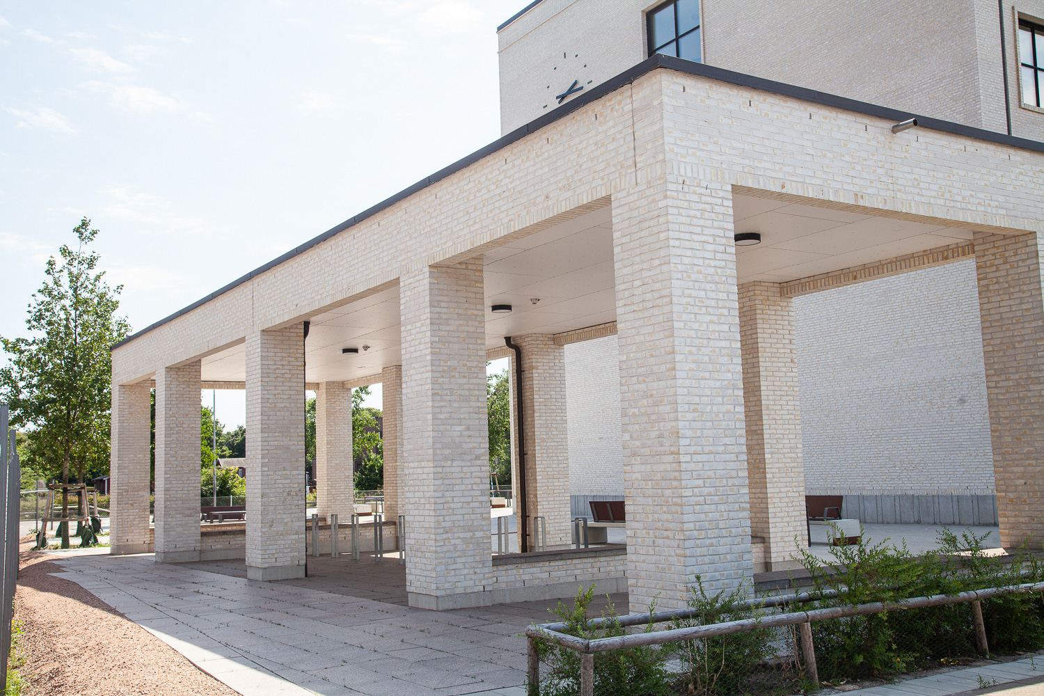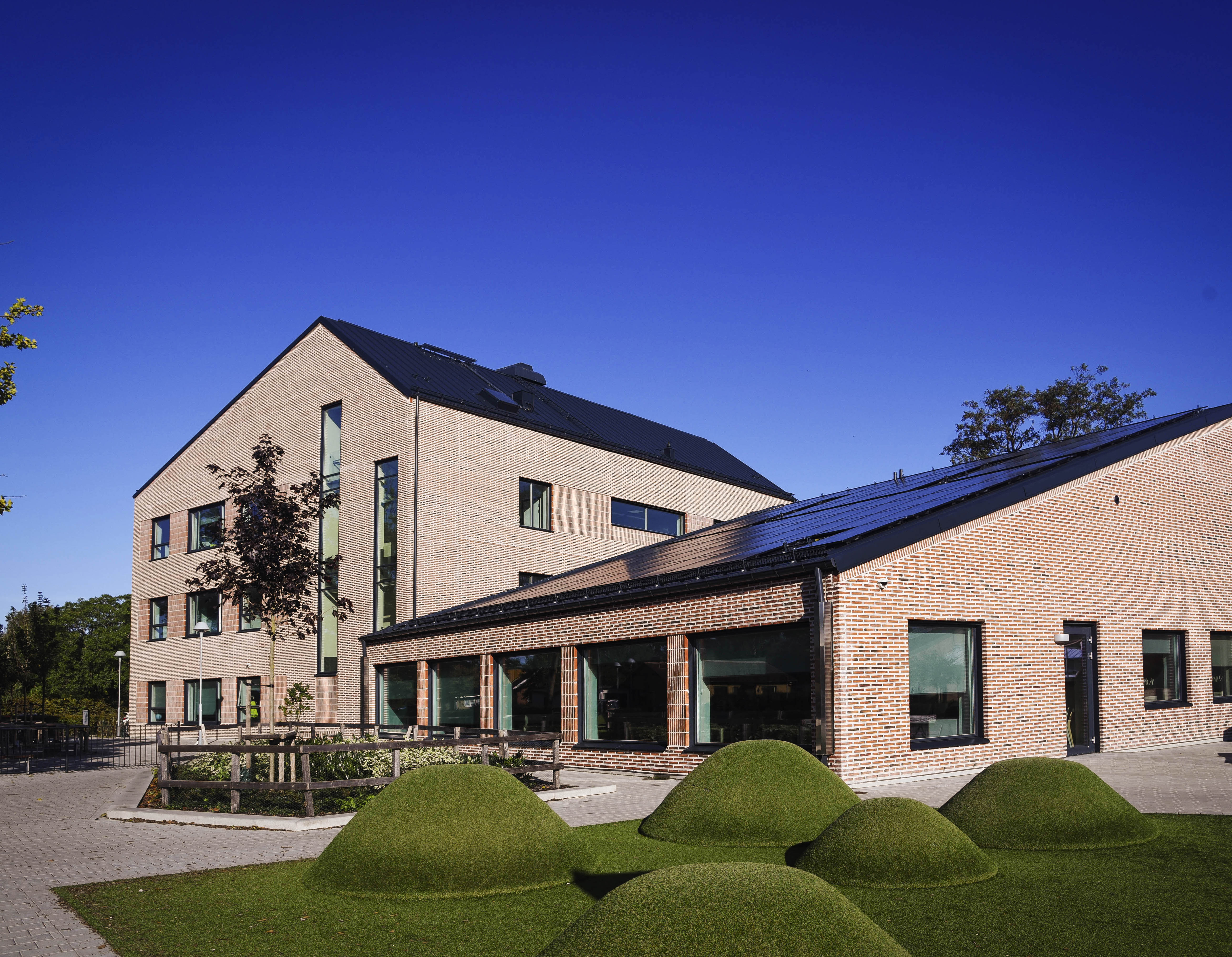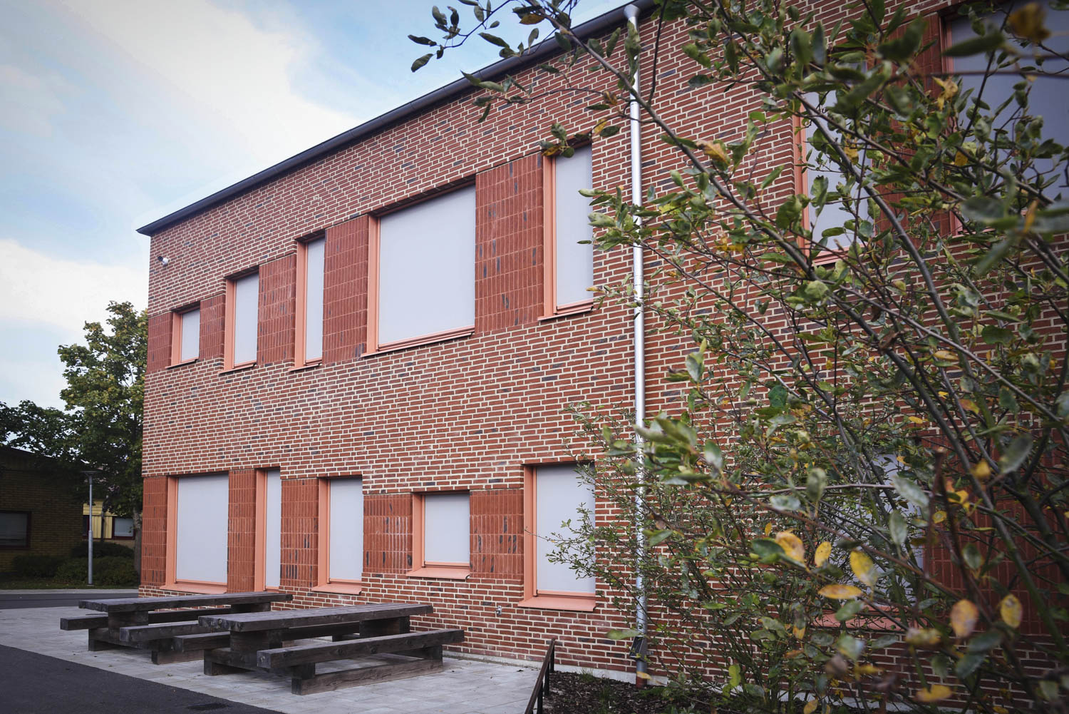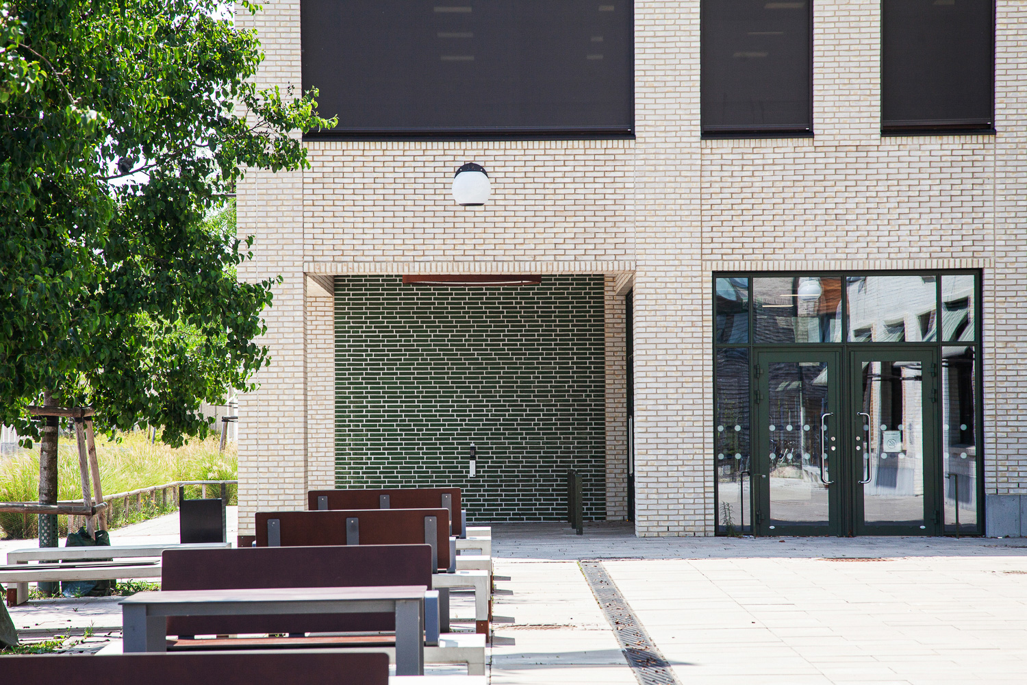 The building is adjusted to its surroundings – especially due to the yellow bricks and the traditional roof. At the same time, the two displaced wings and perforated end walls add a contemporary and rewarding touch to the historical epicentre for education.