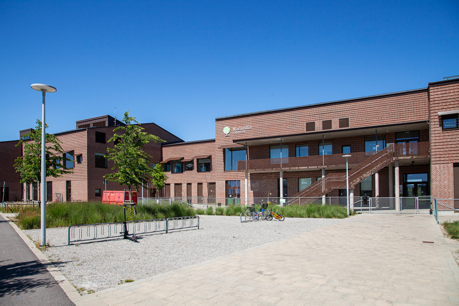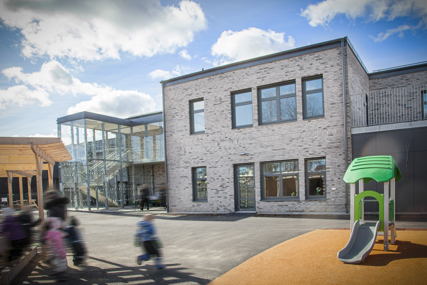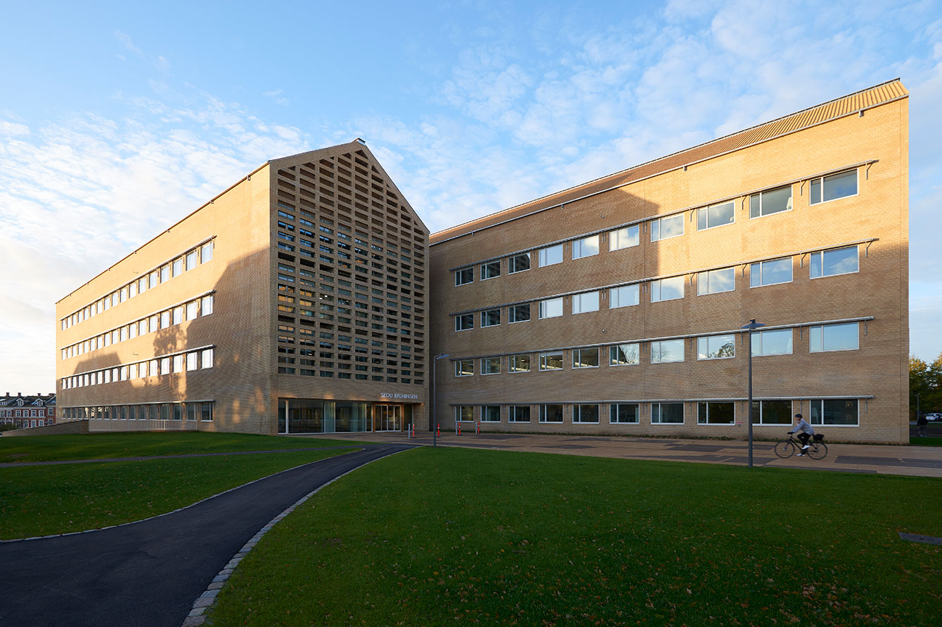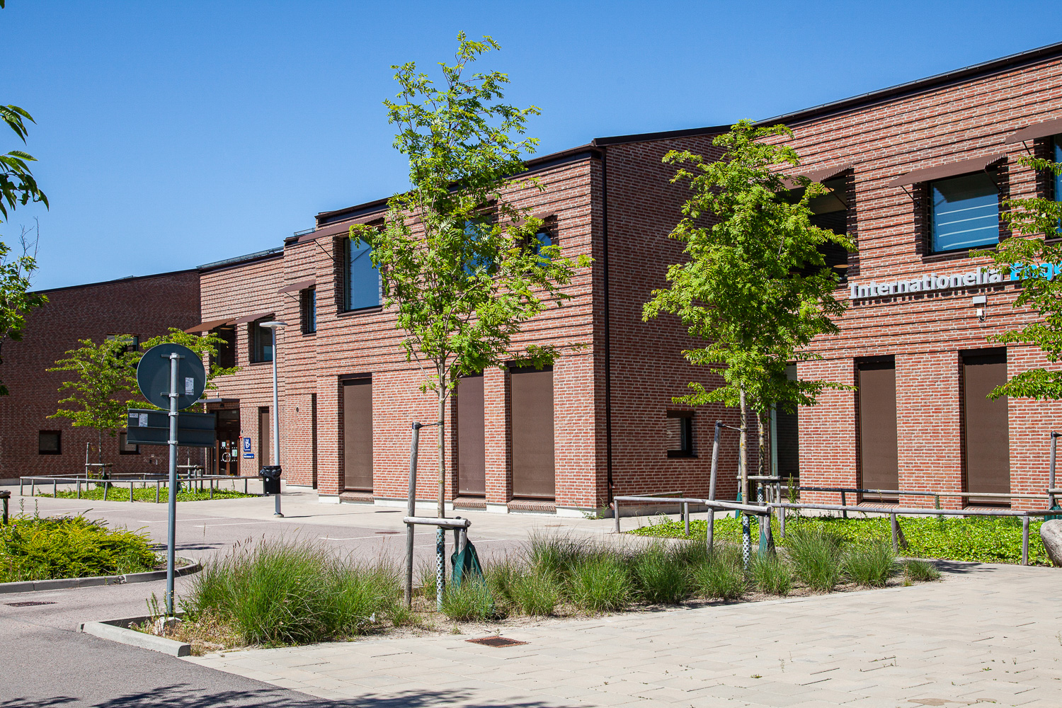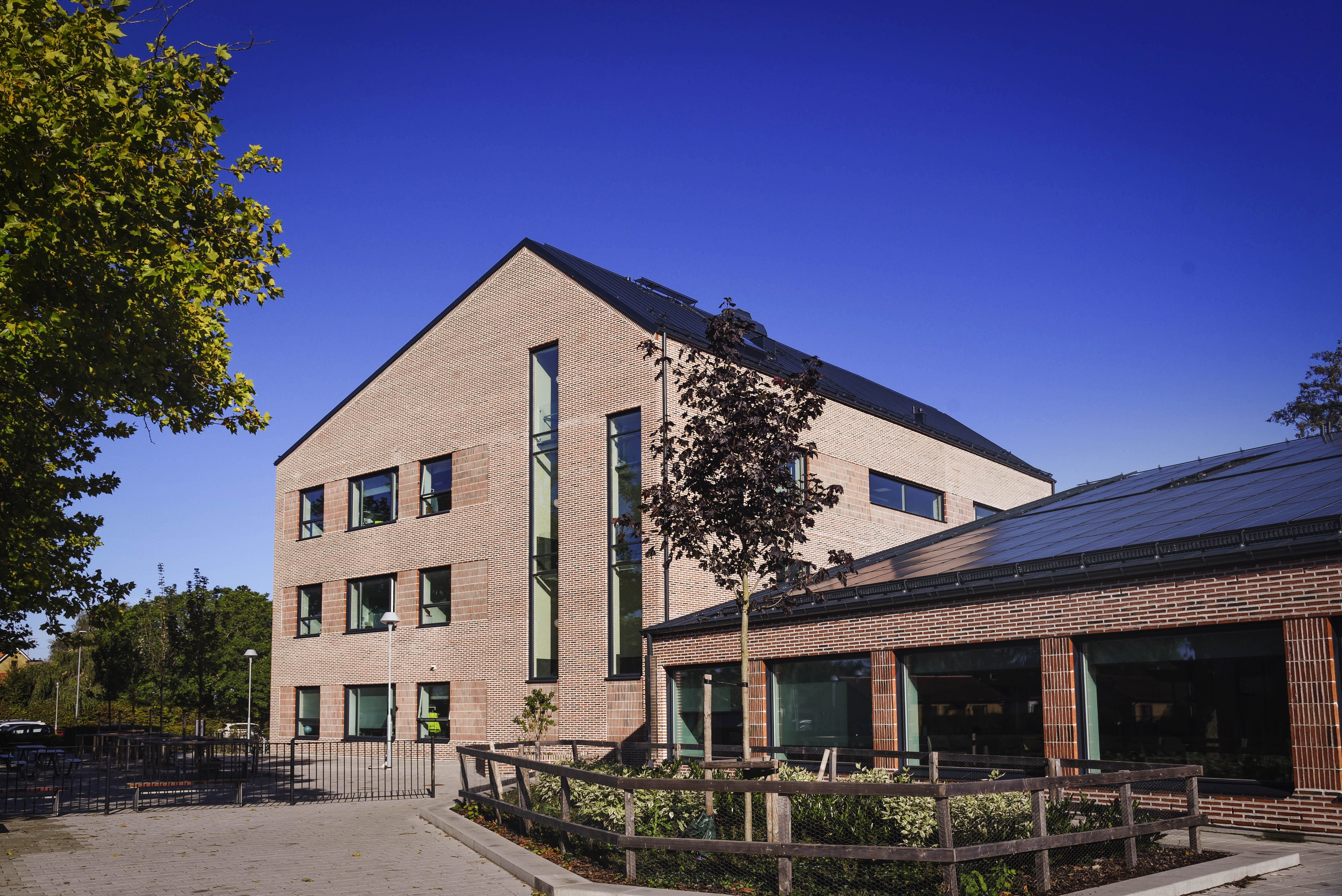 The building is adjusted to its surroundings – especially due to the yellow bricks and the traditional roof. At the same time, the two displaced wings and perforated end walls add a contemporary and rewarding touch to the historical epicentre for education.