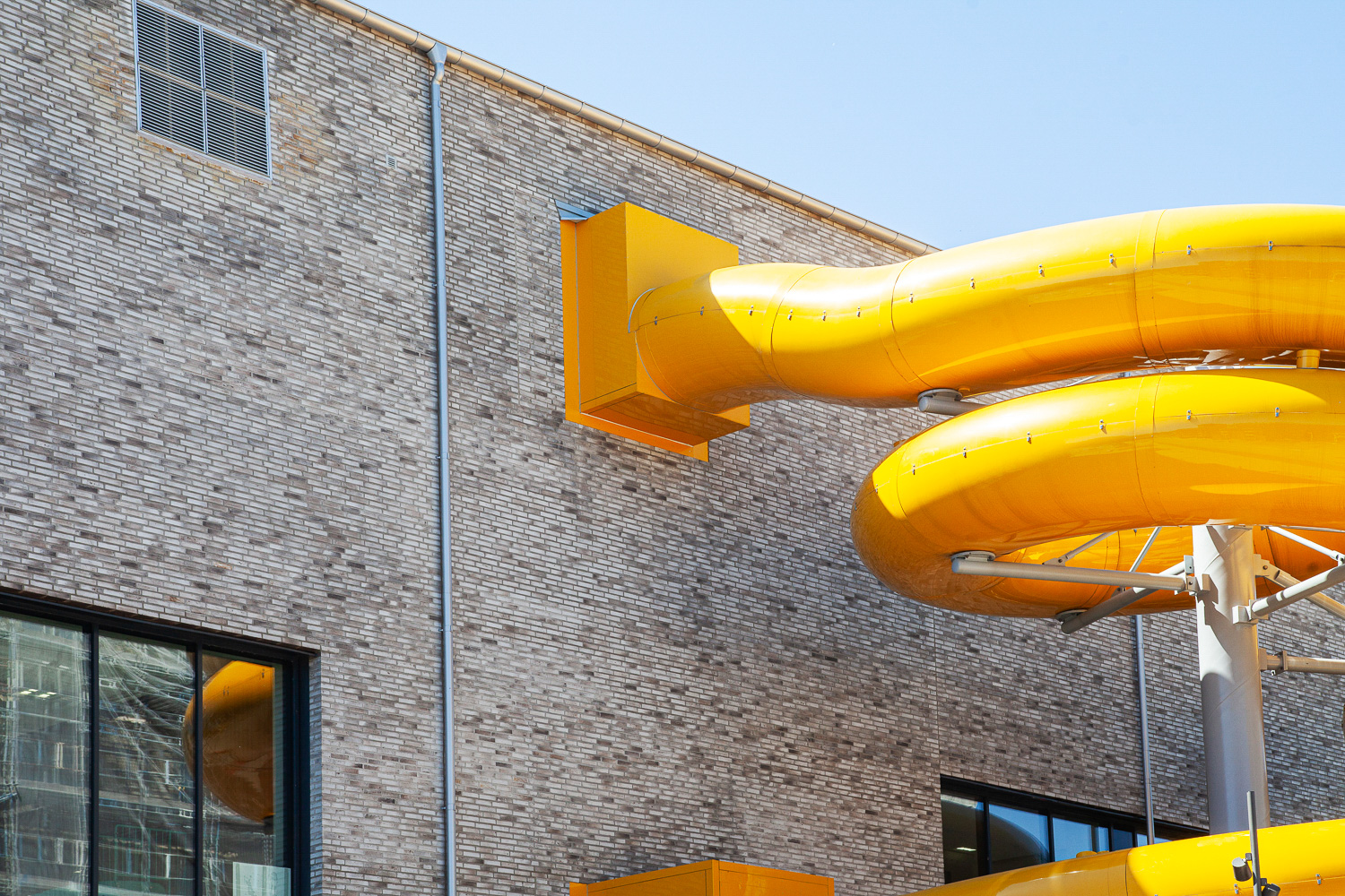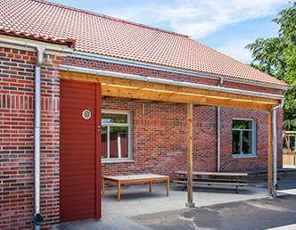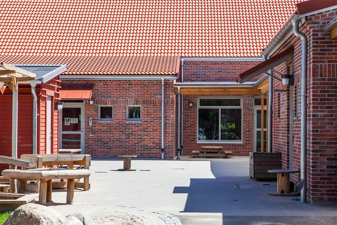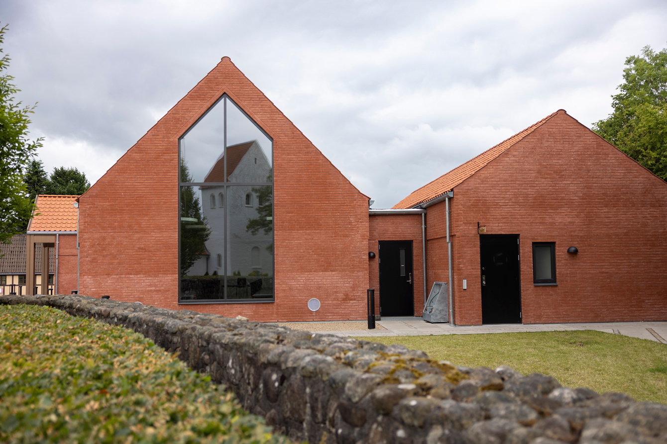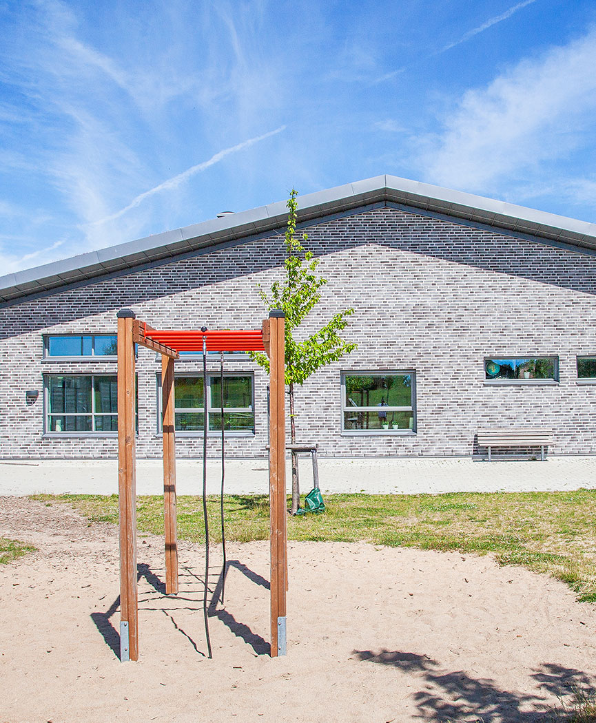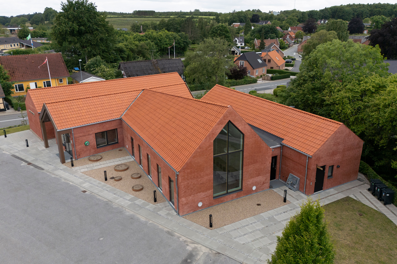 The building is adjusted to its surroundings – especially due to the yellow bricks and the traditional roof. At the same time, the two displaced wings and perforated end walls add a contemporary and rewarding touch to the historical epicentre for education.