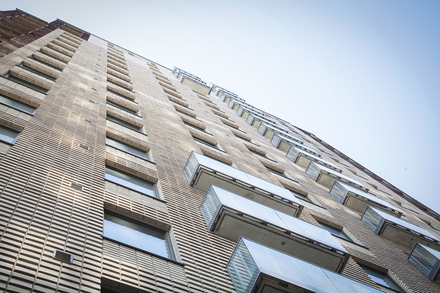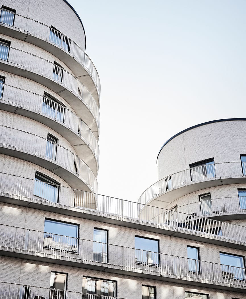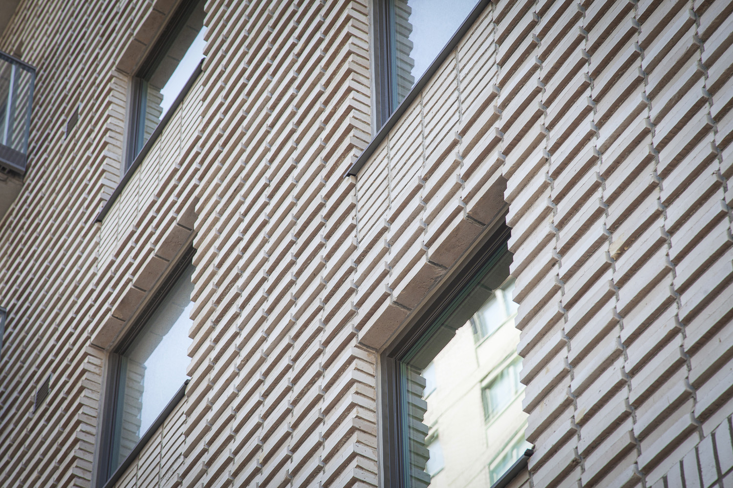 Located in the heart of Stockholm. Basaren is a masterpiece of both architecture and engineering, where two oval forms resonate through the entire design and construction of these exclusive city apartments. This building is particular unique because of its façade of transparent masonry, which is made possible by the Carlsberg-system. The devil is in the detail, and this is no exception; each brick used for the transparent part of the brickwork has two extruded holes that matches the shape of the two towered-building. This requires extra structural support in wall elements, lintels and beams – but in turn provides a quiet synergy and gives the building a light and airy feel.