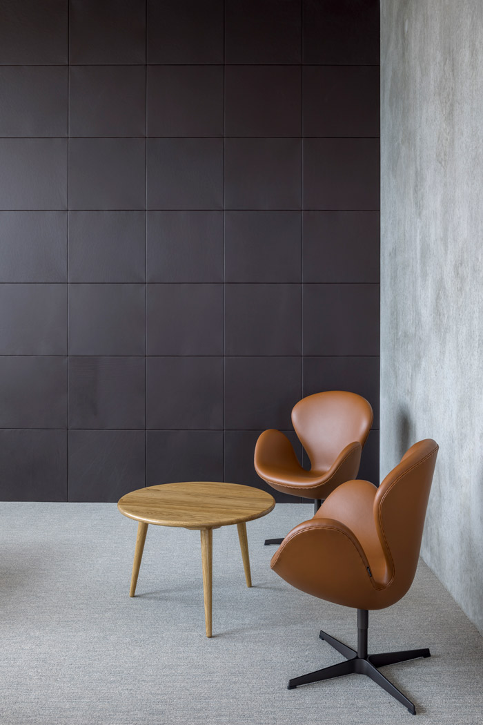 Behold Queen Eufemias Gate 42 (DEG42). An office building at Oslo’s waterfront that stands out with the very strong suspended meeting rooms in tile, which is overhang on the east façade with unique view through floor-to-ceiling windows. Along with New York-inspired fire escape that winds outside on the east, meeting rooms along the façade creates the unconventional a unique sculptural and dramatic look.
