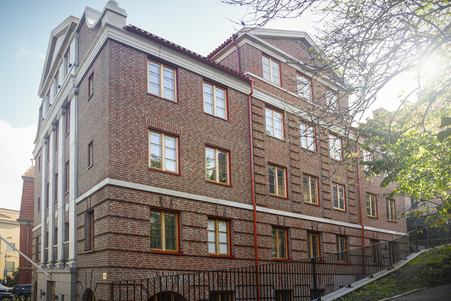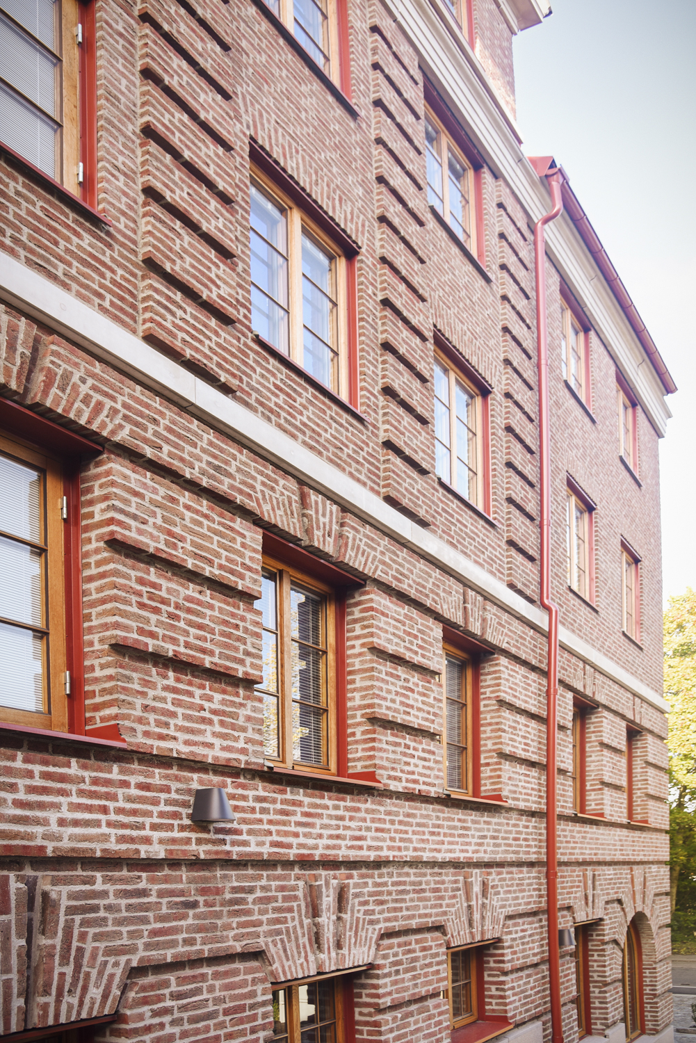 Traditional and classic red and brown colour bricks for the prestigious and traditional school in the heart of Stockholm. When using a soft-molded and so rustic brick as the Rustica-series in this scale, something beautiful occurs.