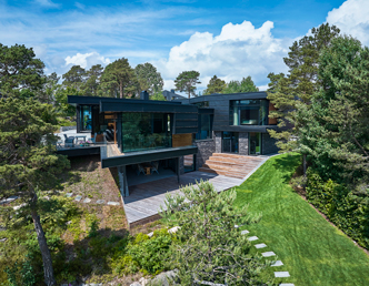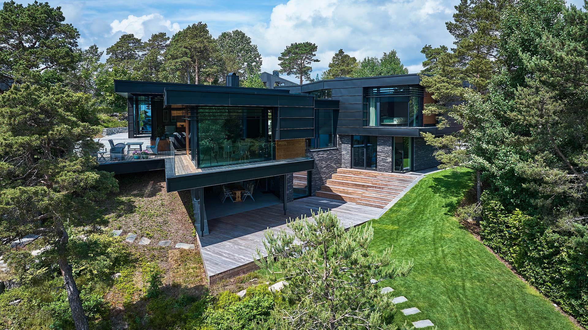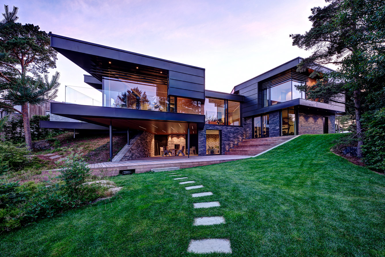 This Swedish home with challenging shapes and straight lines is drawn towards the coast. So much it literally looks like the house is leaning towards the ocean.